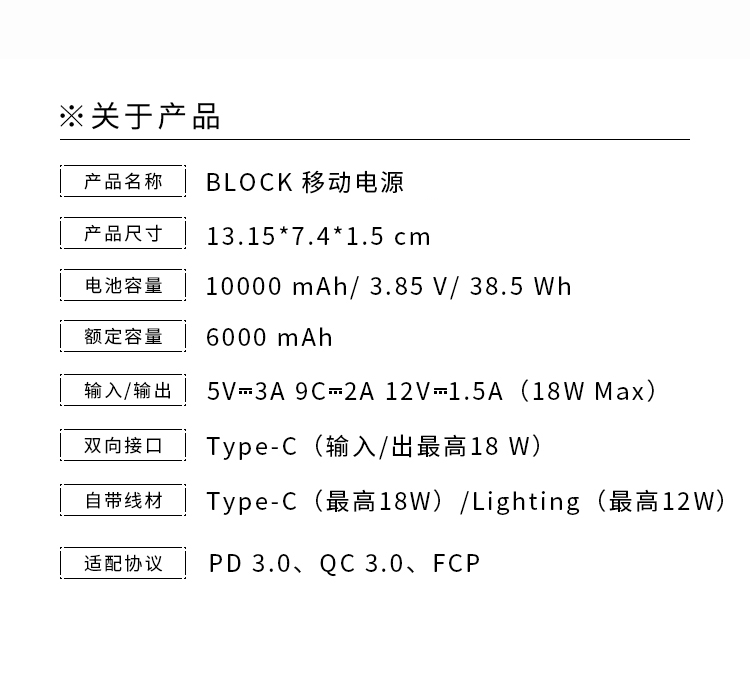 TEGIC/特极客 BLOCK透视移动电源 快充自带线充电宝 苹果Lightning / Type-C