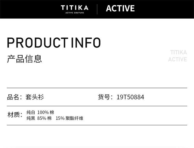 - 2009年,Titika Active Couture诞生于北美时尚之都,重新定义运动服饰,让运动时尚,前卫、性感,更宣扬一种无畏自由的生活态度。TITIKA缇缇卡不断求变,为品牌添加多种元素