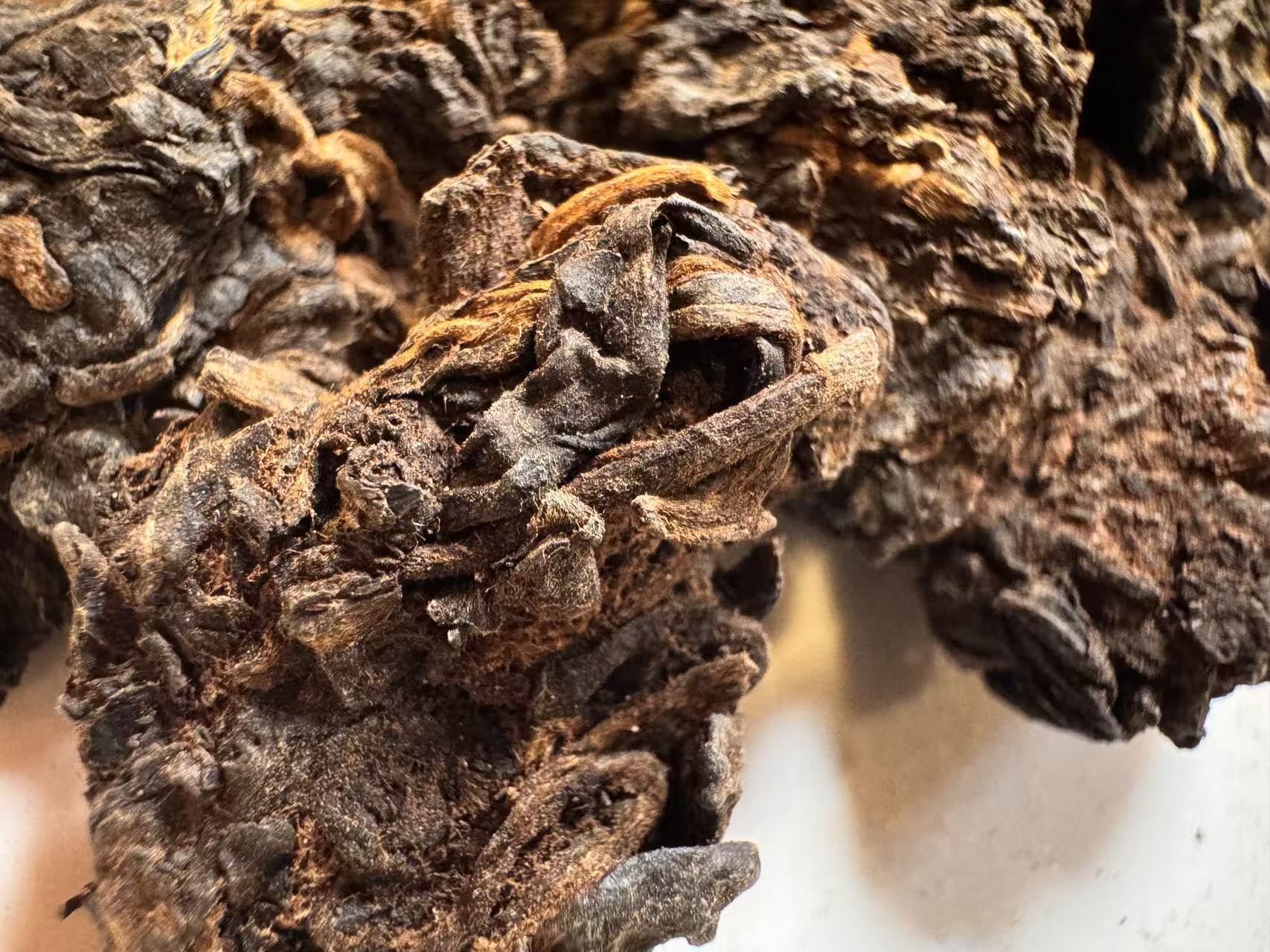 这款茶没有惊艳的戏剧感,但它稳当、纯净、甜润始终如一。十年光阴,它已褪去青涩,留下的是山野生态的本味与时间赋予的温和。若您喜欢稠滑甜醇的熟茶,这款老茶头,应是不会失望的选择。