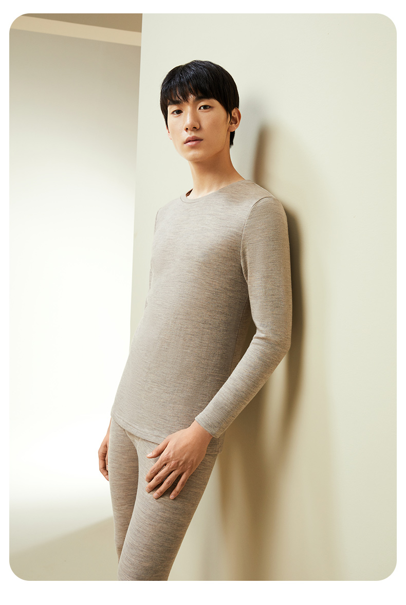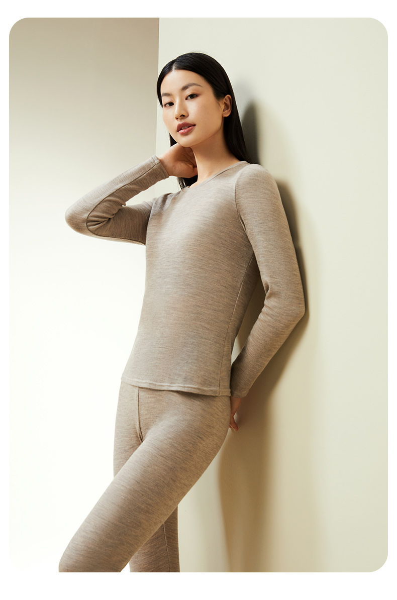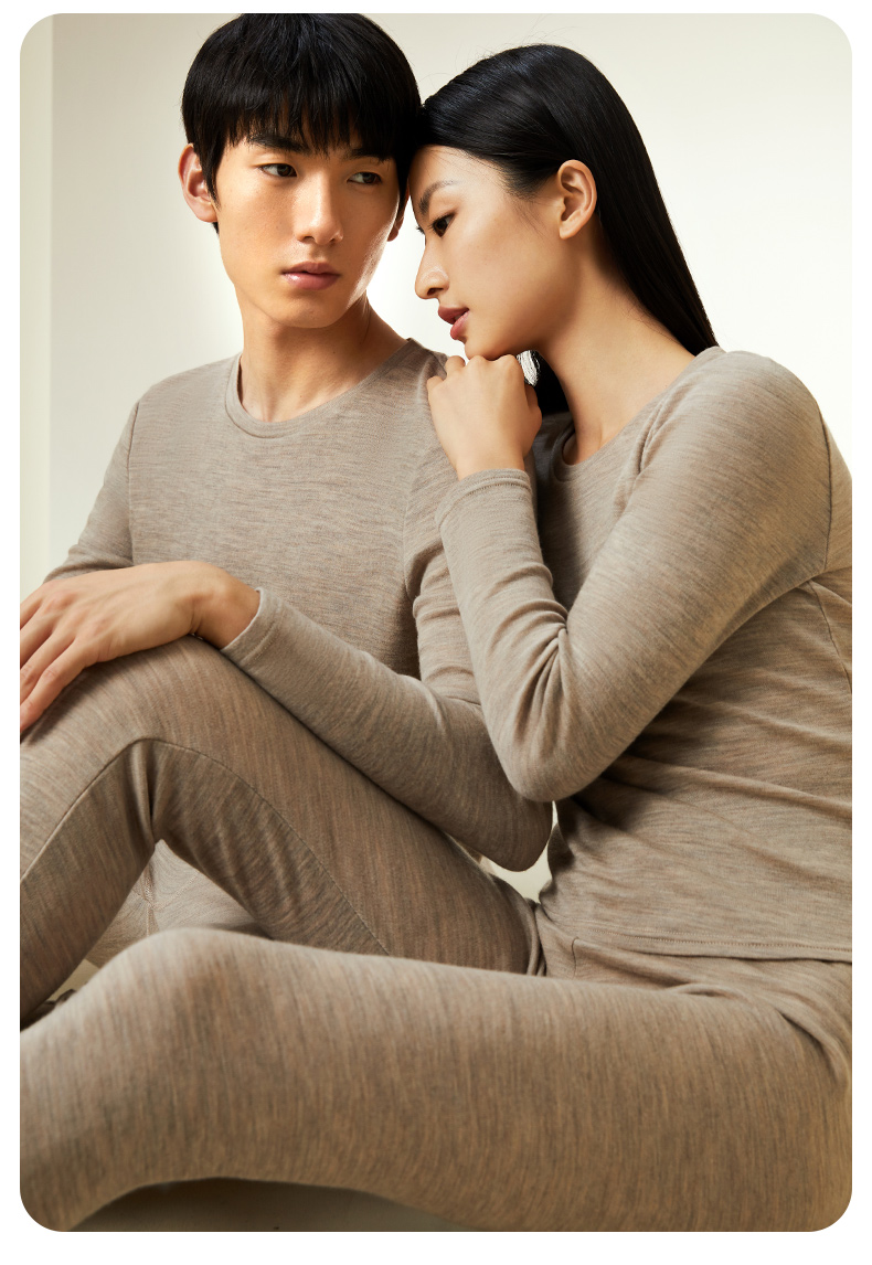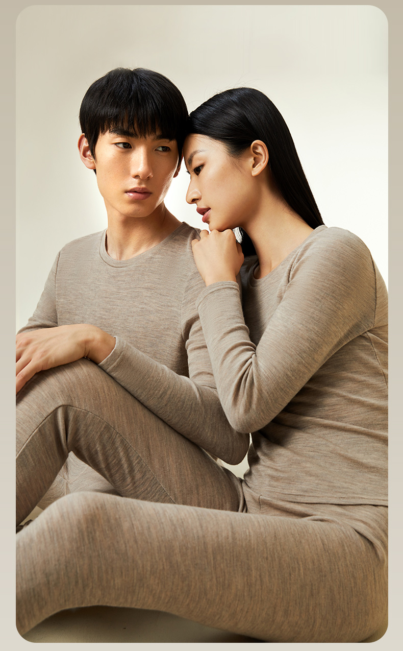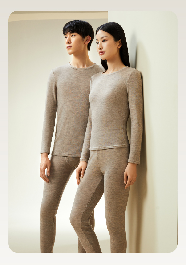【暖暖保暖衣】100%绵羊毛简约圆领高弹保暖秋冬内衣套男女金三塔 NYFDD103/NYMDD104