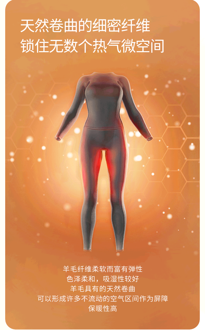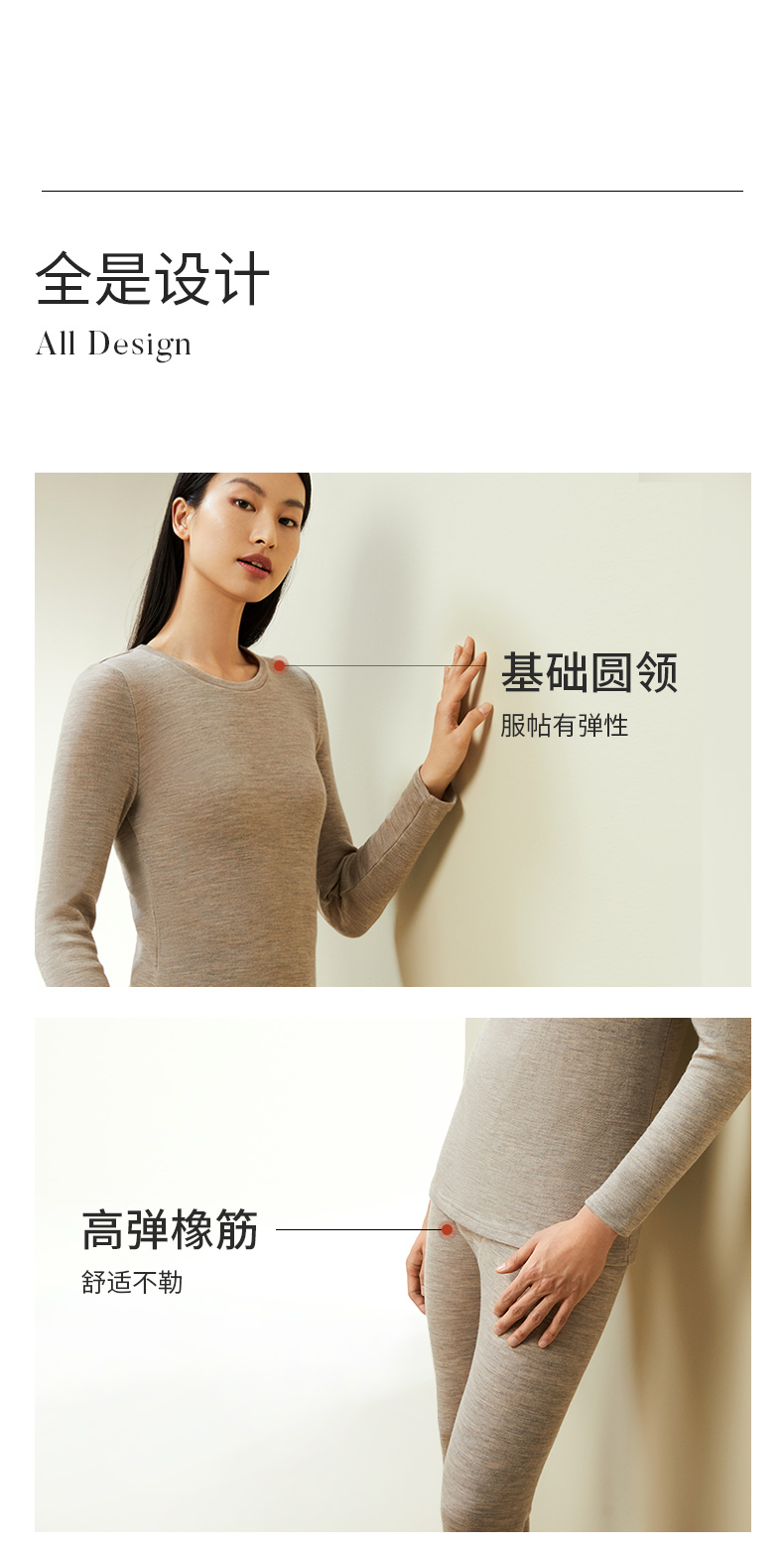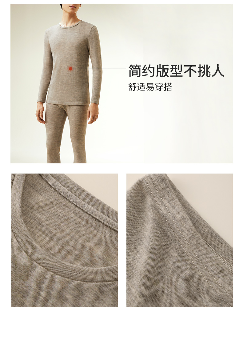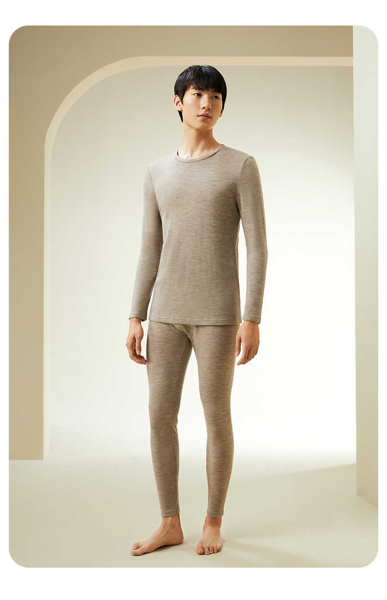 【暖暖保暖衣】100%绵羊毛简约圆领高弹保暖秋冬内衣套男女金三塔 NYFDD103/NYMDD104