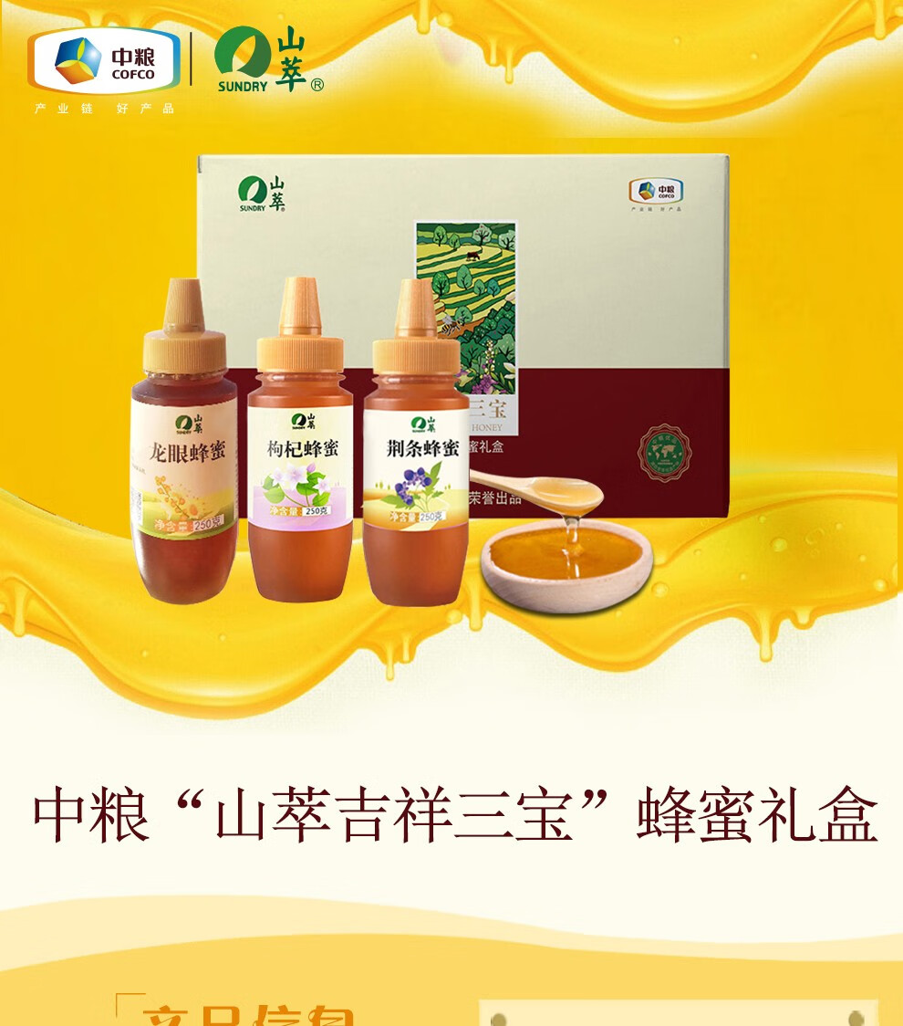 TY中粮“山萃吉祥三宝”蜂蜜礼盒 750g/盒【鲜享1.0】