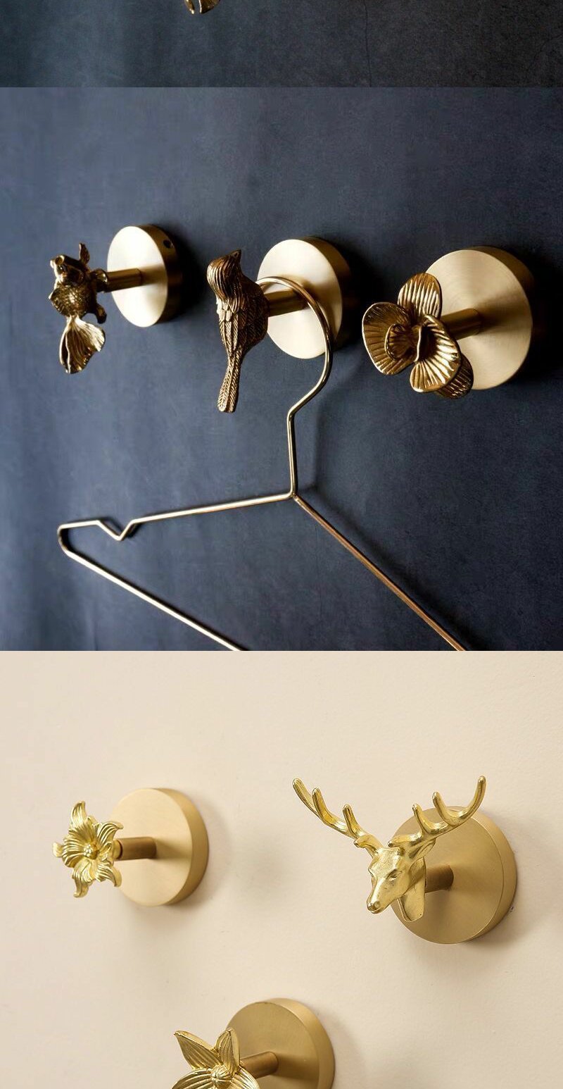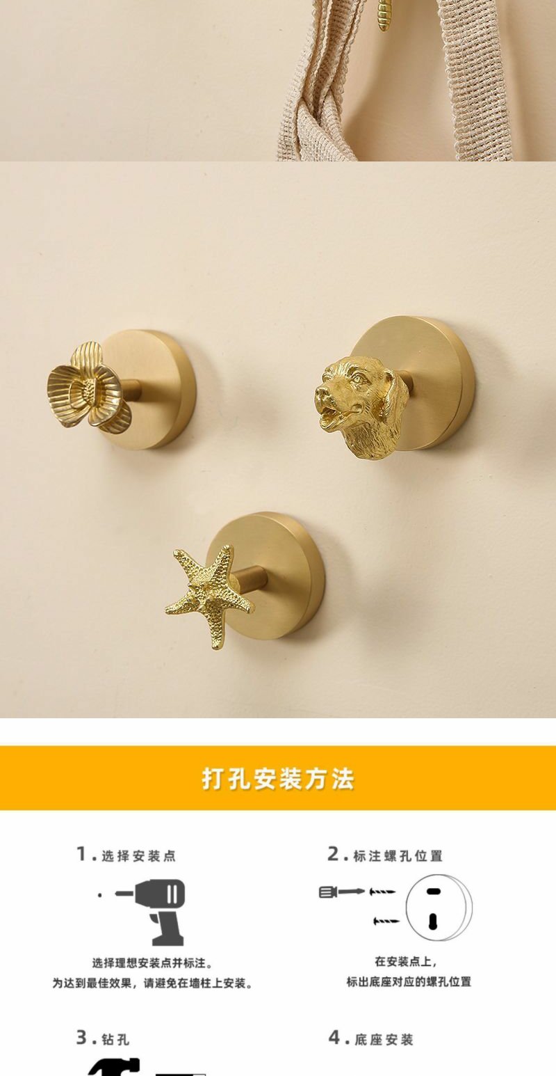 欧式轻奢复古黄铜免打孔免钉挂钩挂衣钩玄关门后创意壁挂墙饰挂钩