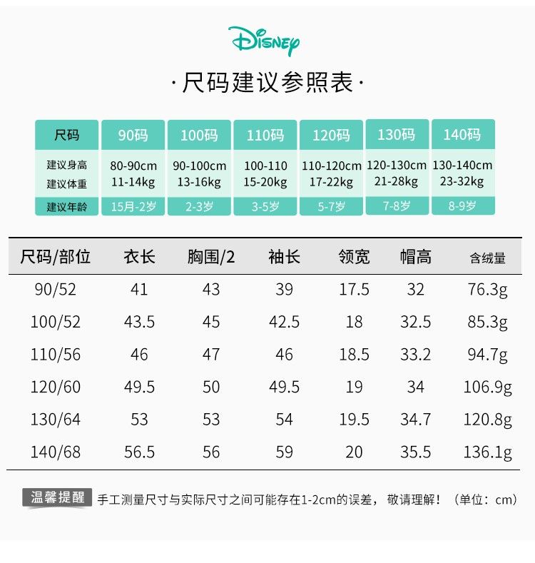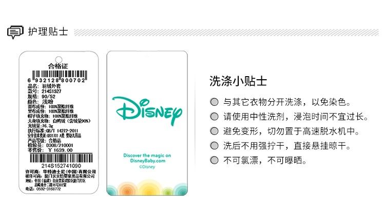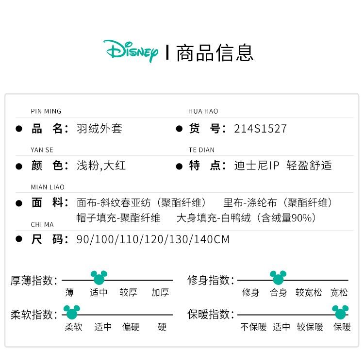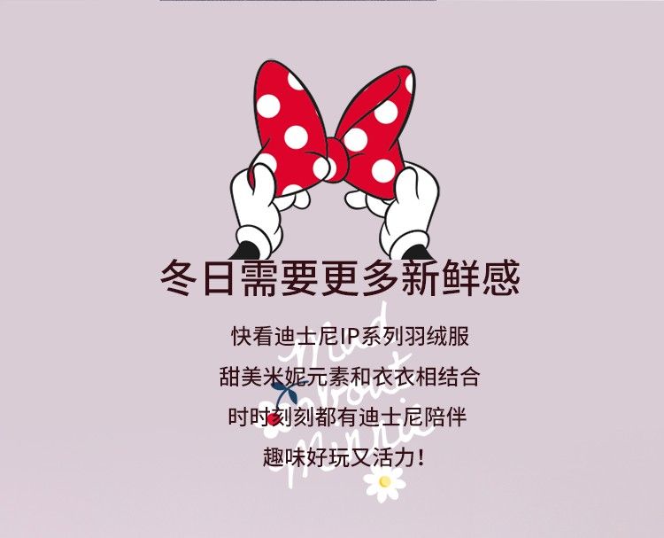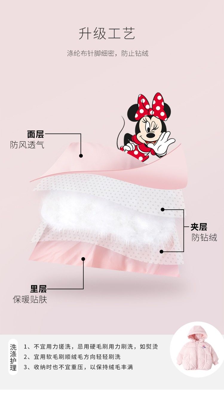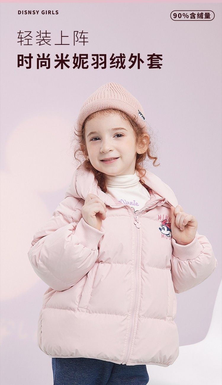 迪士尼米妮女童宝宝冬装儿童轻薄羽绒服小童冬装白鸭绒外套214S1527