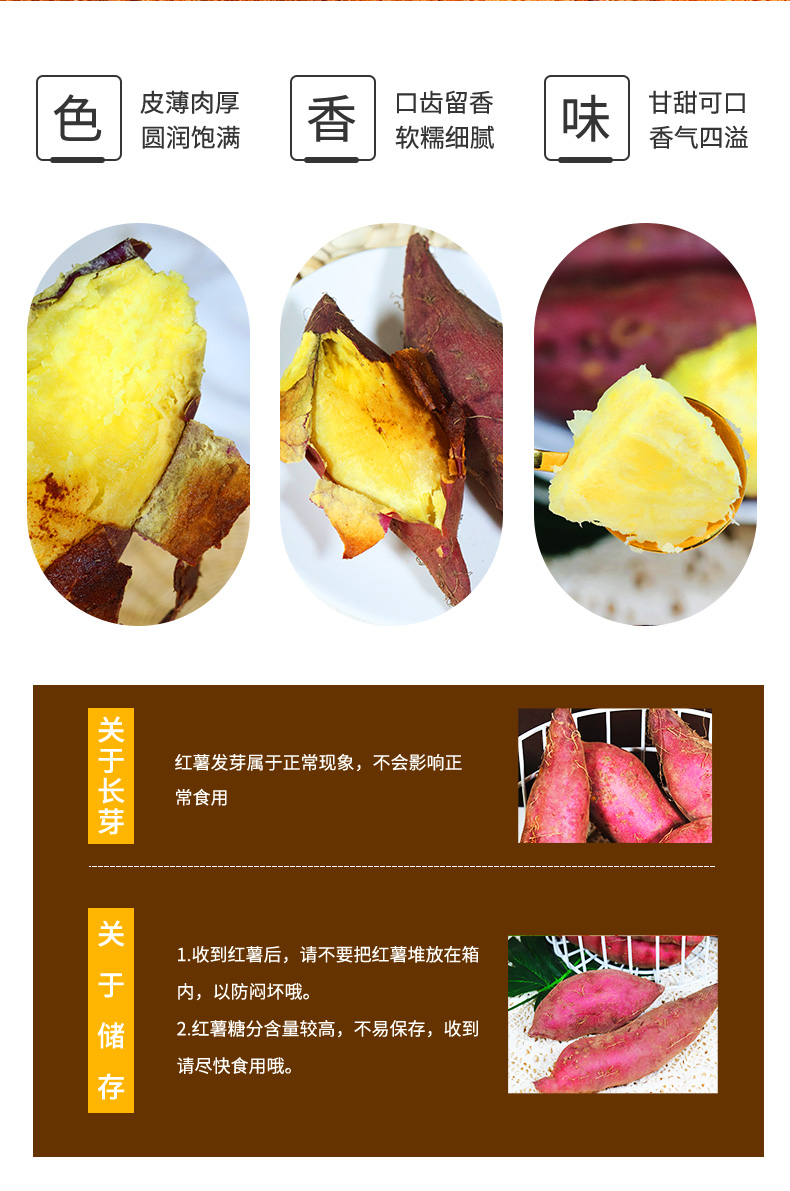 2.地瓜属于根茎植物,表皮比较薄,在采挖运输途中难免出现轻微剐蹭,如遇个别小磕碰折断,不影响食用的哦!介意者慎拍