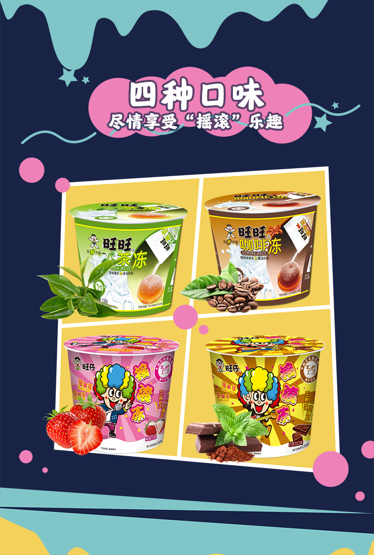 旺旺摇滚冻132g草莓味果冻旺仔儿童零食摇摇乐摇一摇果冻