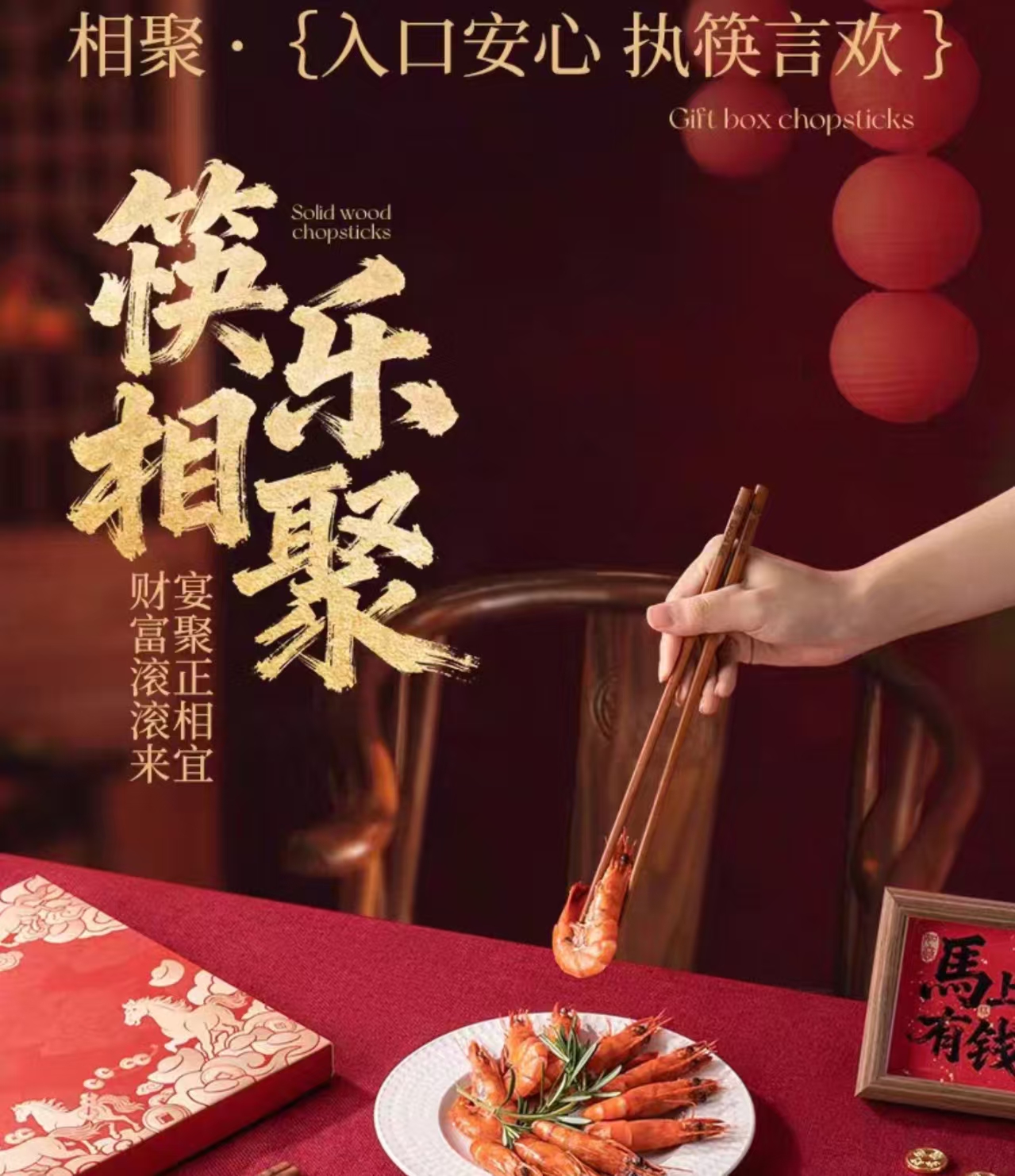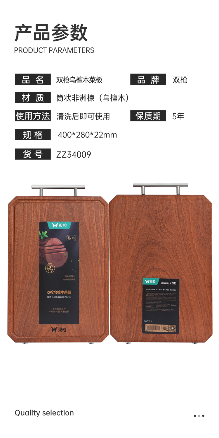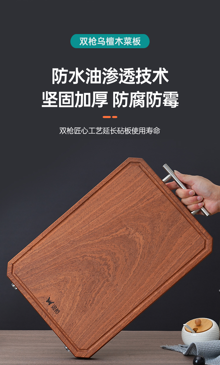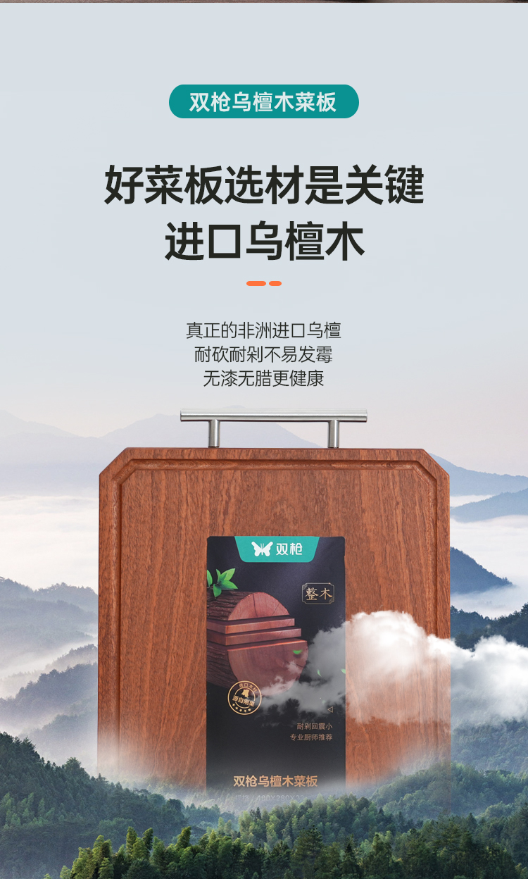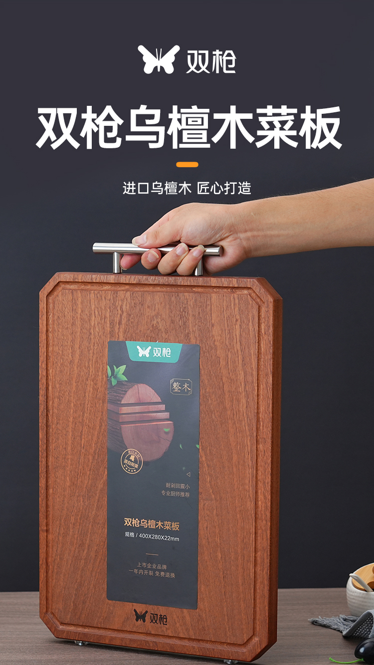 “过年换新 筷子1双低至1.49元” 双枪 黑金檀木仙鹤衔木报福筷/进口乌檀木整木大号砧板/菜板