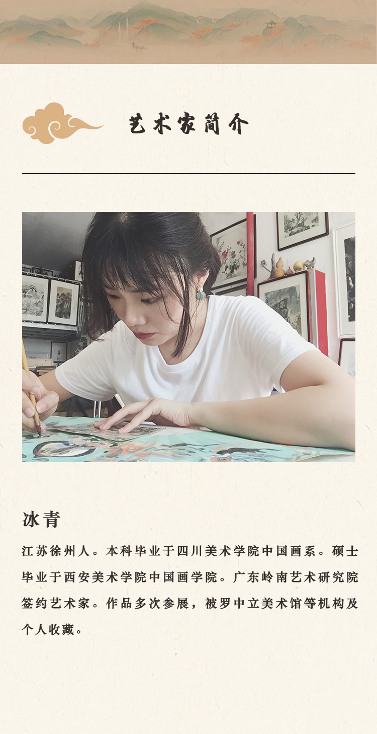 【预售一周发货】为你读诗×画家 冰青 国画复制作品(含画家签名,含框)