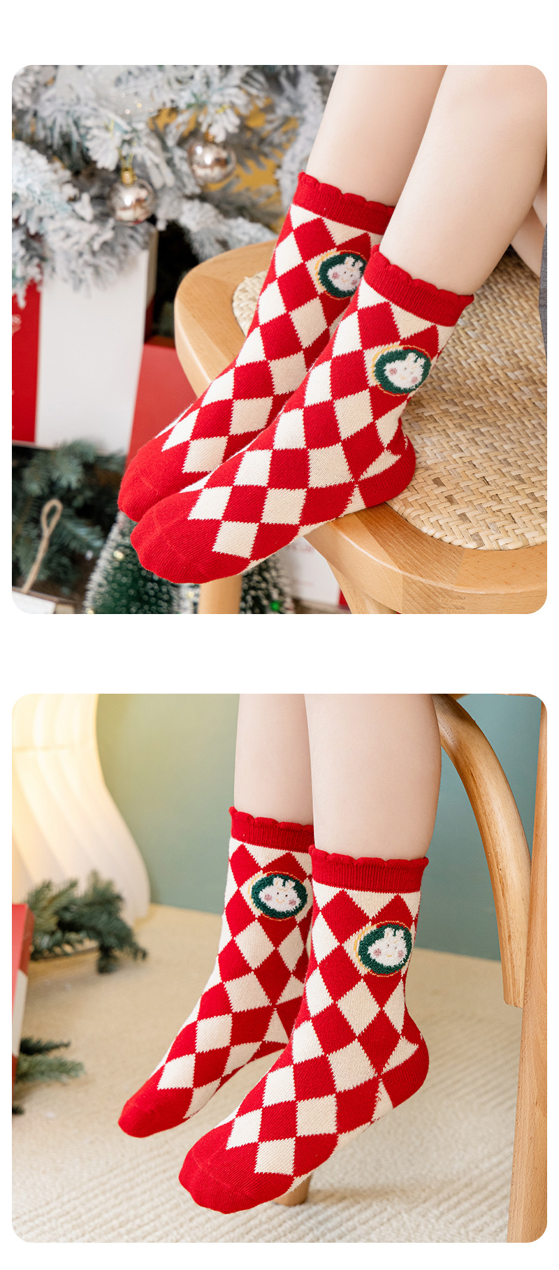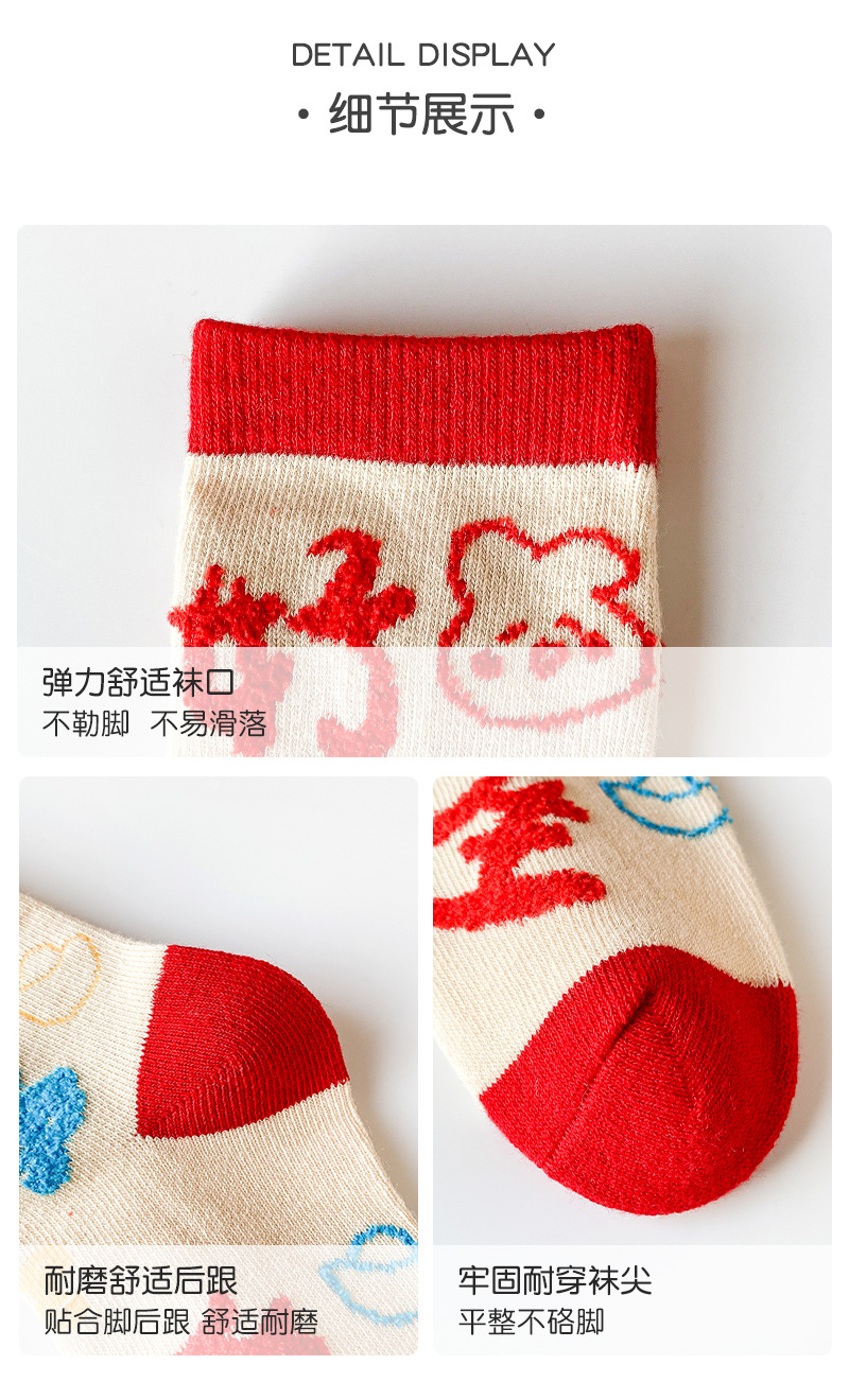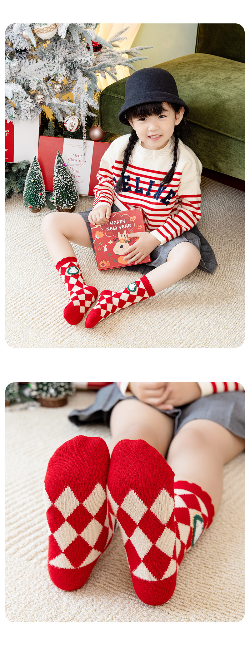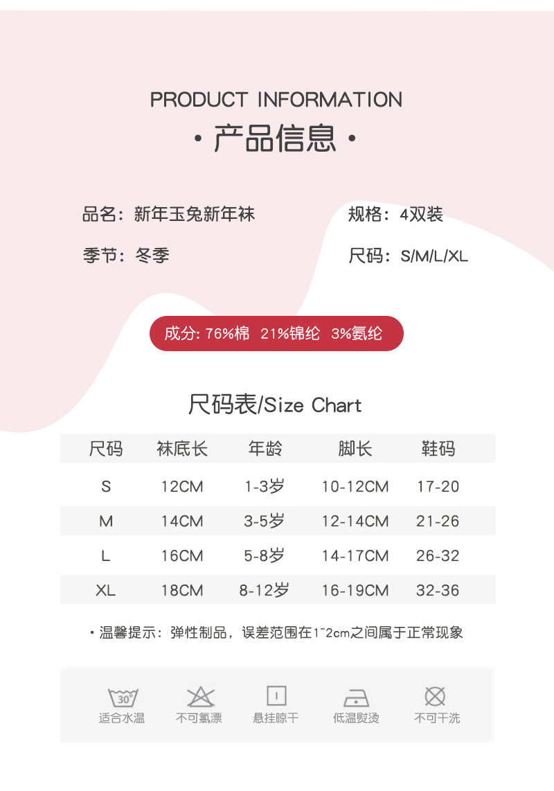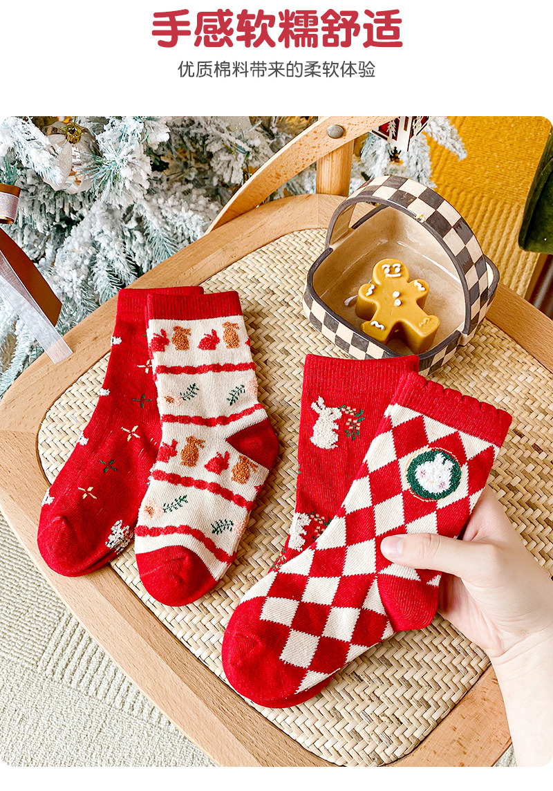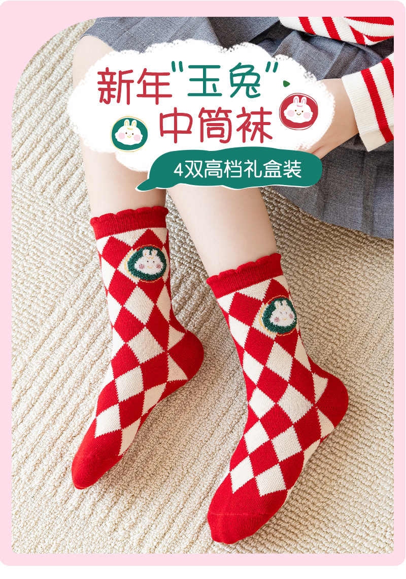 【4双礼盒装 玉兔新年袜】儿童袜子秋冬新款卡通大红喜庆新春袜韩版儿童圣诞袜