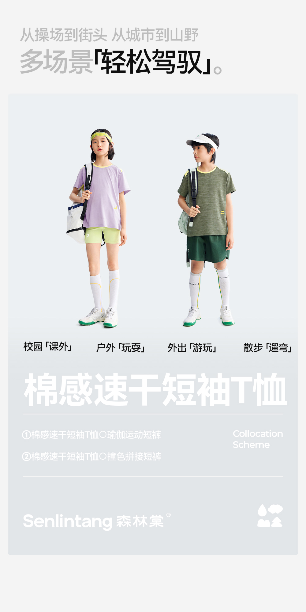 【速干运动短袖】森林棠26夏款棉感透气防晒儿童撞色拼接圆领T恤40162548