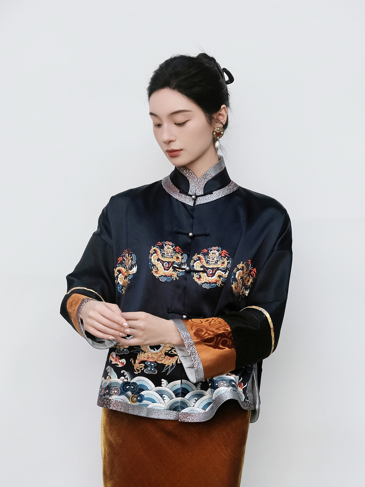 盛唐牡丹大师系列-王小潇 | 重缎真丝双挽袖对襟外套