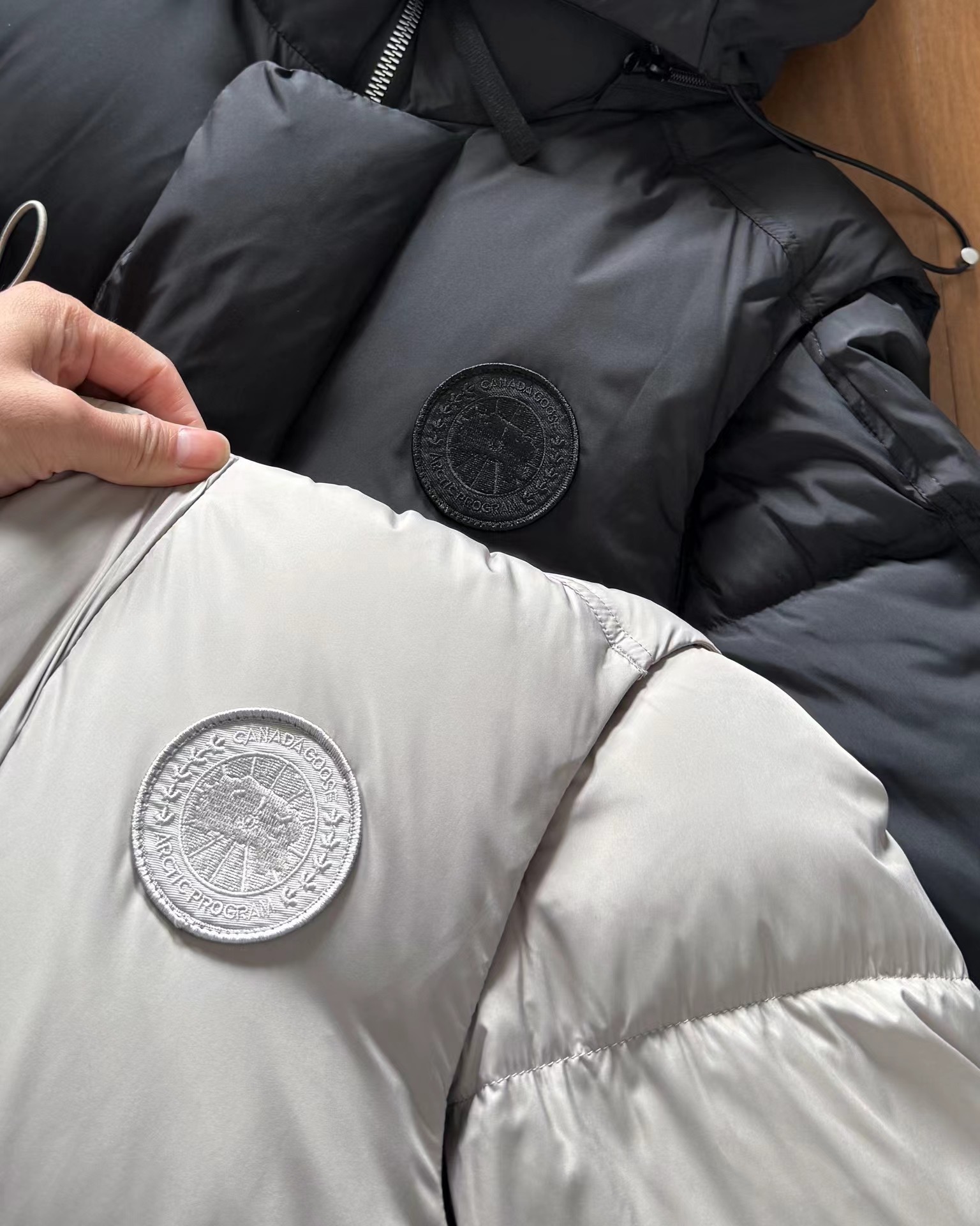 张凌赫同款新款亮色连帽羽绒服 帽、袖子可脱卸!原版定织轻量化方格科技三防面料,防风防雨防摩擦,采用400D胆布正儿八经国标90白鸭绒,冲进去衣服内部,更加蓬松更锁温整件衣服可收纳折叠!!左胸上的刺绣徽标加拿大的地形图,栩栩如生。采用白灵达进口刺绣机使用高密度色纱刺绣而成。尤其是袖子可以拆卸,既可以当羽绒服穿也可以当马甲穿,气候不稳定的地区尤为适合。洗水标全部隐藏在衣服内部,细节图中可以看得见,所见即所得!!