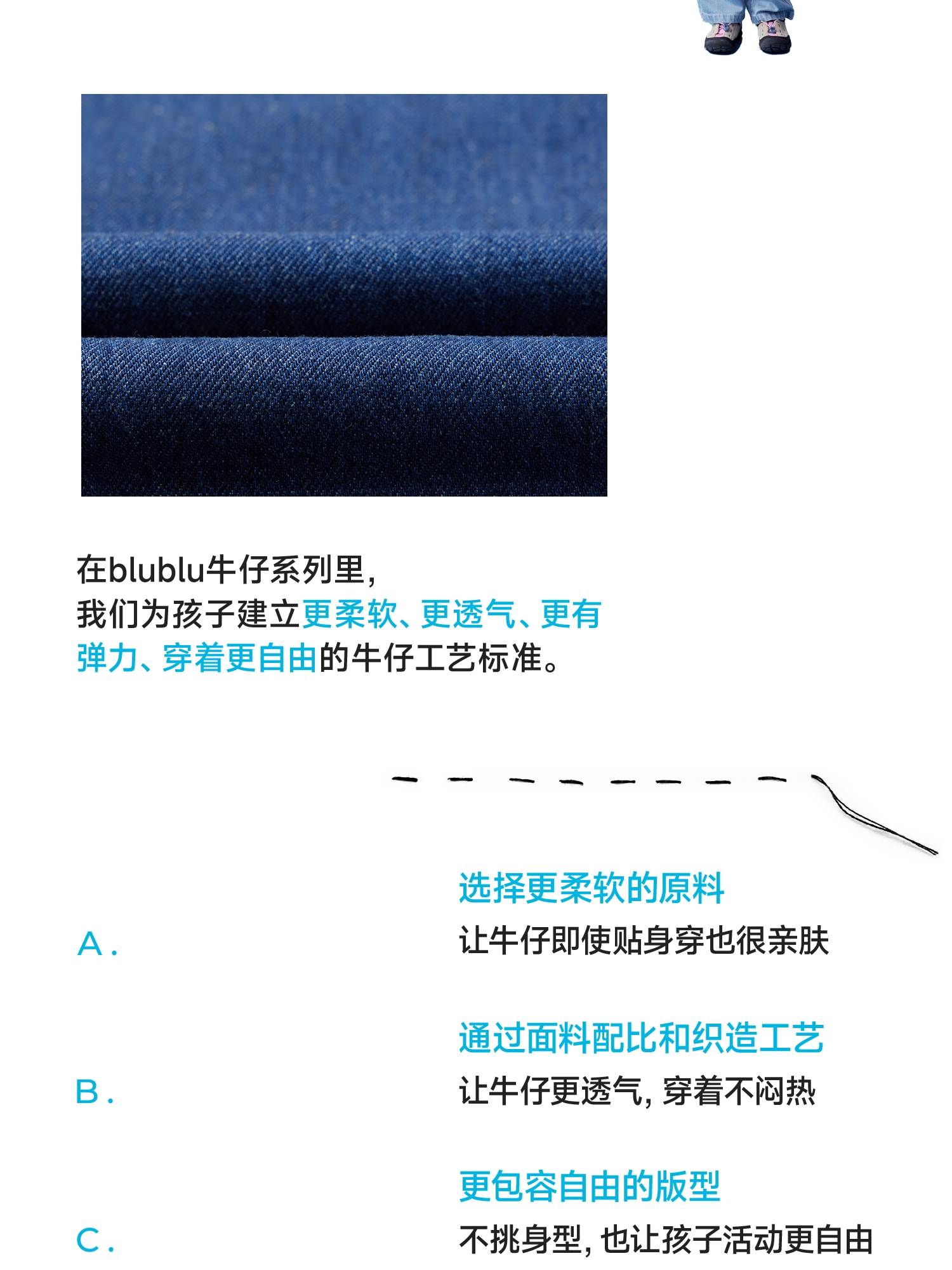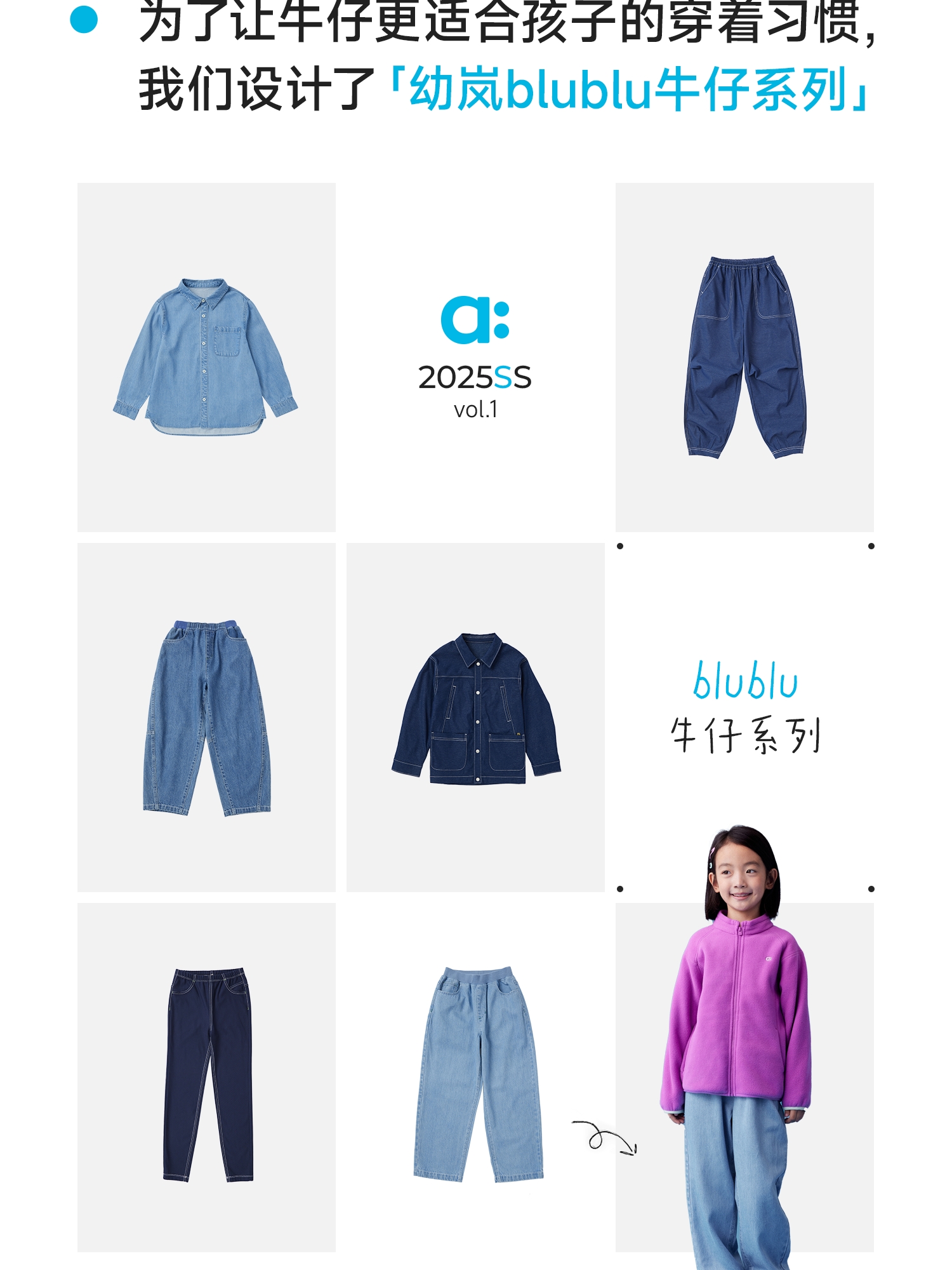 【春Vol.1】allblu幼岚儿童牛仔裤子男童女童25春季新款桉树牛仔裤凉感挺括ZY