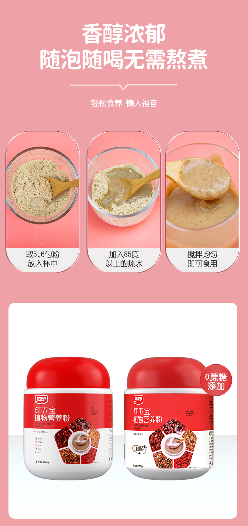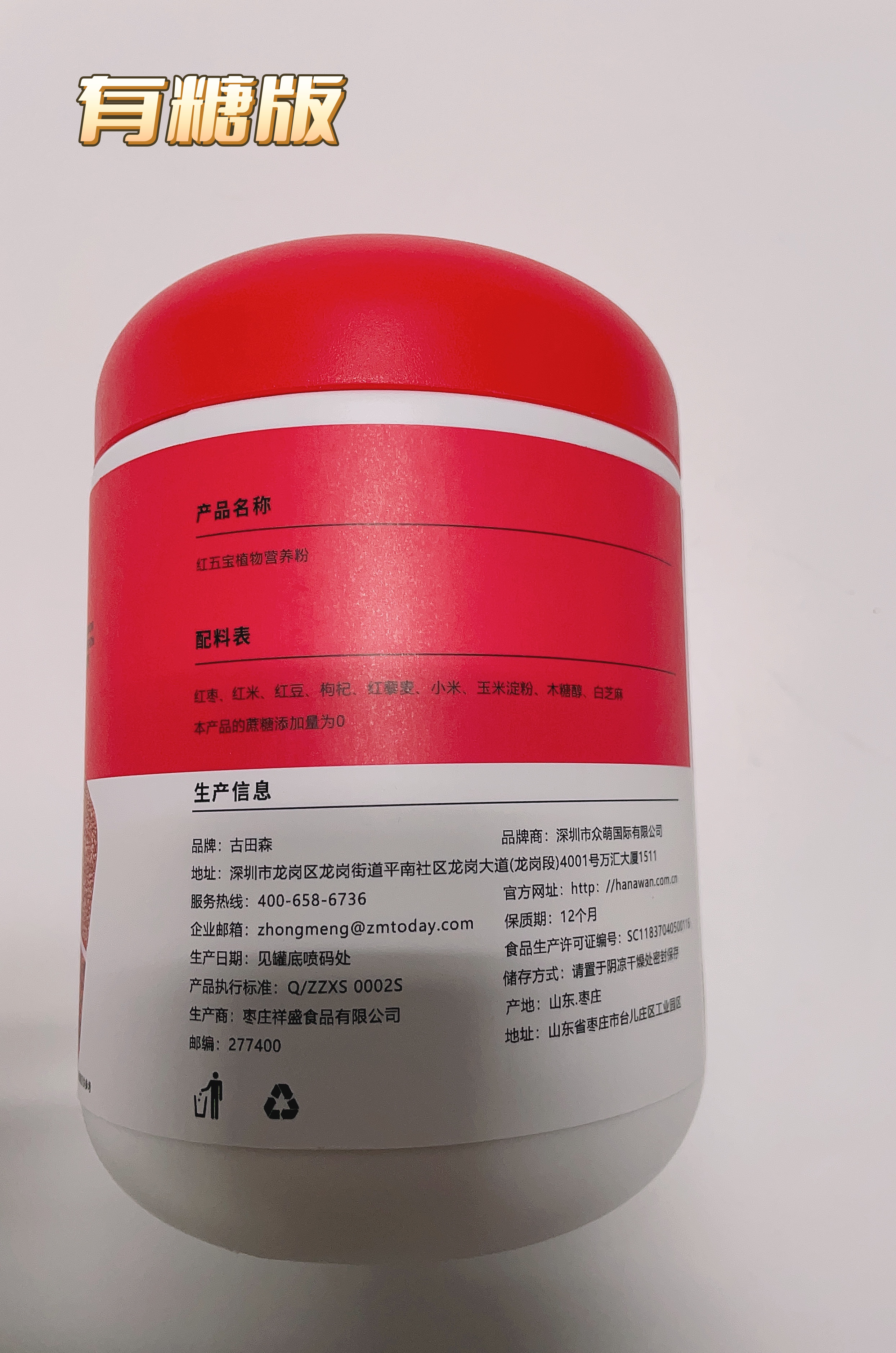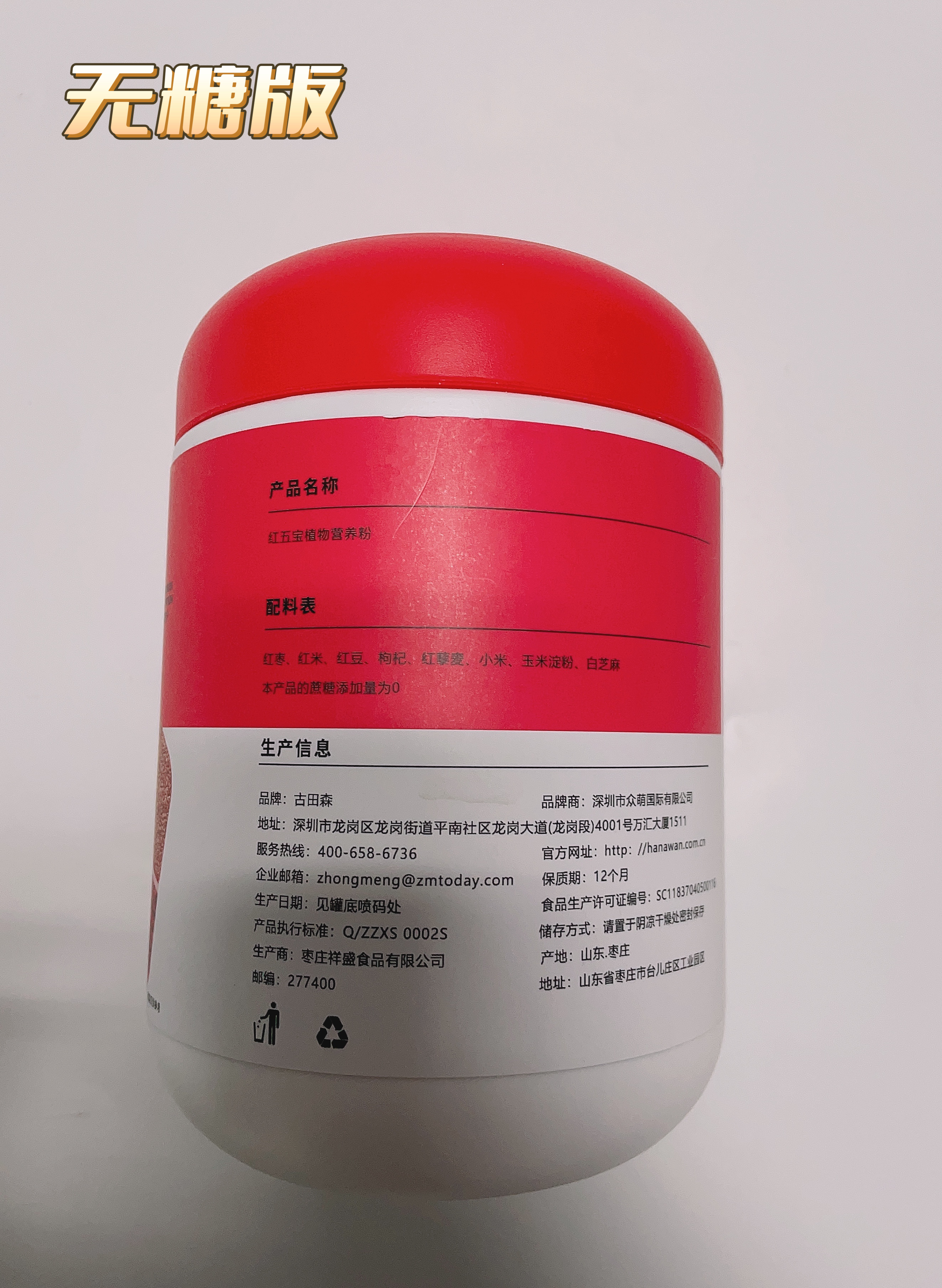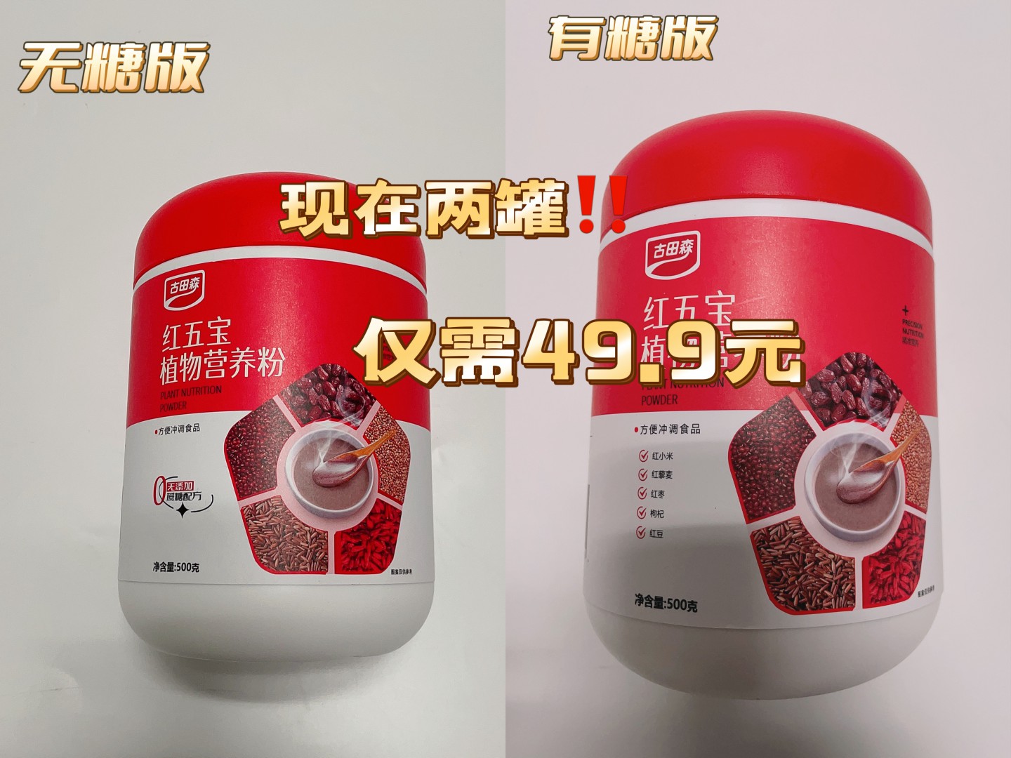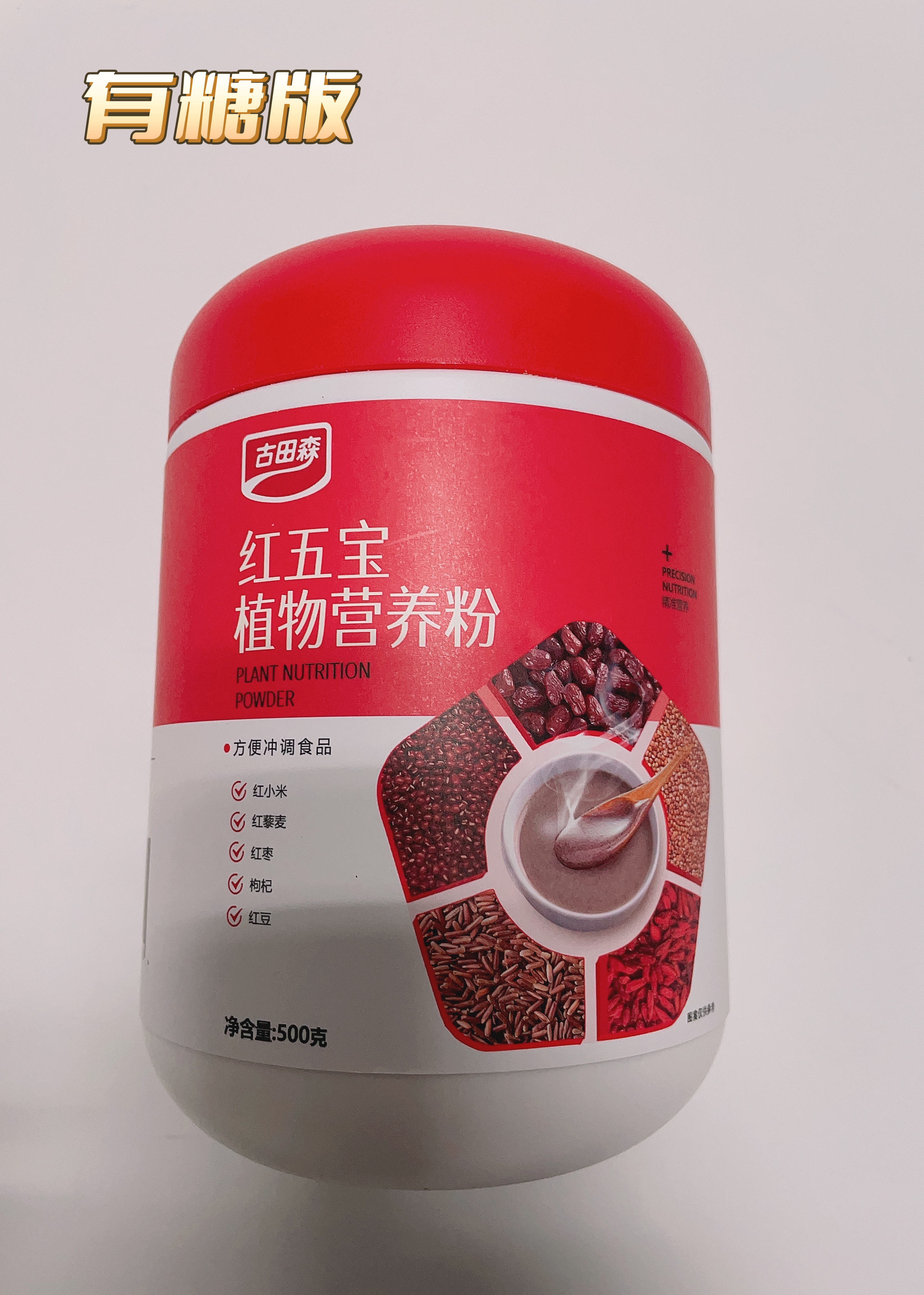 【两个版本:甜口选有糖;控糖选无糖】古田森红五宝植物营养粉500克/罐*2罐 分有糖/无糖款 0添加蔗糖 五种红色食材 配料干净 放心喝