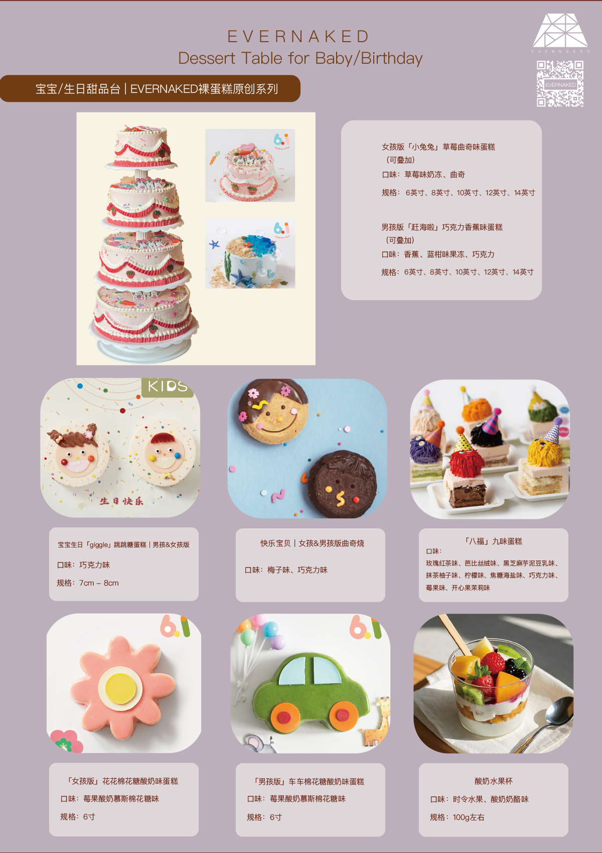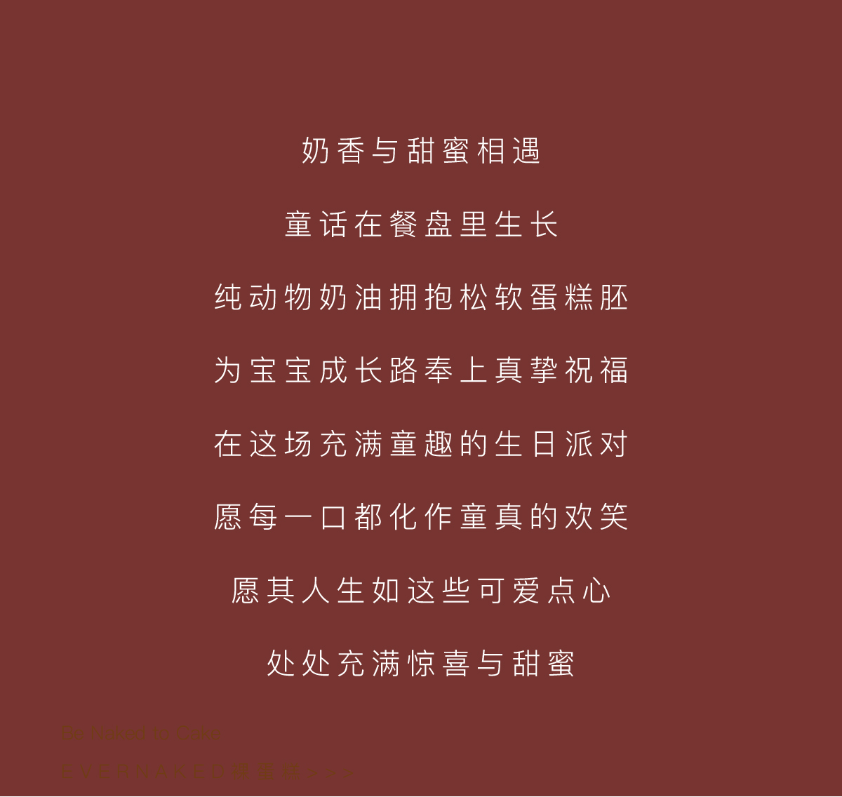 - 裸蛋糕,专注于甜点无添加的健康理念。生日蛋糕、婚礼甜品桌、茶歇宴会及私人定制。裸蛋糕的初念,源于对身边人的爱;简单,不失真诚;不乏奢华。