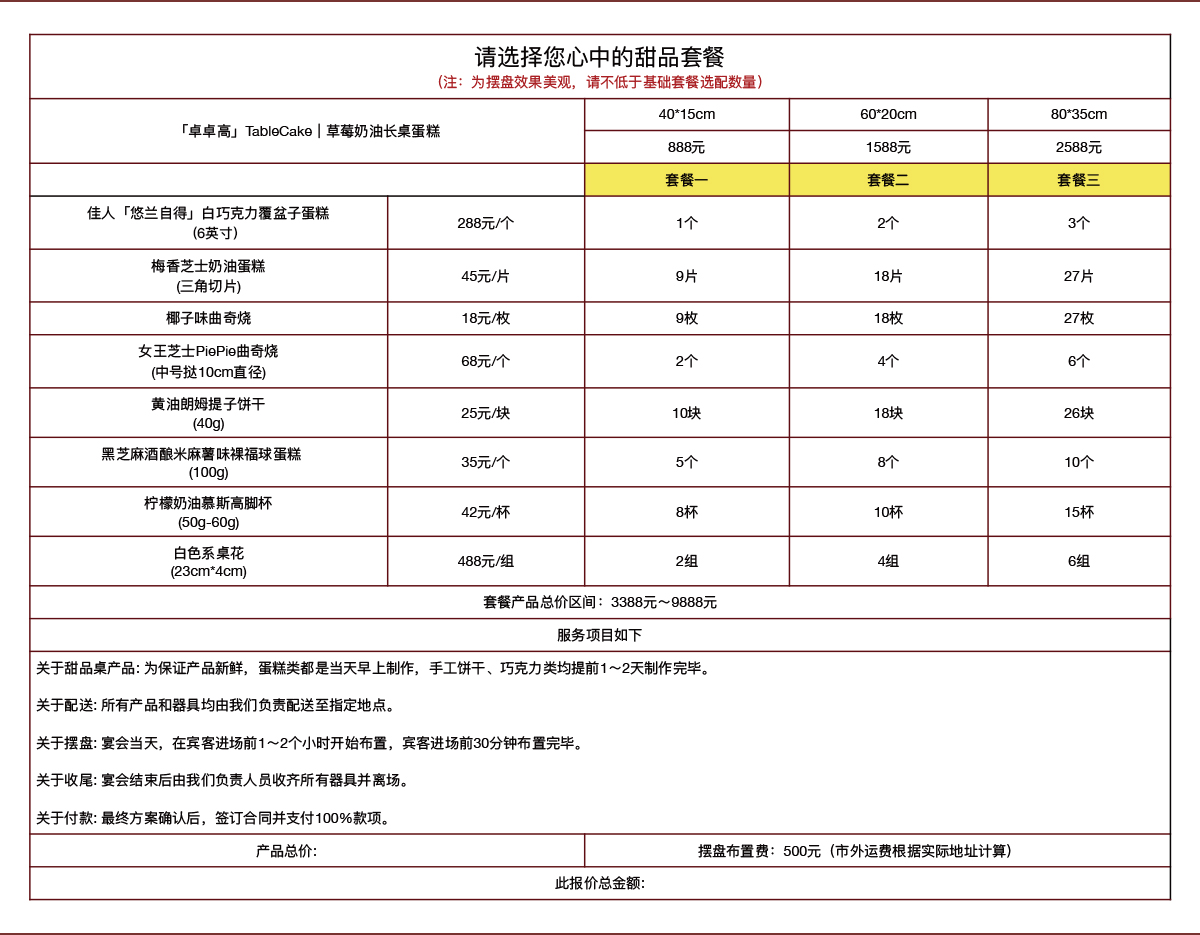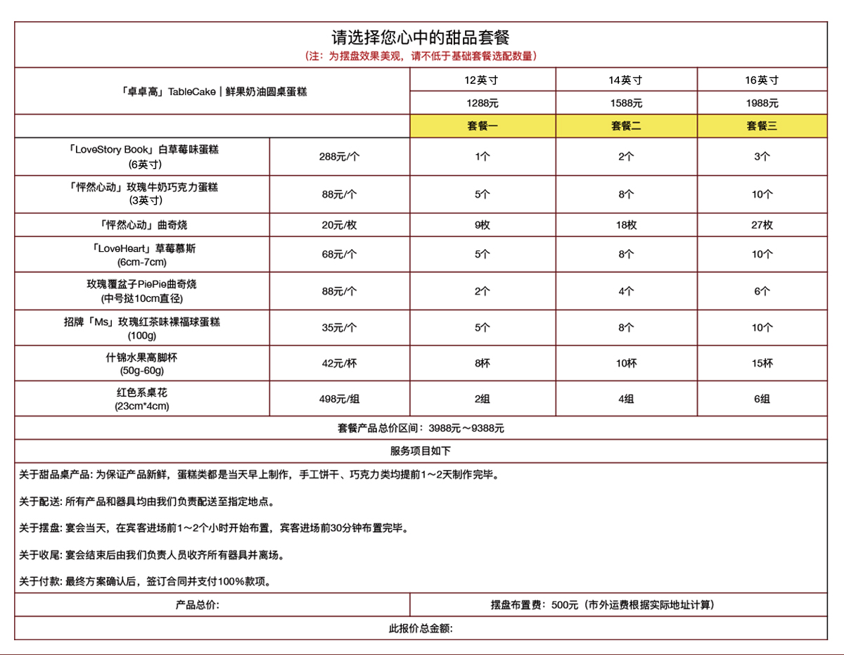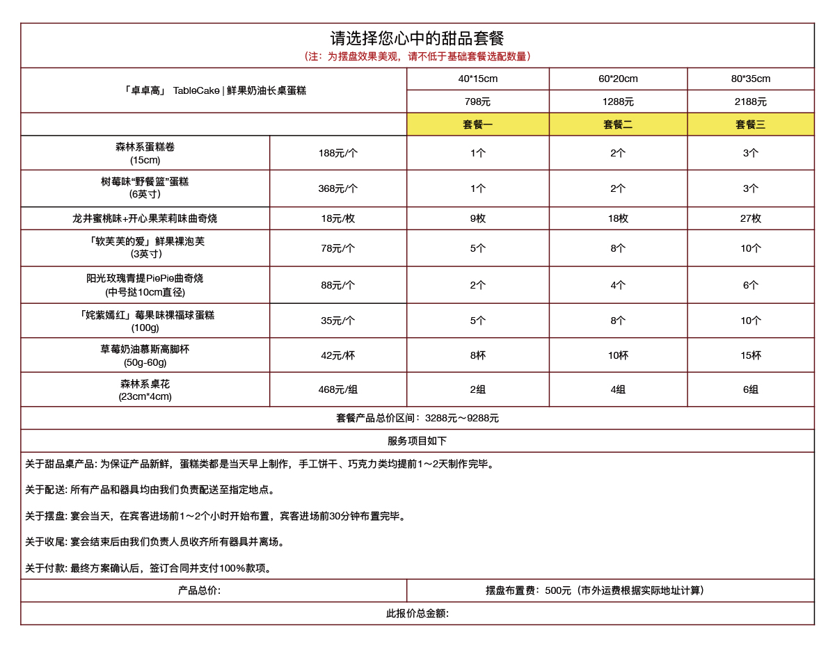 95折|婚礼甜品台|水果蛋糕+手工面包系列