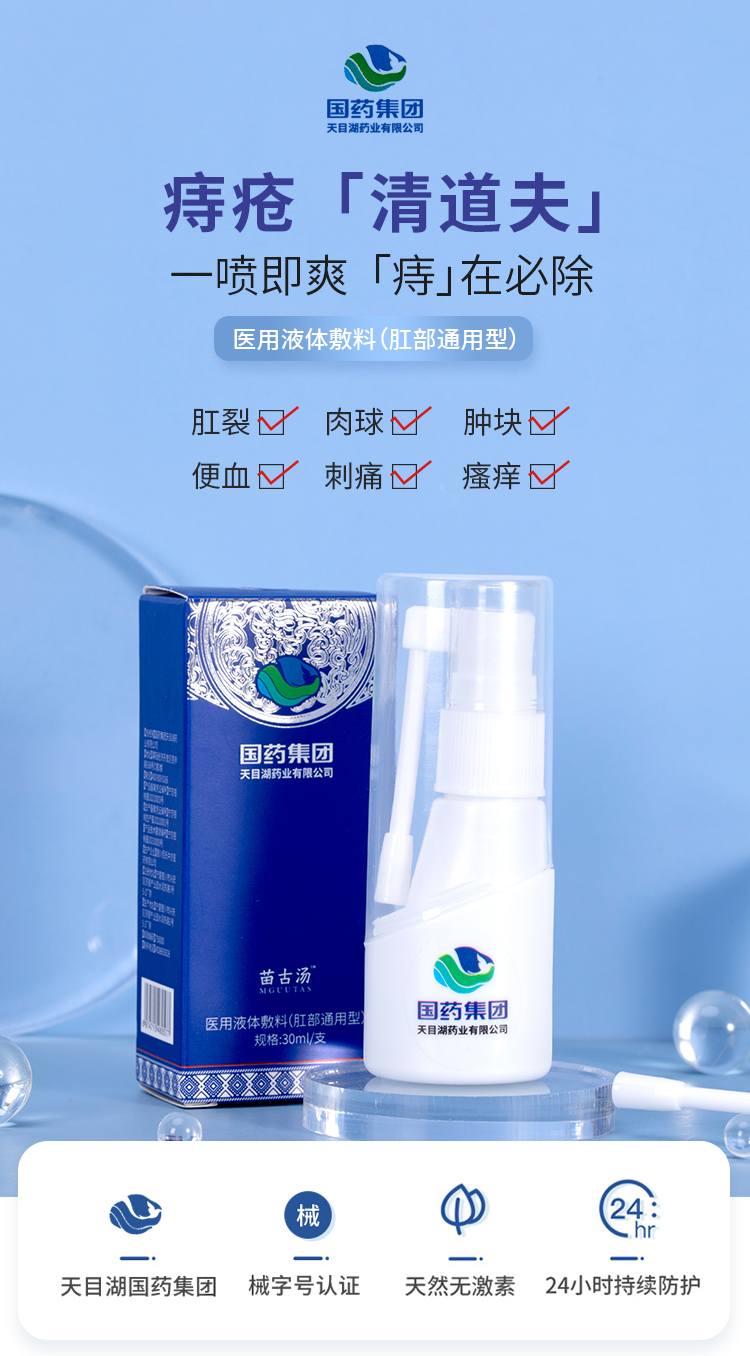 【痔疮清道夫】国药集团天目湖苗古汤医用液体敷料痔疮喷雾止痒消肿内痔外痔混合痔喷剂