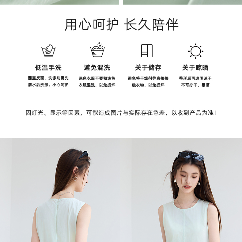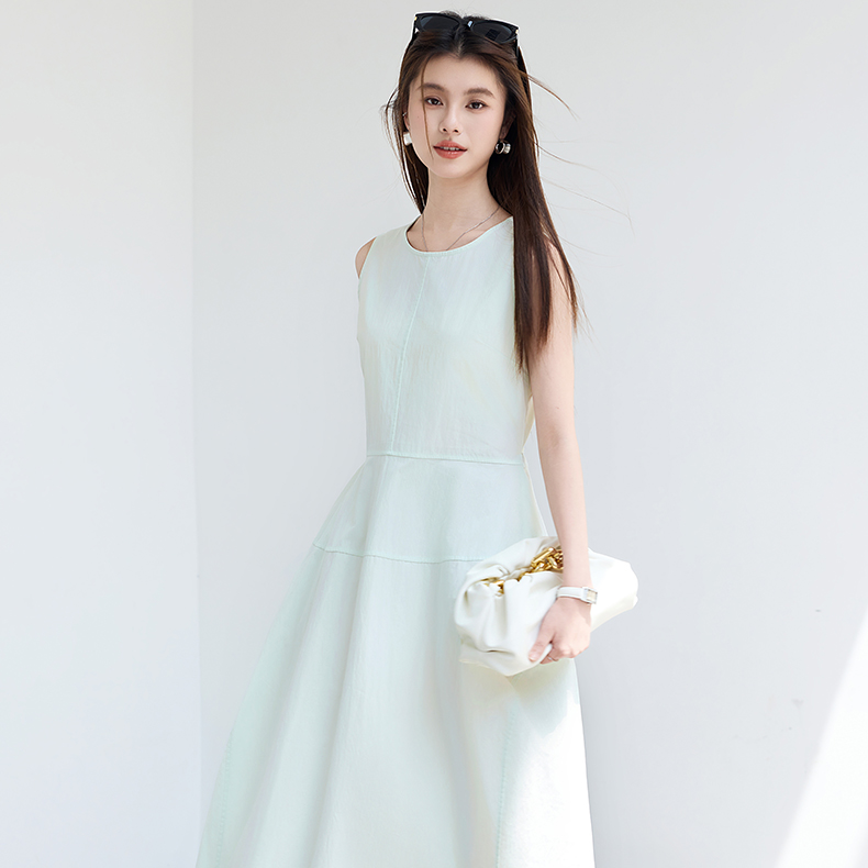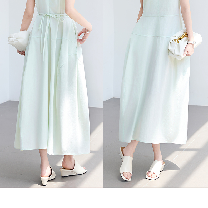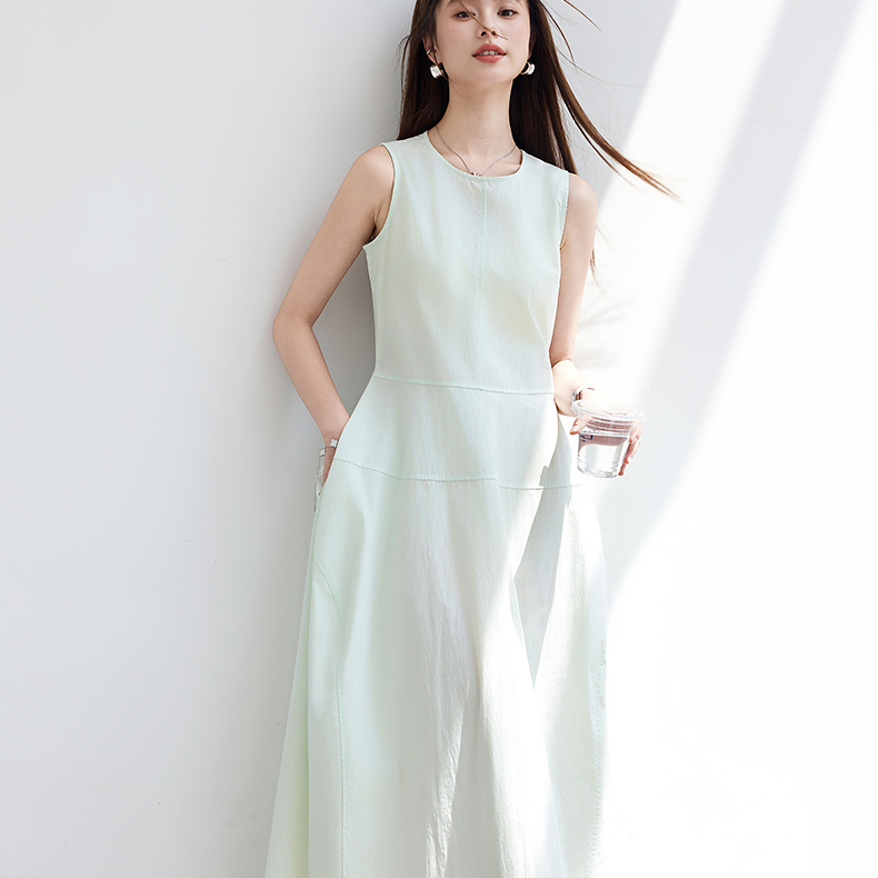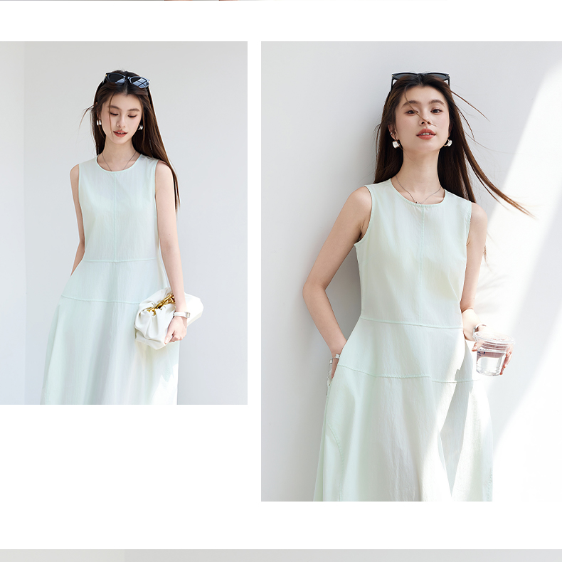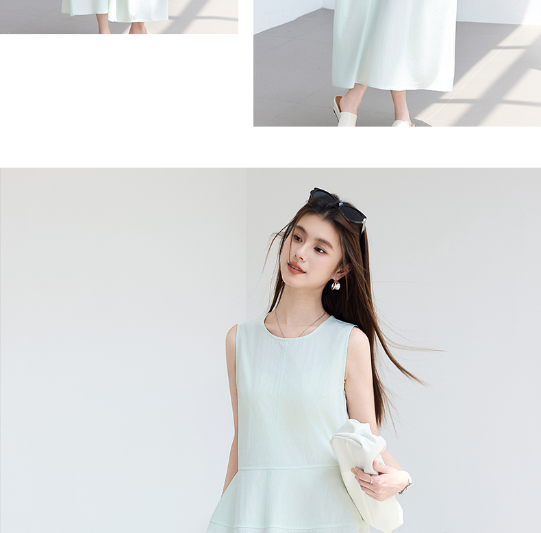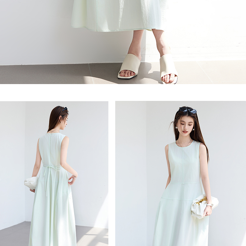 VICTORIA&VERA夏季“绿野呼吸”系列法式无袖花苞连衣裙系带收腰显瘦遮胯通勤度假风---V9013L11
