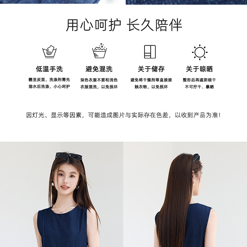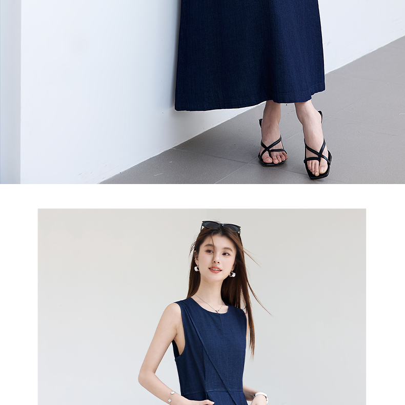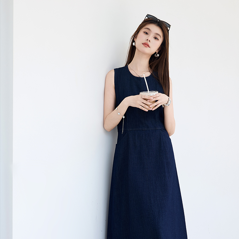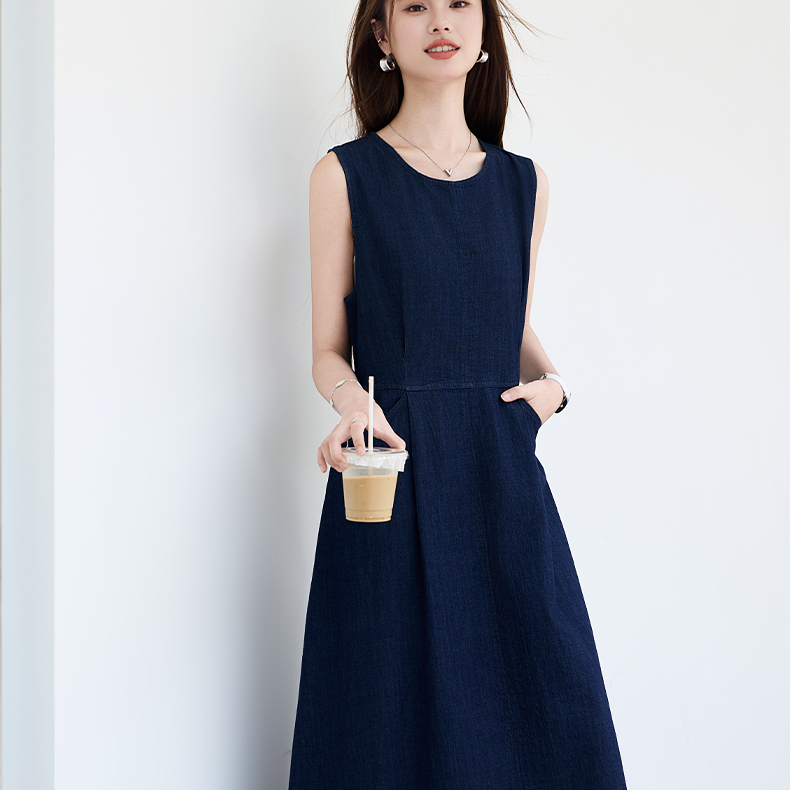 VICTORIA&VERA夏季“蓝氧漫游”仿牛仔无袖连衣裙慵懒垂感+赠同色系mini包遮肉度假套装---V9013L19
