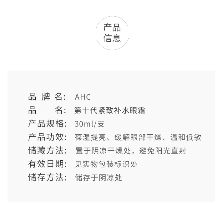 【门店直发 支持同城配送】AHC新版第10代多效眼霜淡化细纹淡化黑眼圈女补水保湿眼霜提拉紧致眼霜30ml