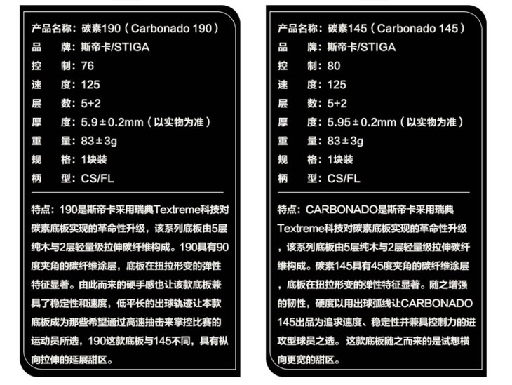 STIGA 斯帝卡 Carbonado 碳素145 碳素190 樊振东用 斯蒂卡