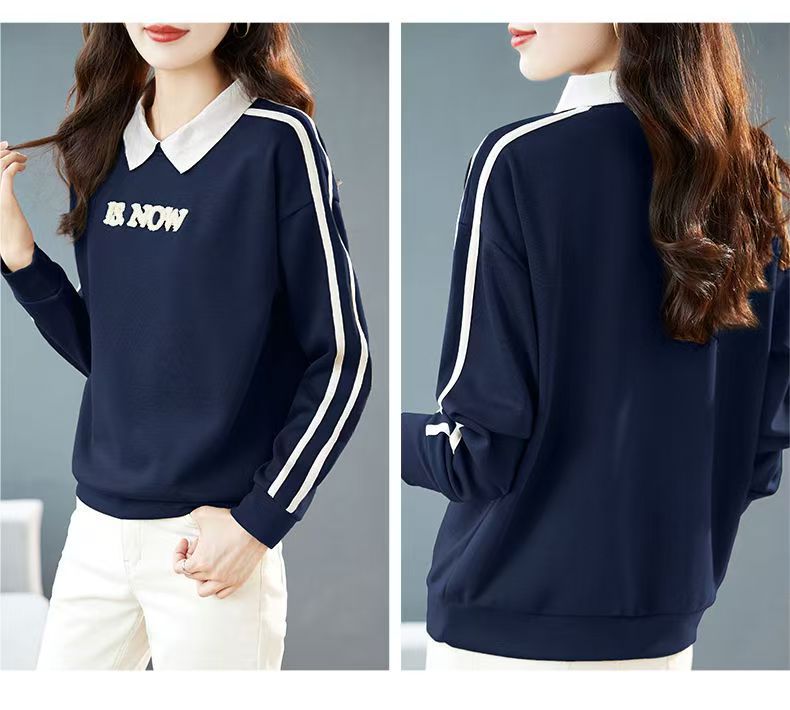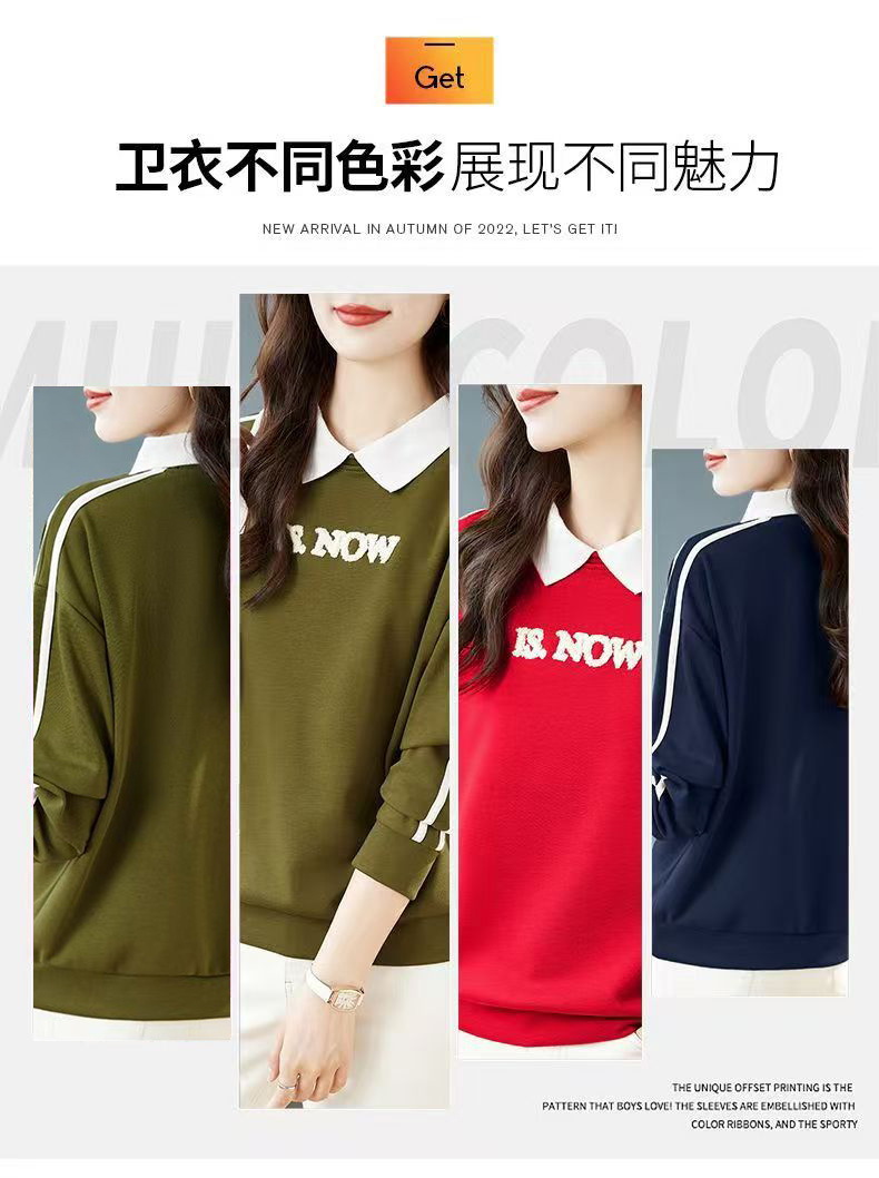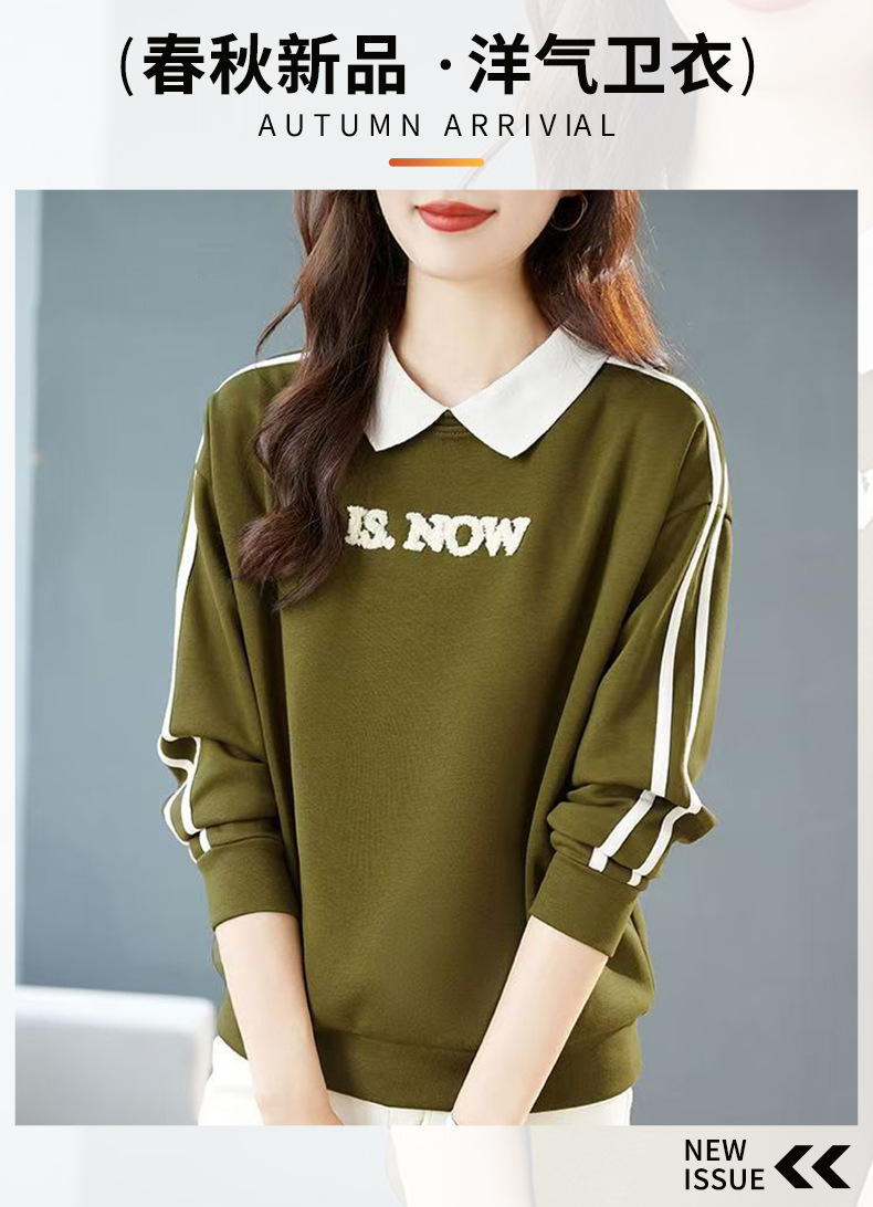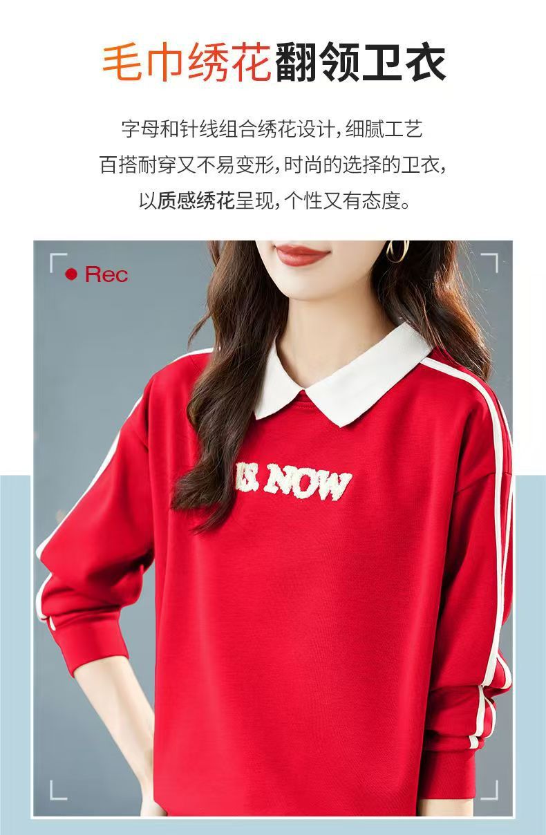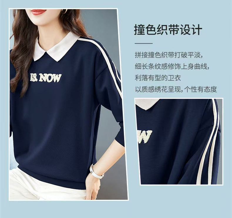 百媚生 polo领卫衣女款春秋刺绣长袖假两件上衣9921 商品图4