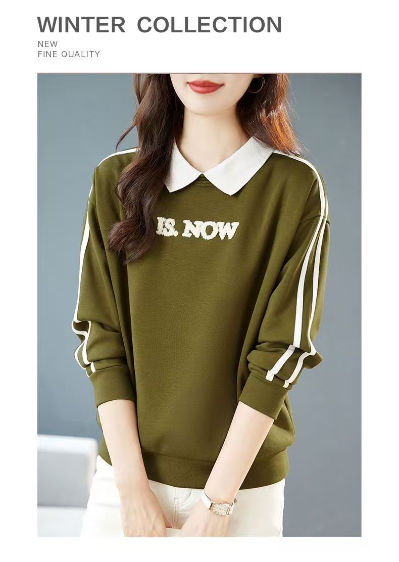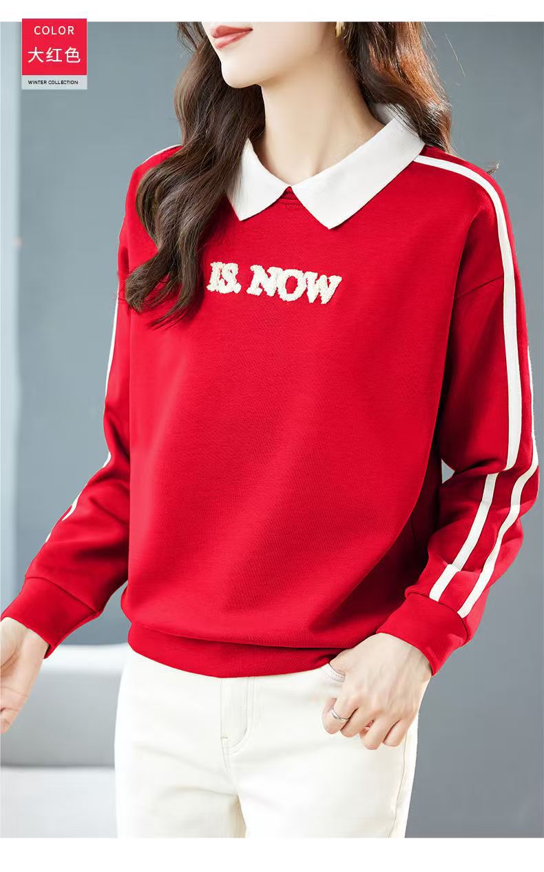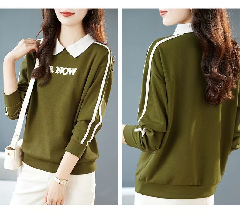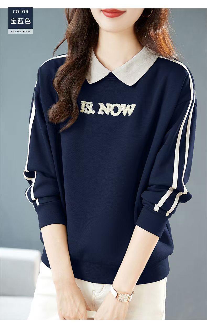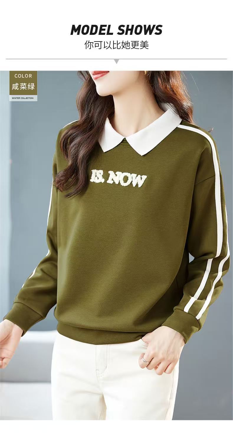 百媚生 polo领卫衣女款春秋刺绣长袖假两件上衣9921 商品图4