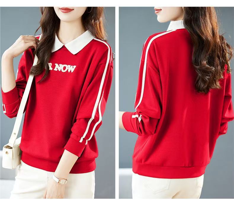 百媚生 polo领卫衣女款春秋刺绣长袖假两件上衣9921 商品图0