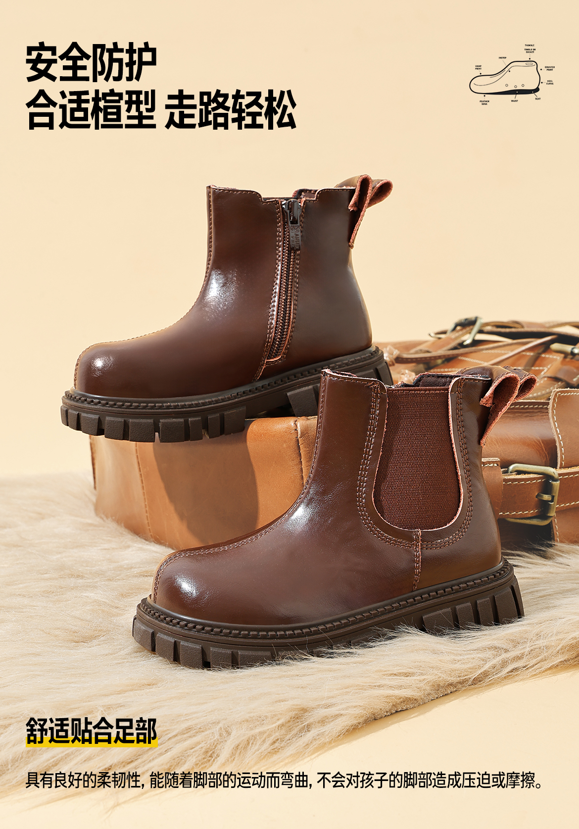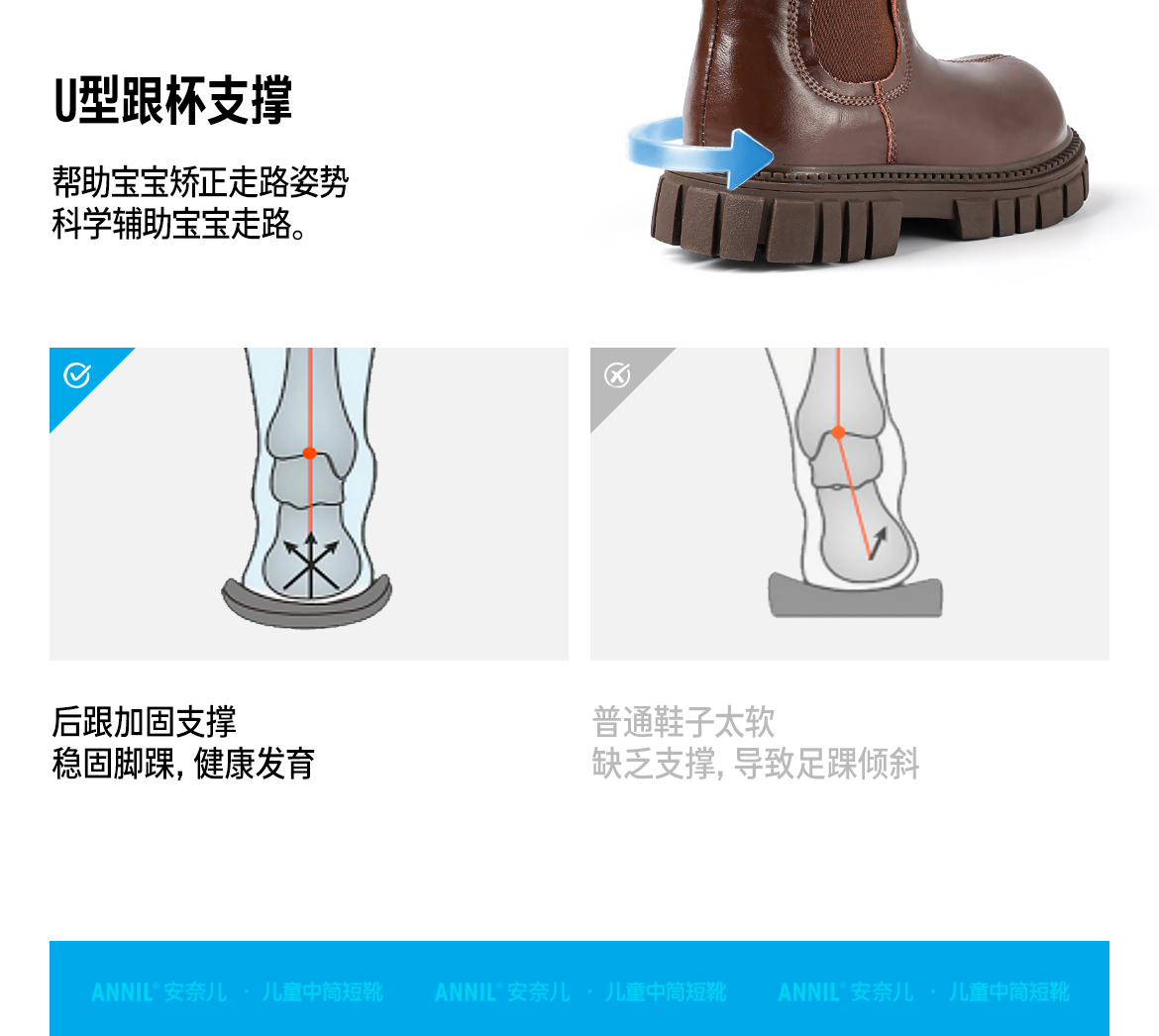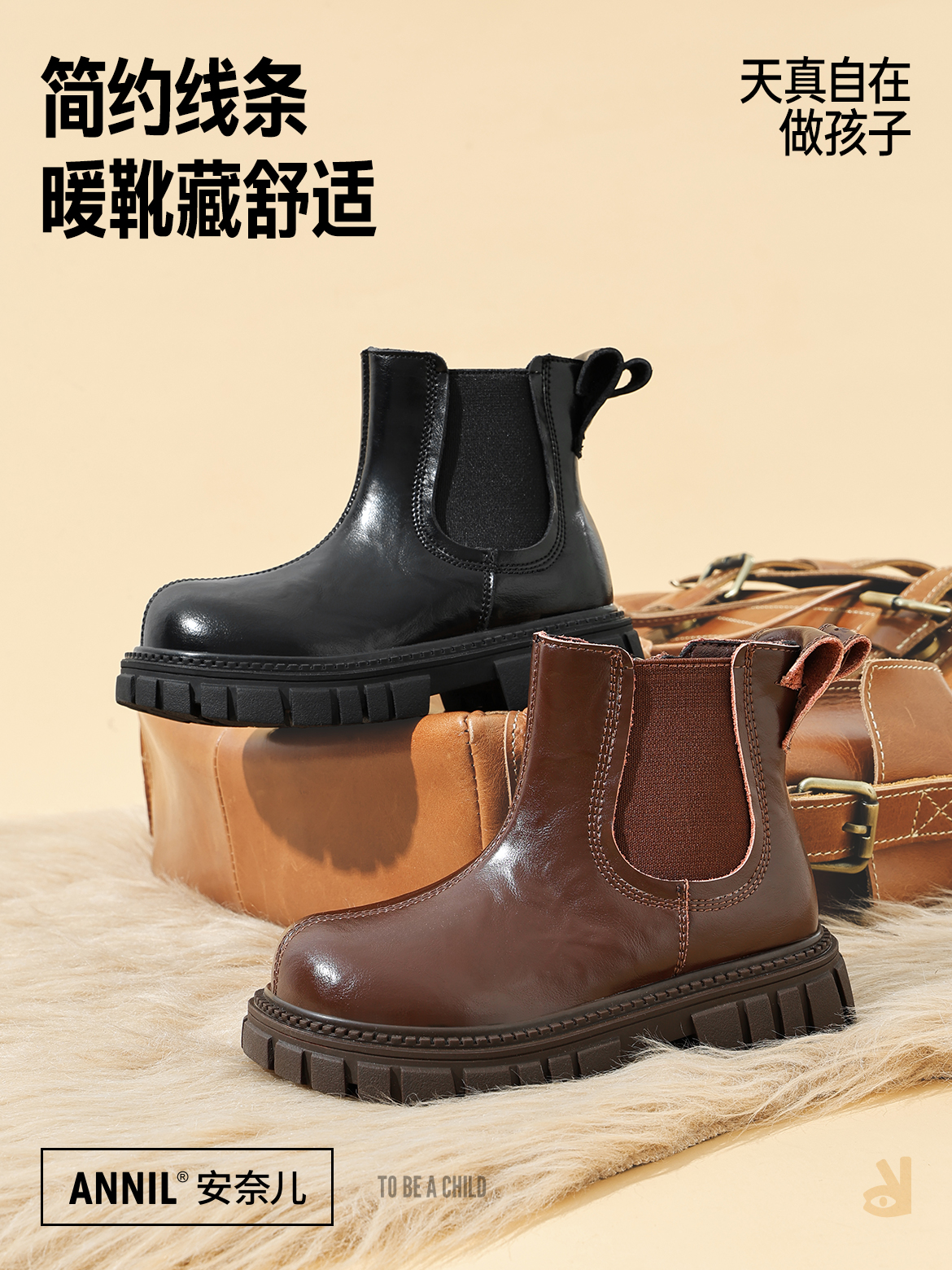 ANNIL/安奈儿童鞋女童3-6岁女童马丁靴中大童加绒保暖冬季雪地靴英伦风HG5408667