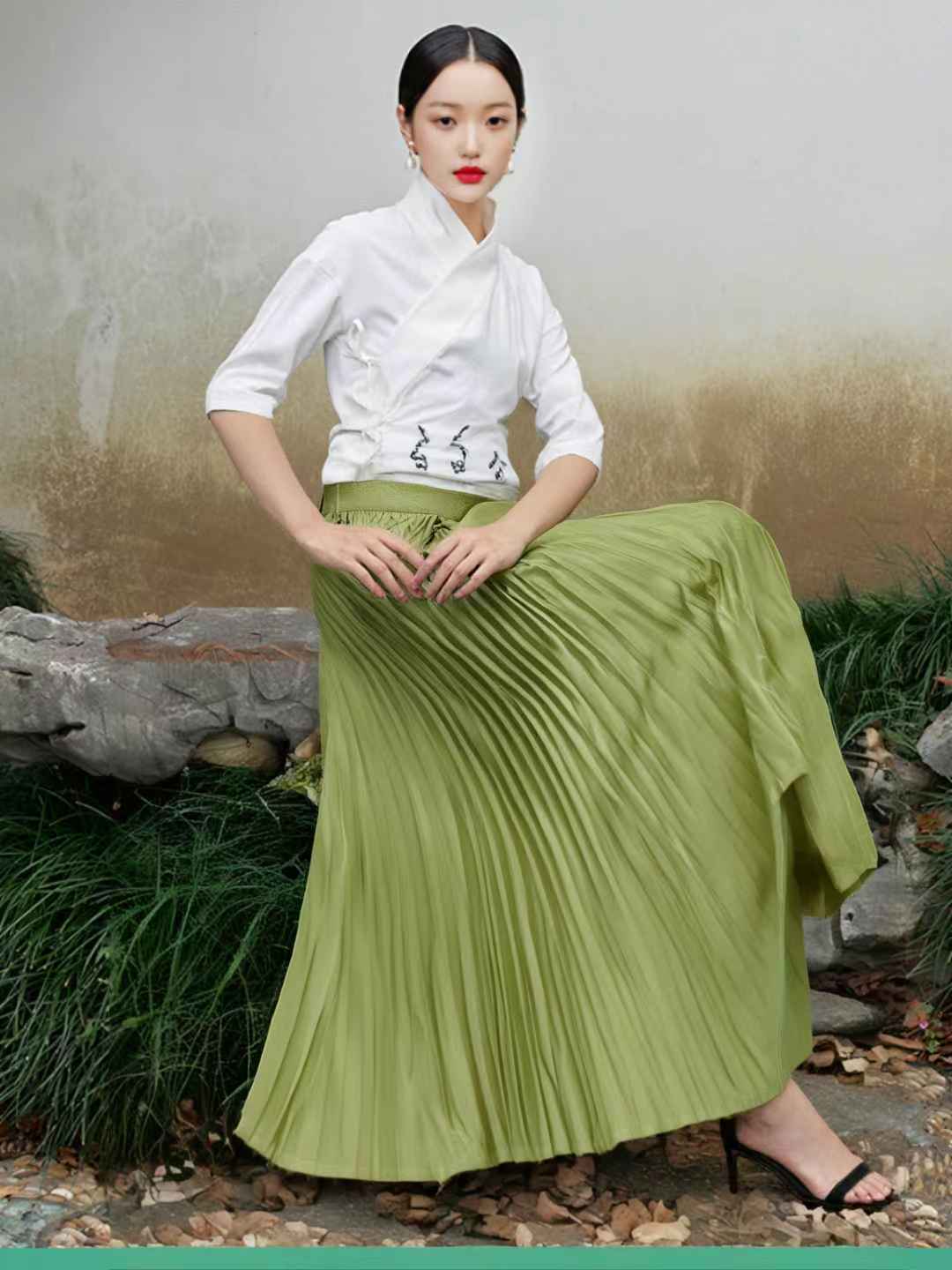 【诗铭洛可】W874百褶裙风琴压褶半身裙A11-1