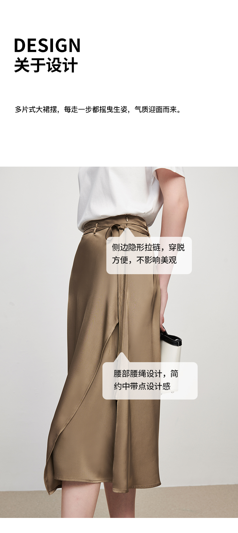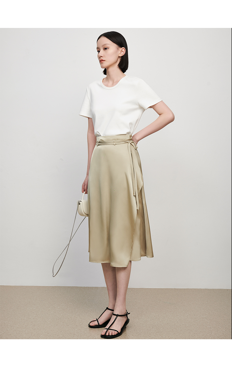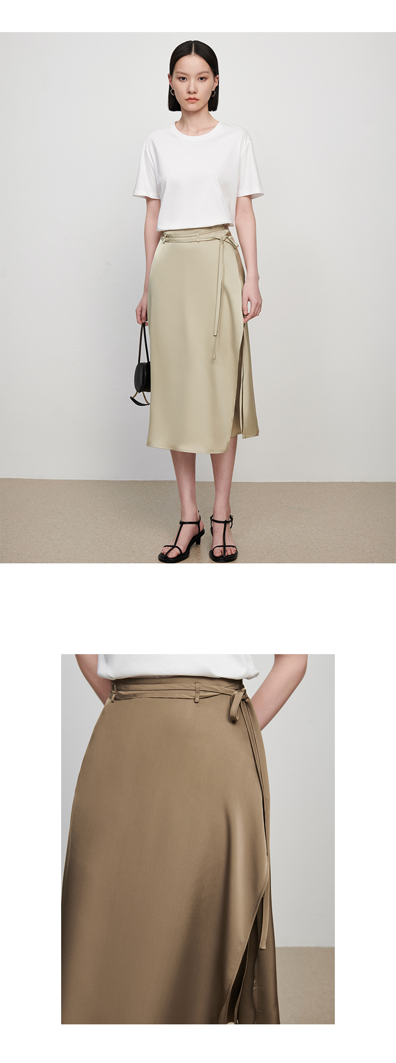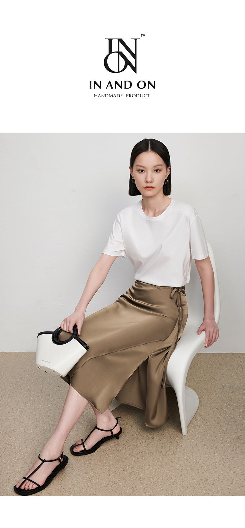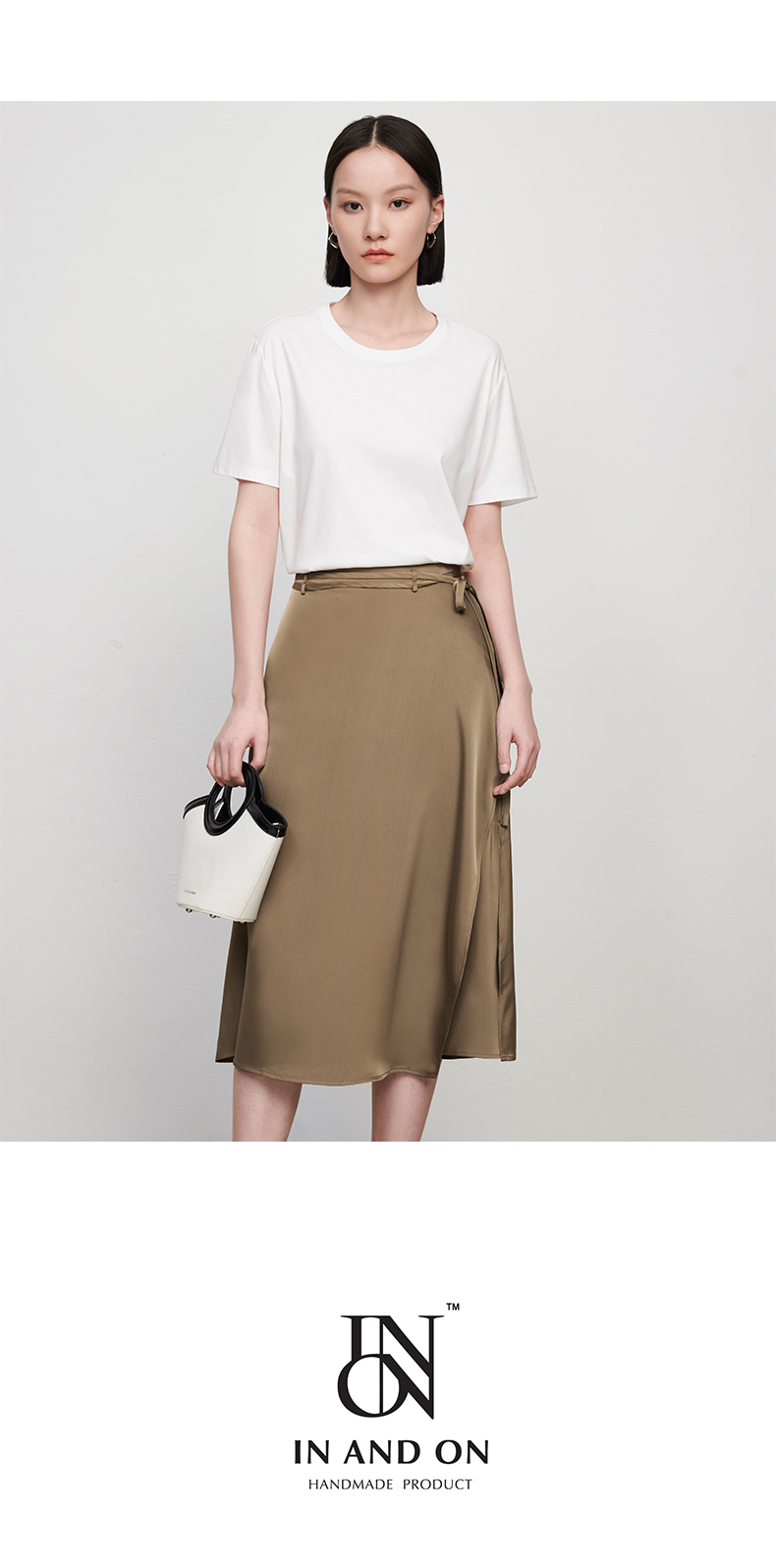 IN AND ON 新款半身裙女垂顺丝带显瘦百搭纯色通勤A字裙21769