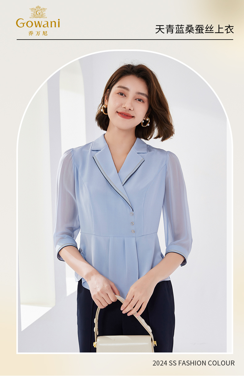 乔万尼新款短袖中袖衬衫28mm真丝弹力重绉EM2C742