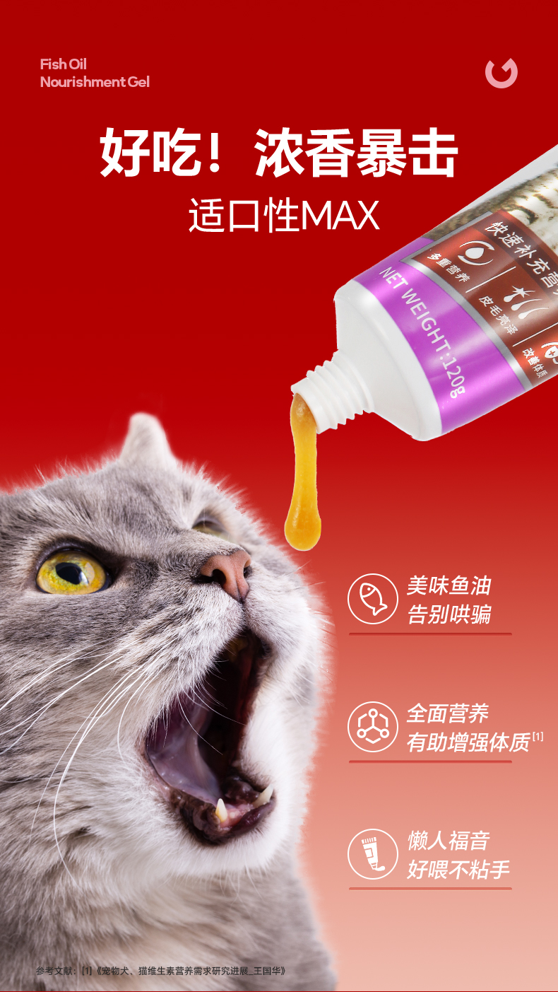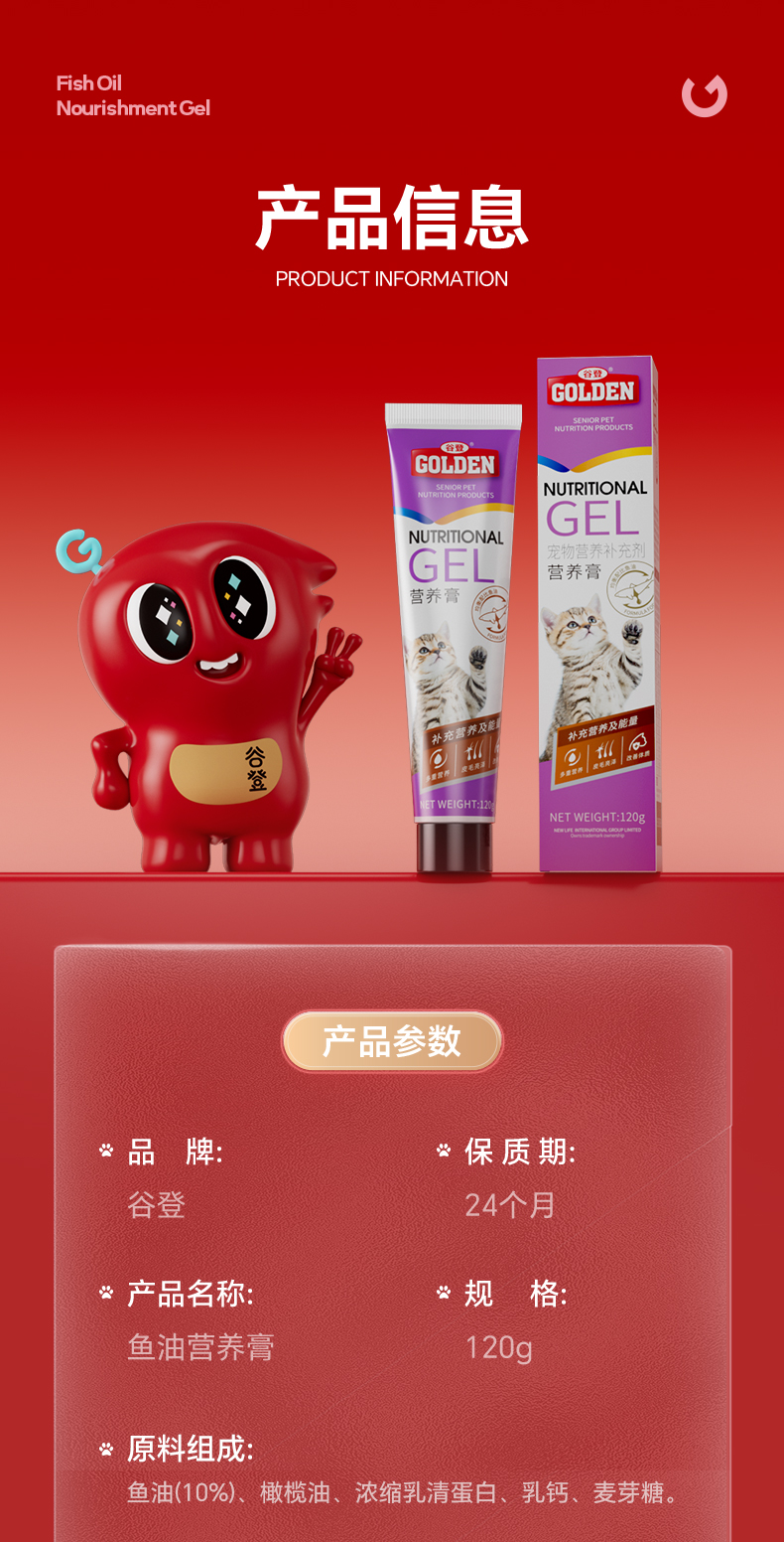 【2支加送赠品】谷登鱼油配方营养膏(猫用)120g