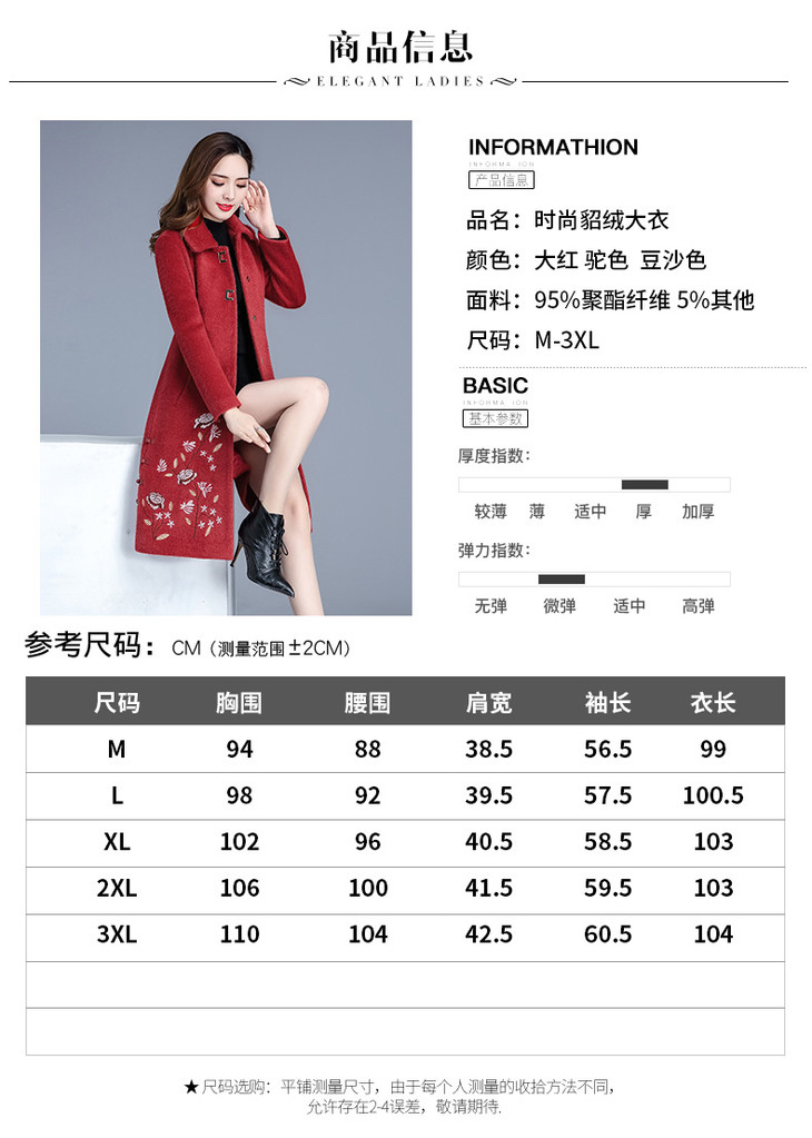 YW-XY19A38时尚修身显瘦绣花雪貂绒大衣
