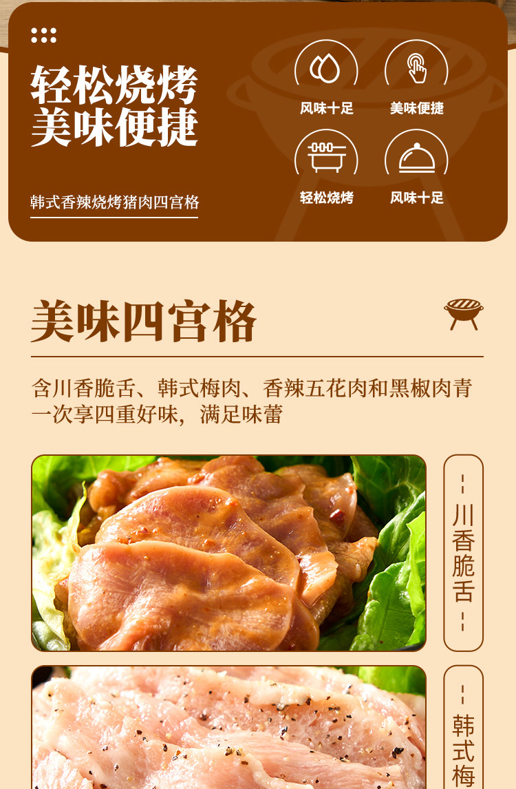 【南京提货券赠品专用】苏食韩式香辣烧烤猪肉四宫格_420g