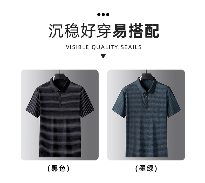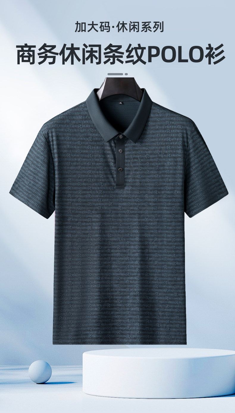 【DK】大依优型大码男装夏季商务休闲条纹POLO衫短袖冰丝透气短袖上衣
