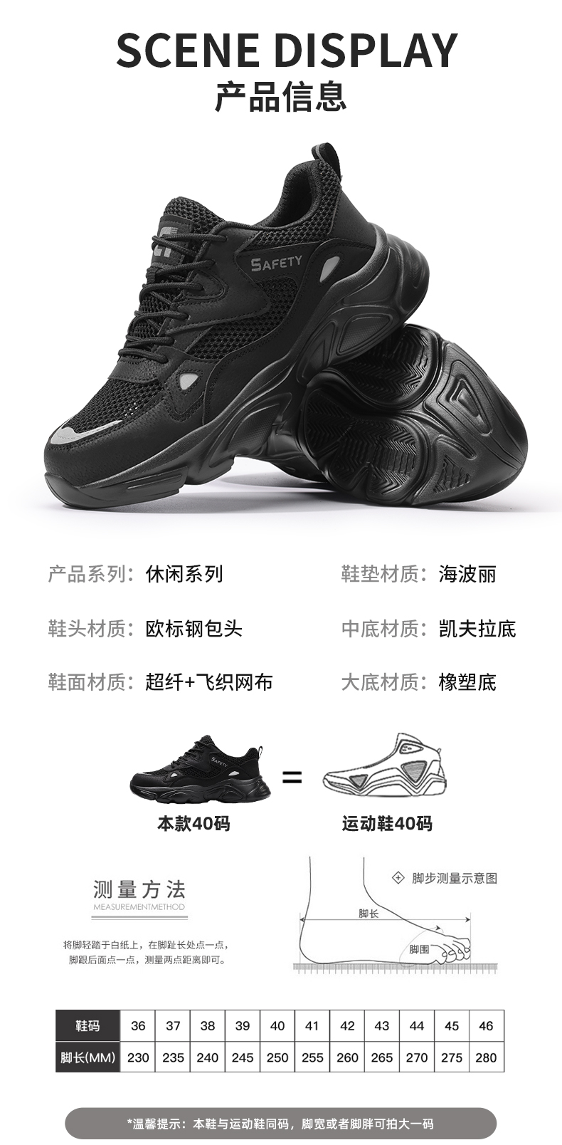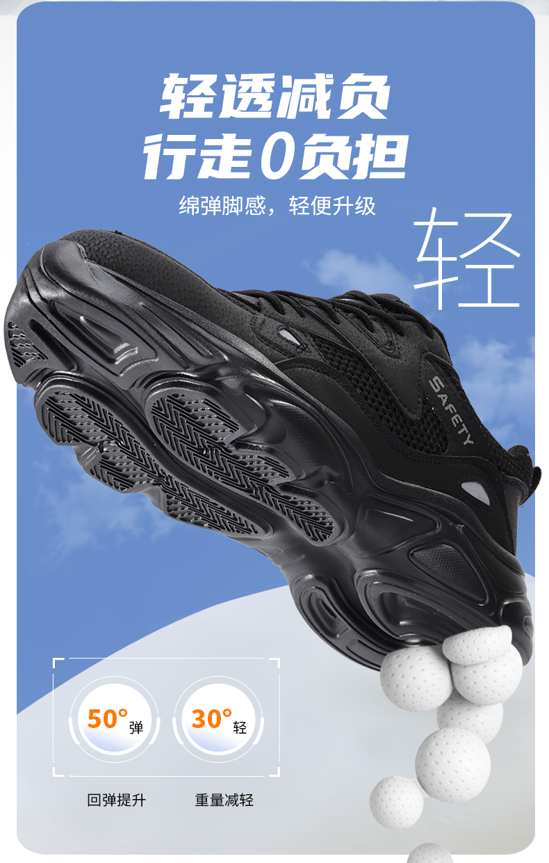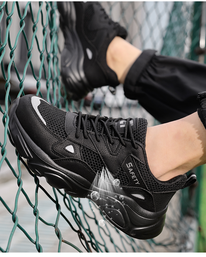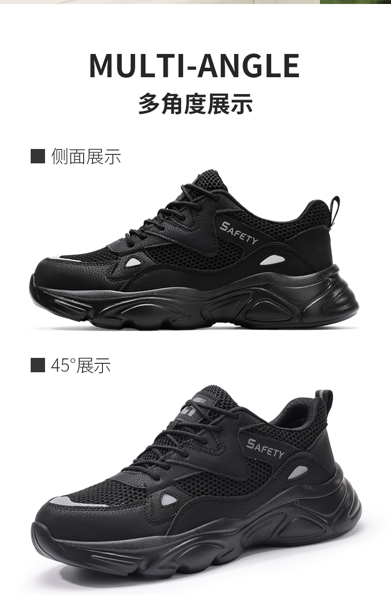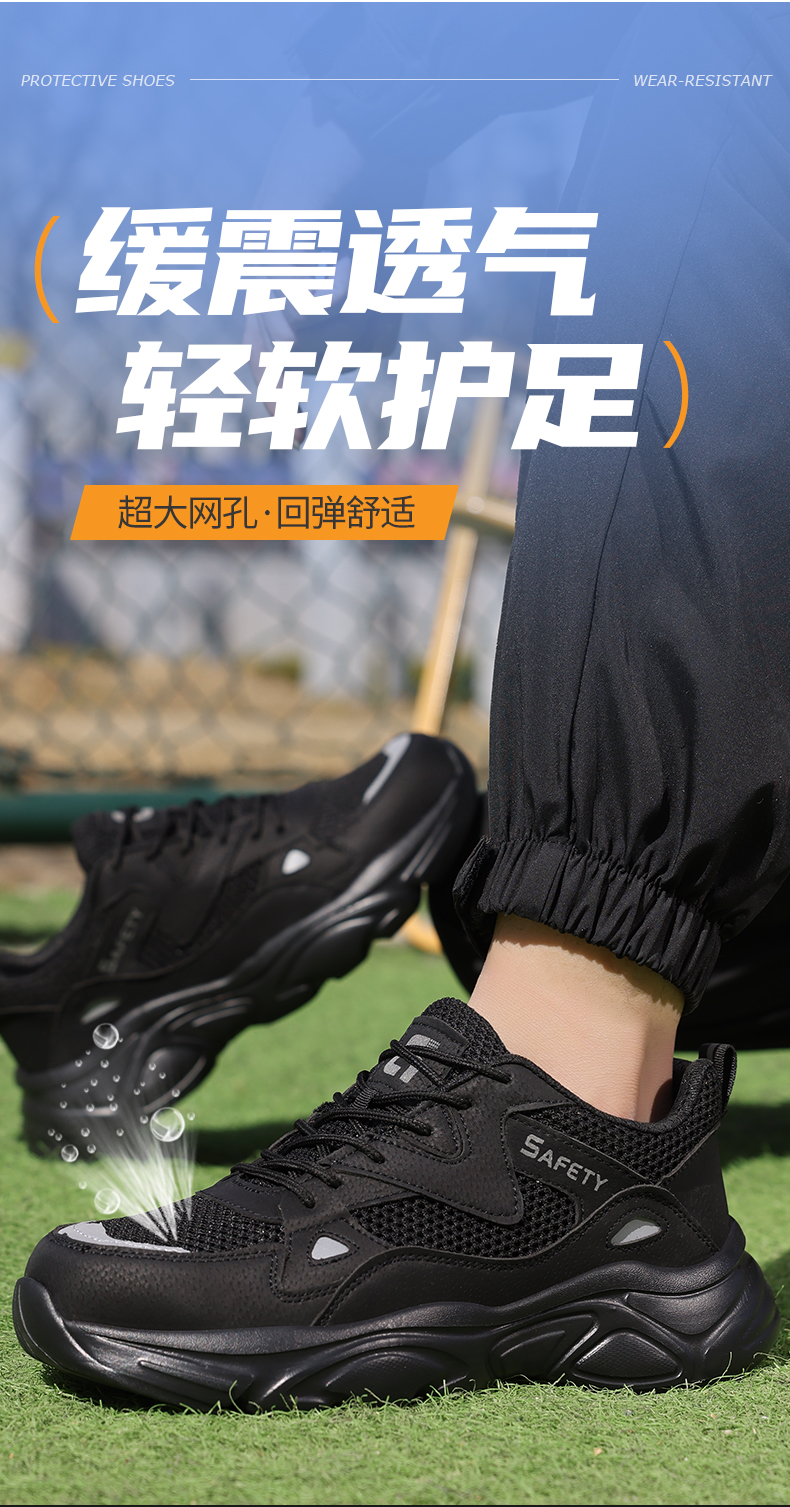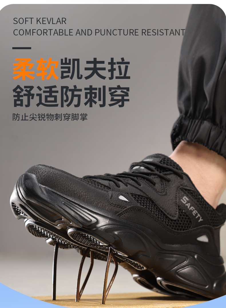 2025夏季透气新款劳保鞋防砸防刺穿欧标钢包头凯夫拉底橡塑底黑色低帮安全鞋
