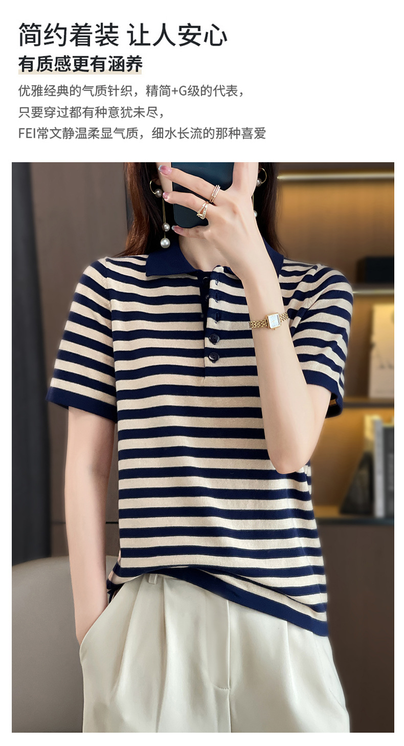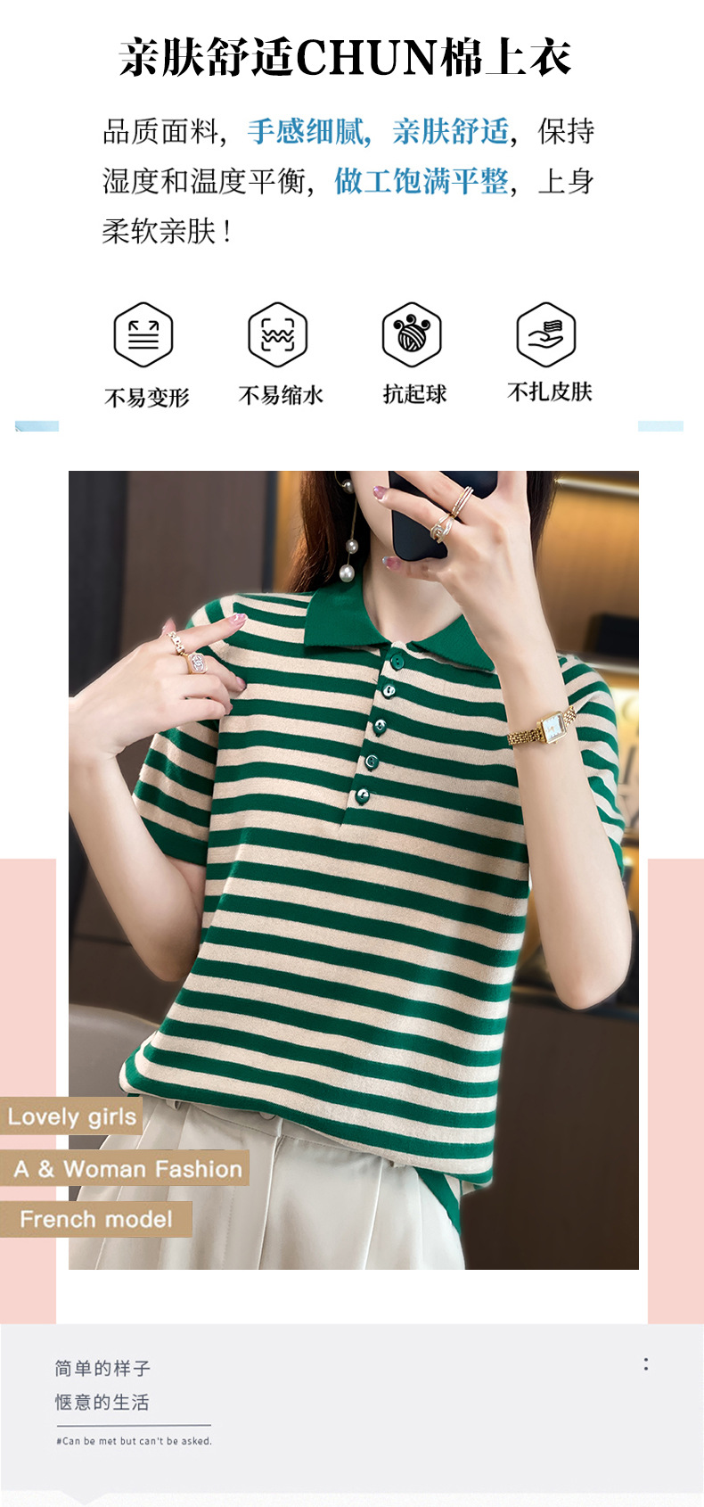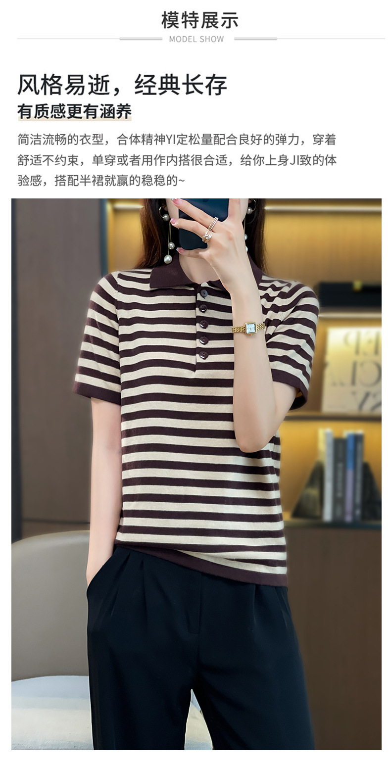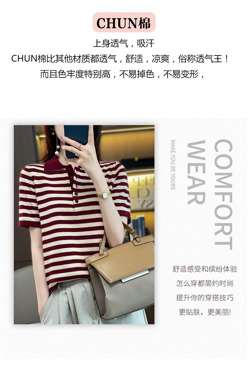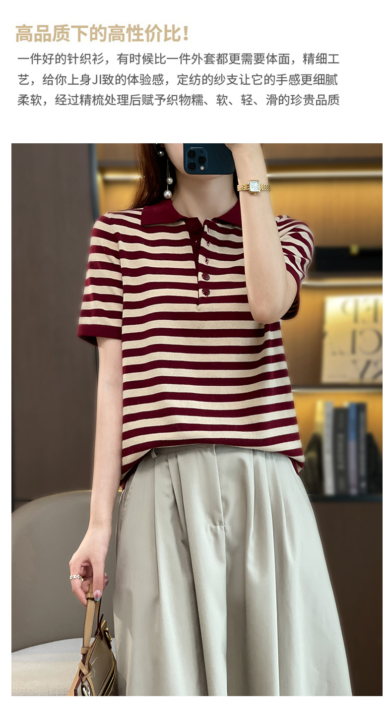 精纺纯棉POLO领针织衫条纹外穿t恤WJ305