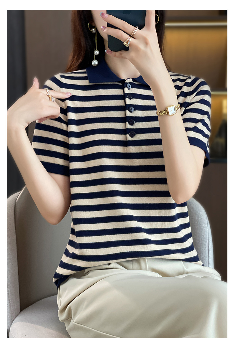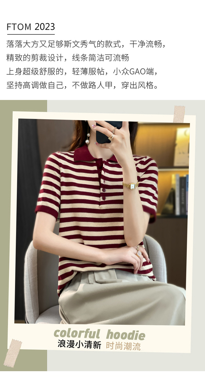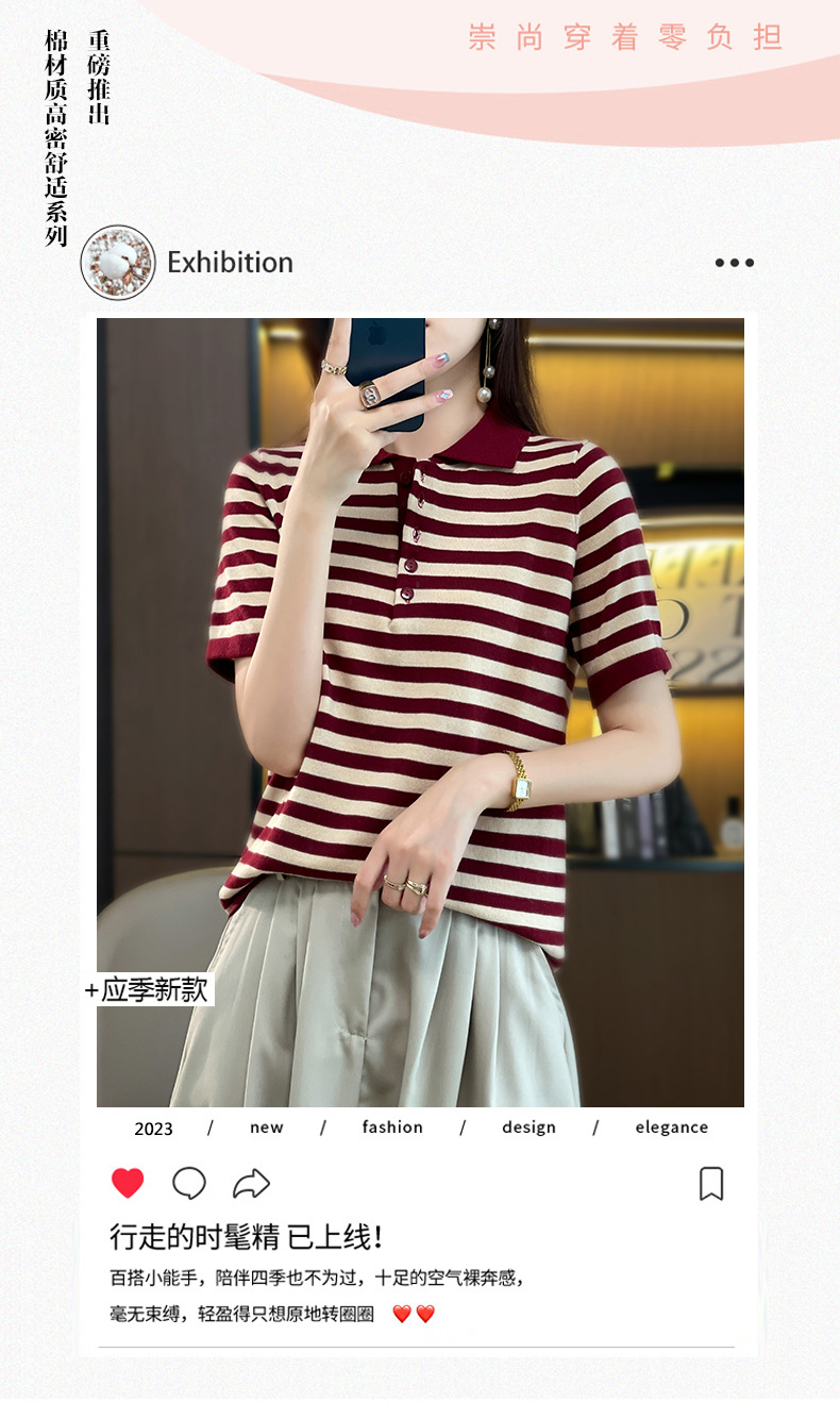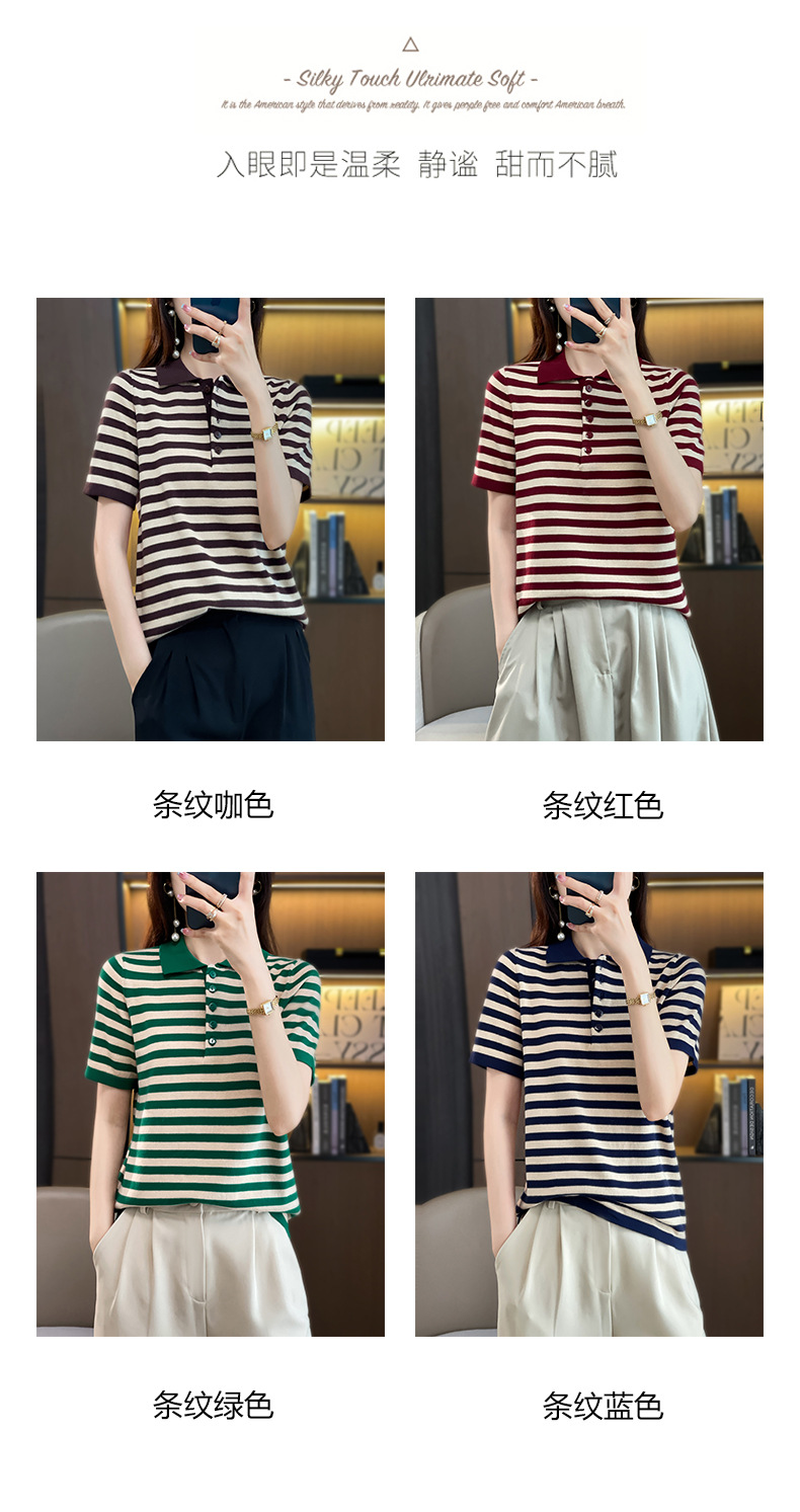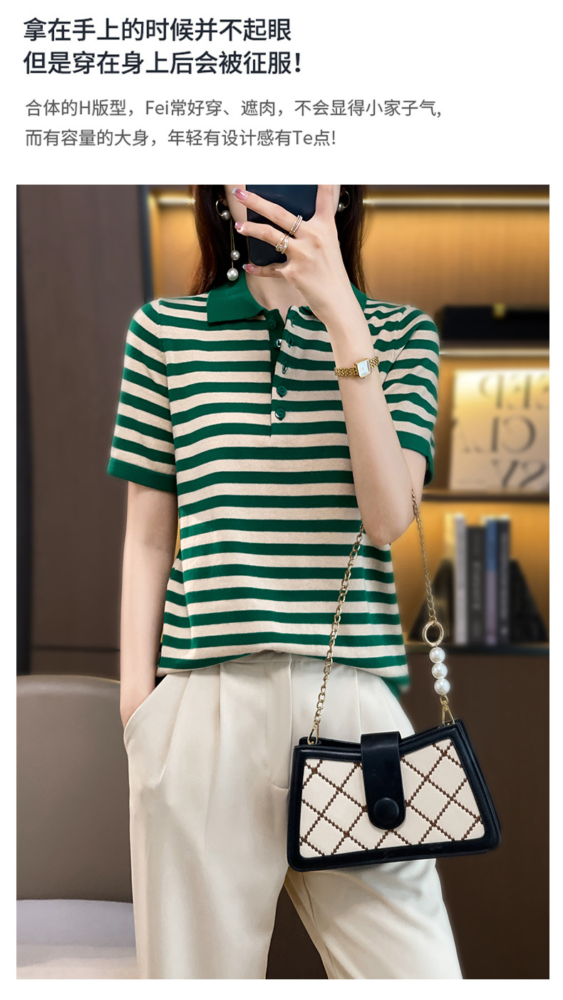 精纺纯棉POLO领针织衫条纹外穿t恤WJ305