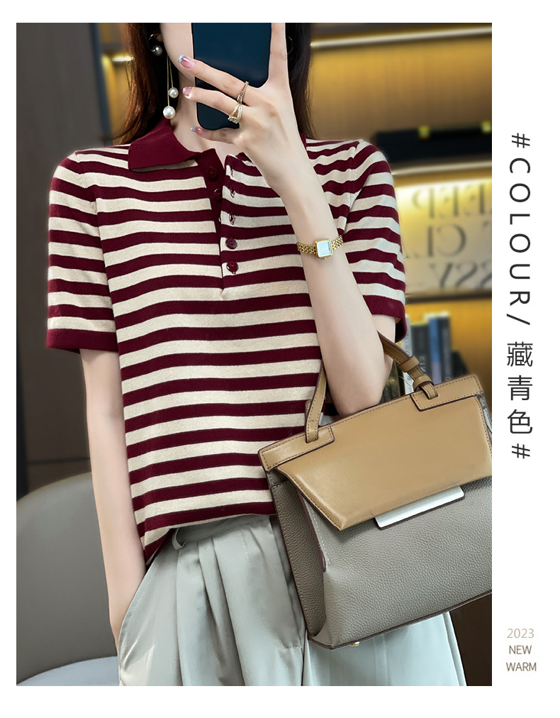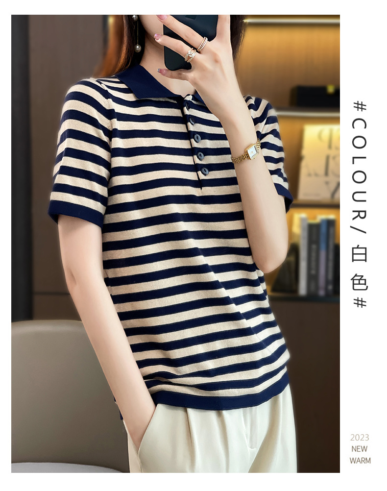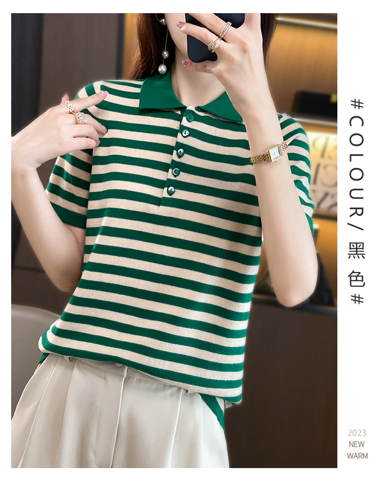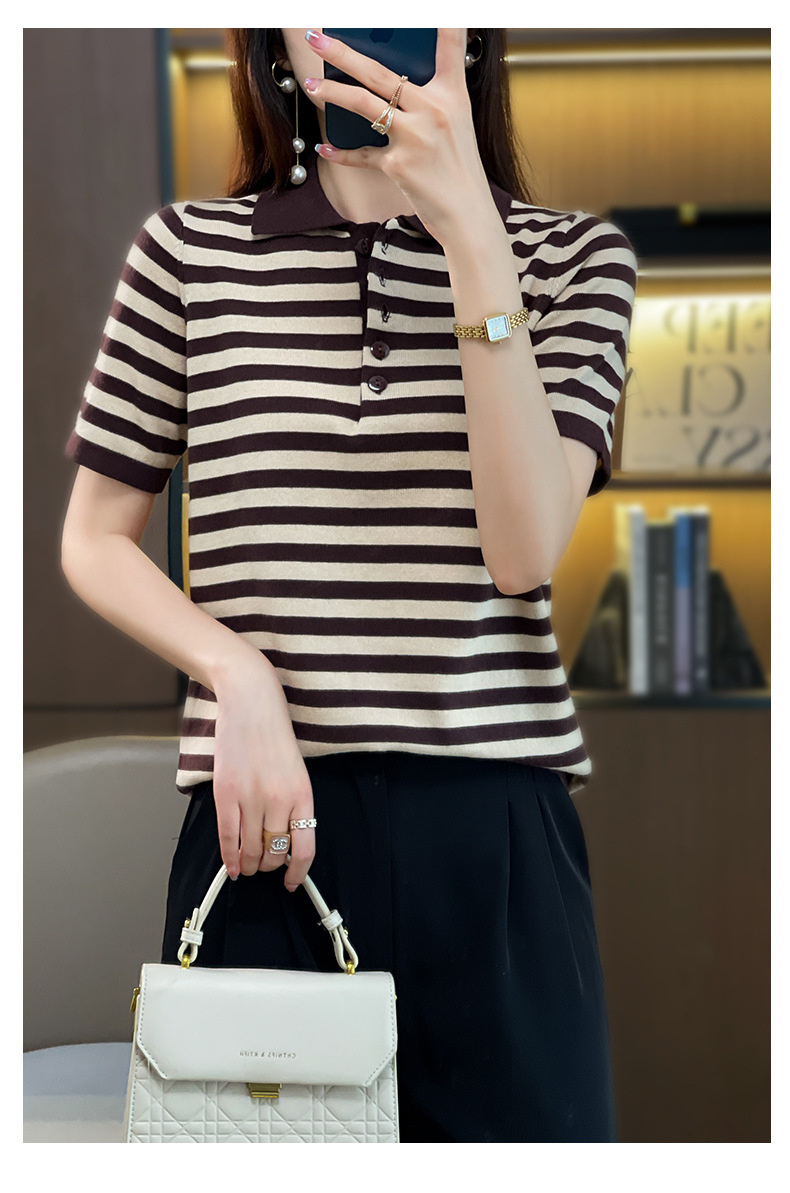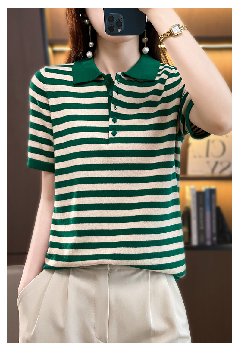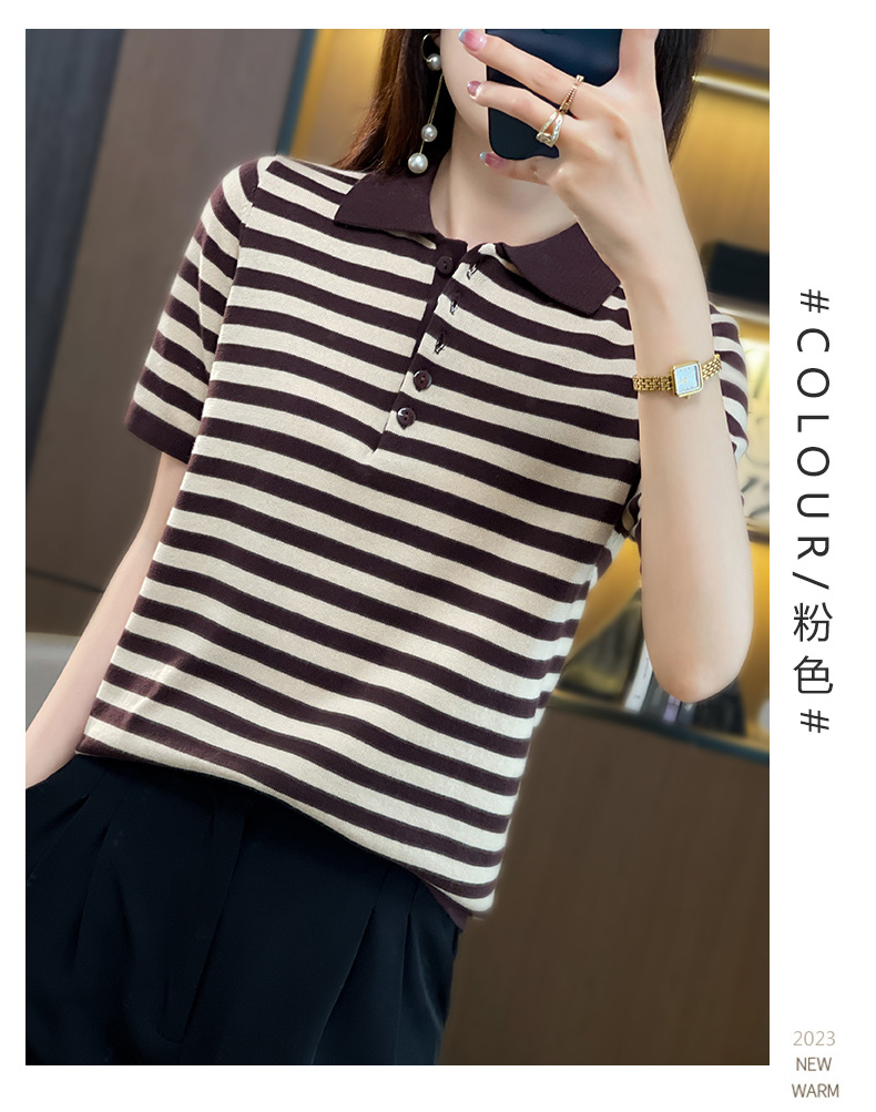 精纺纯棉POLO领针织衫条纹外穿t恤WJ305