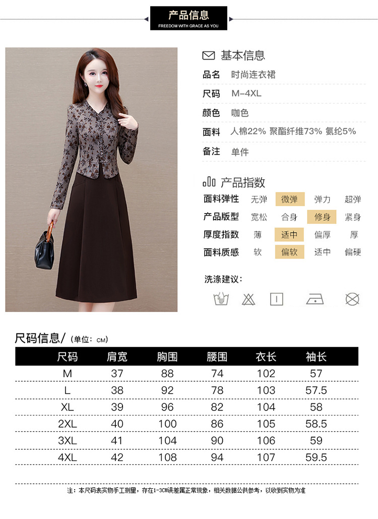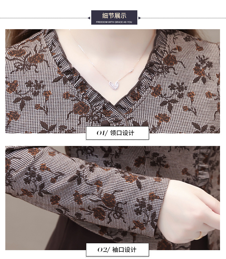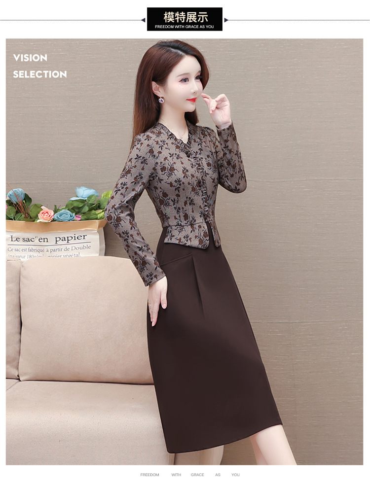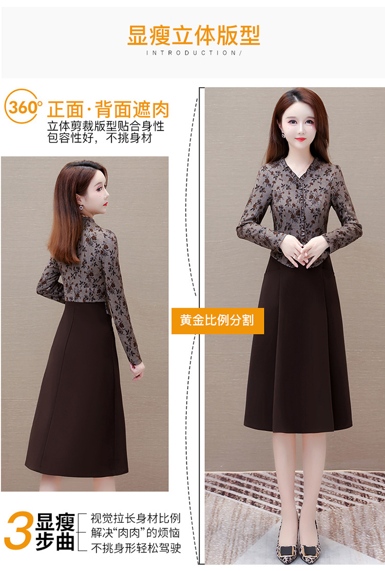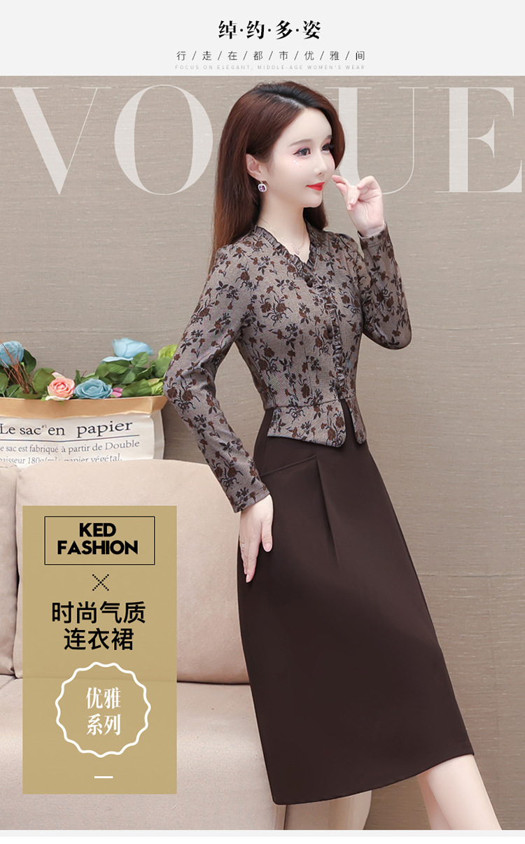 秋季新款,印花裙长袖裙拼结假两件中长裙时尚连衣裙QYM-KED-M3827-Y