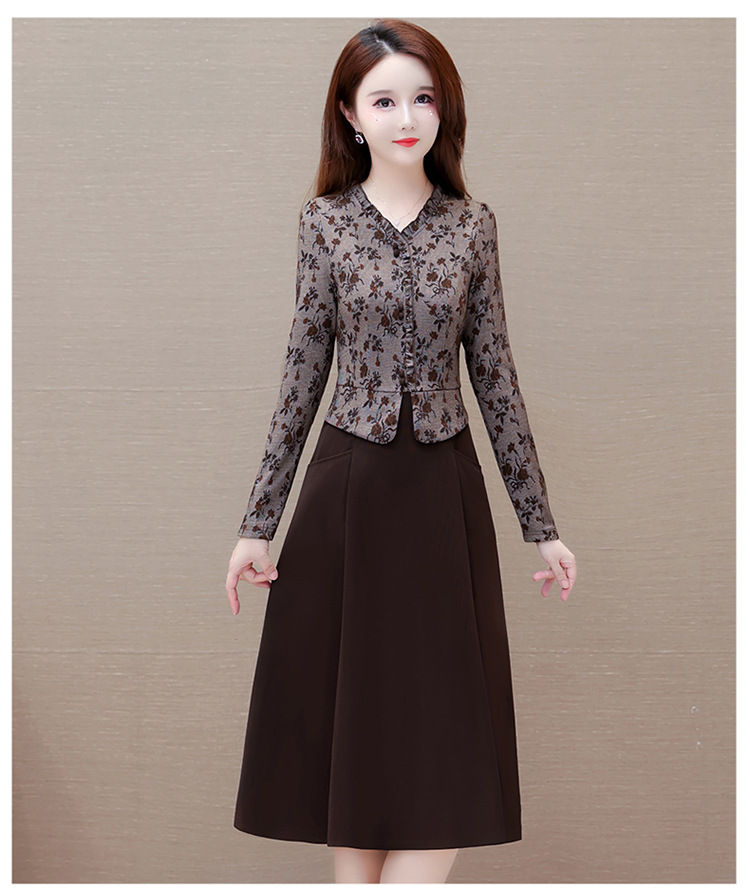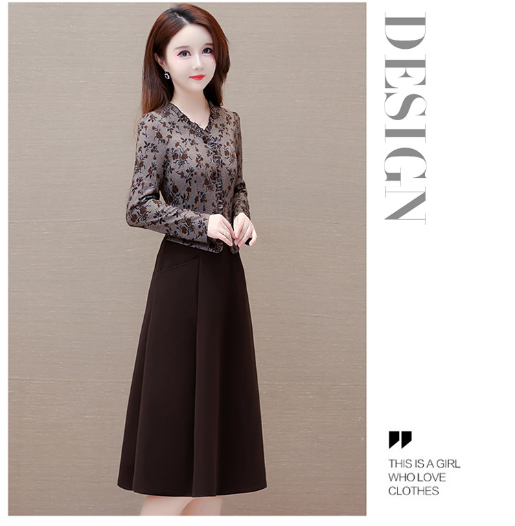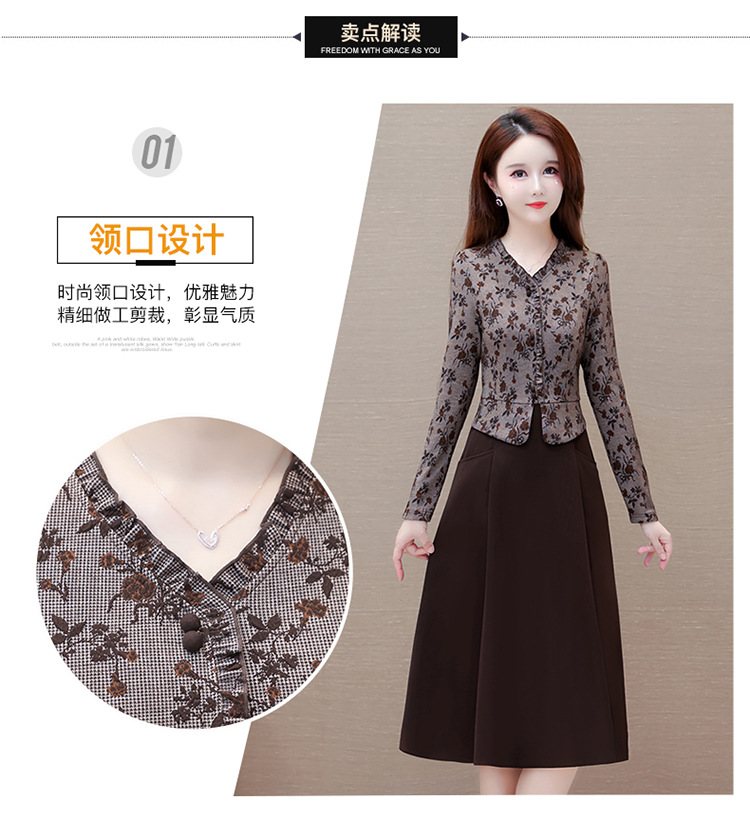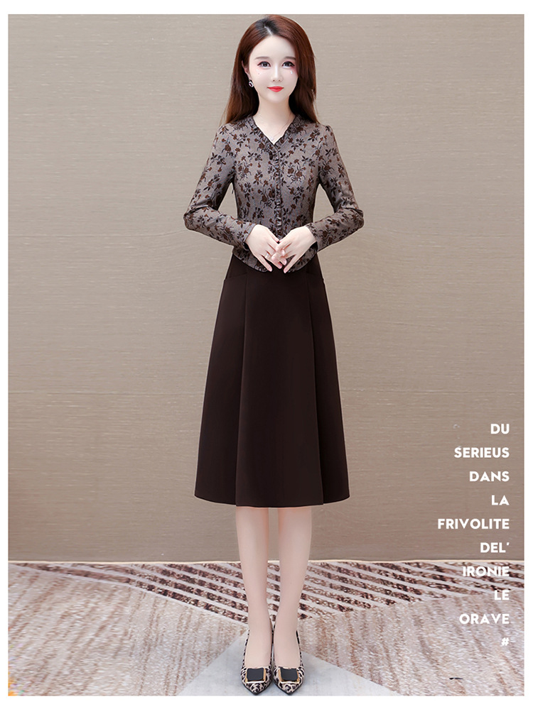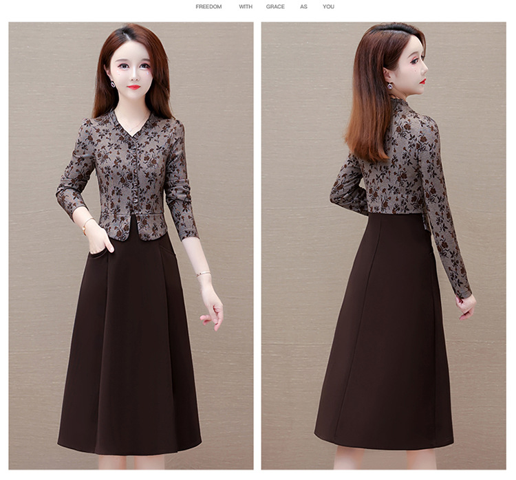 秋季新款,印花裙长袖裙拼结假两件中长裙时尚连衣裙QYM-KED-M3827-Y