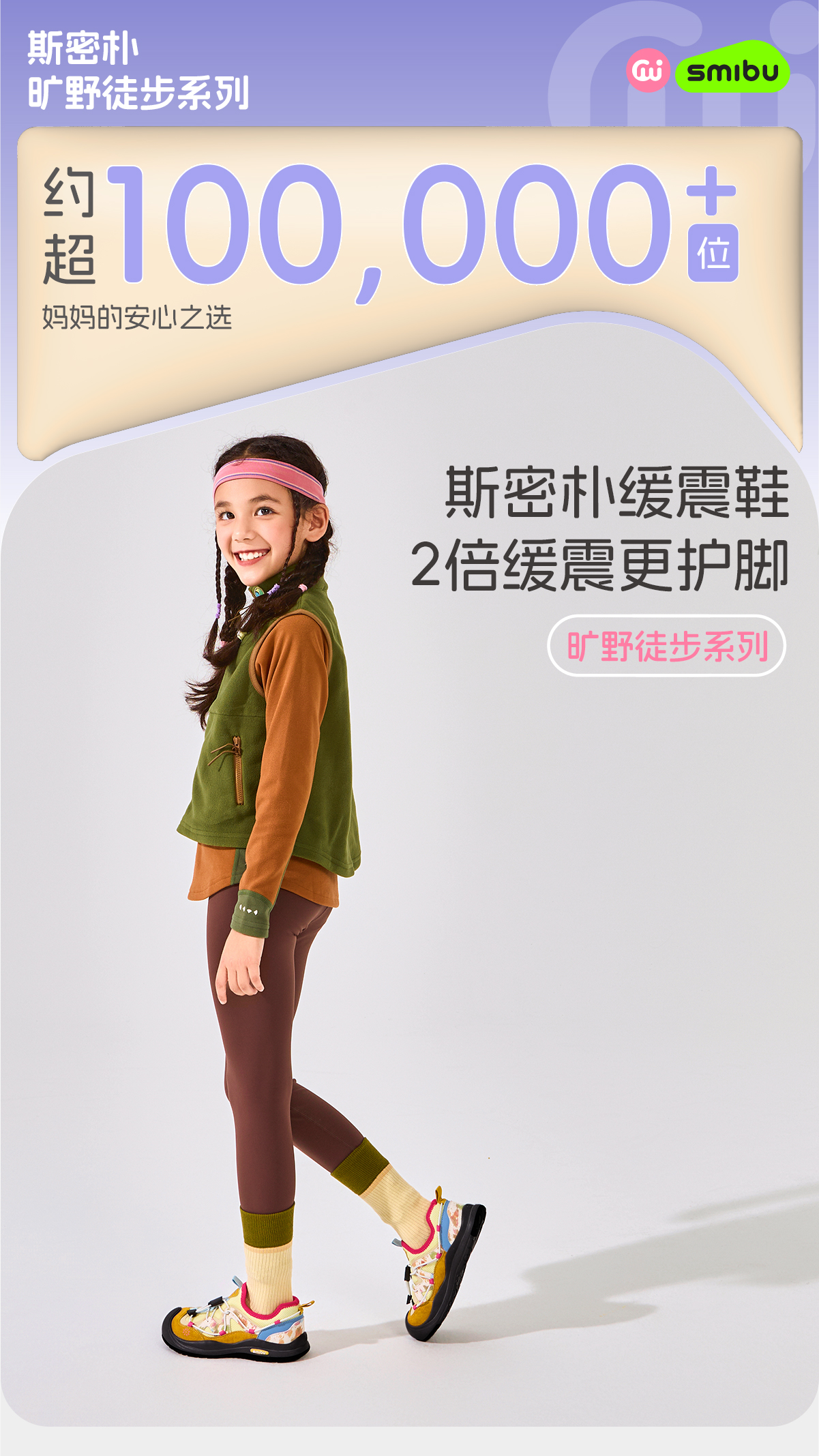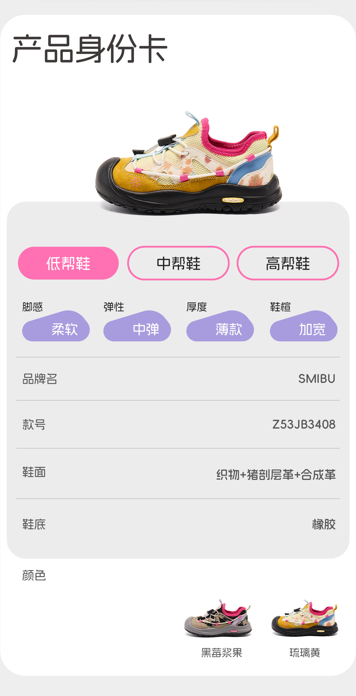 SMIBU旷野徒步系列男女中大童春秋季新款彩虹堂缓震减压户外徒步鞋Z53JB3408【CC爸妈团购】