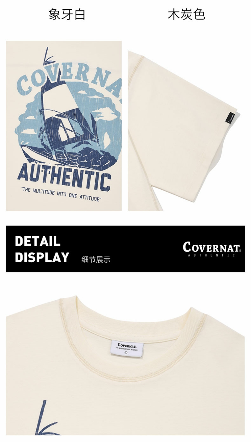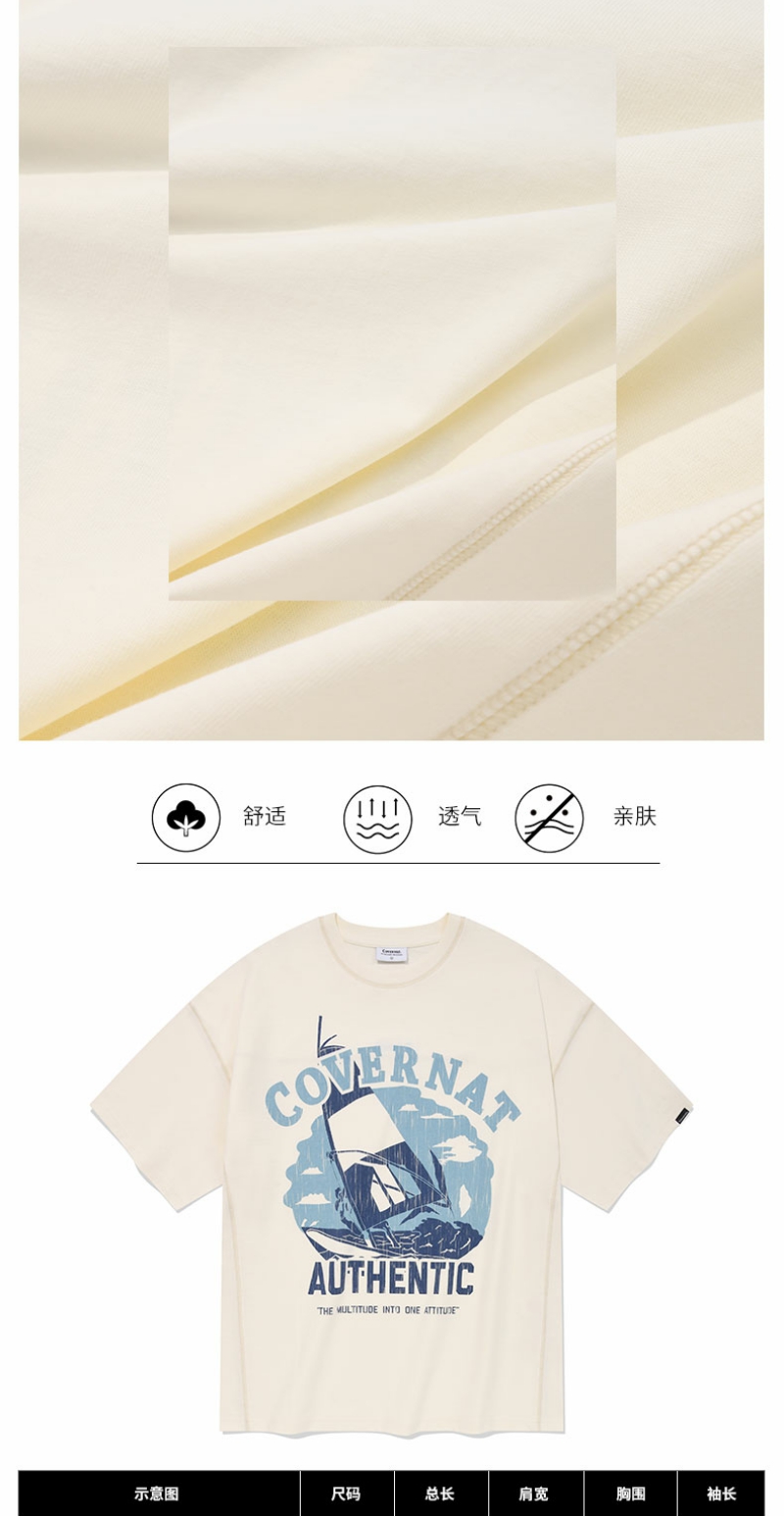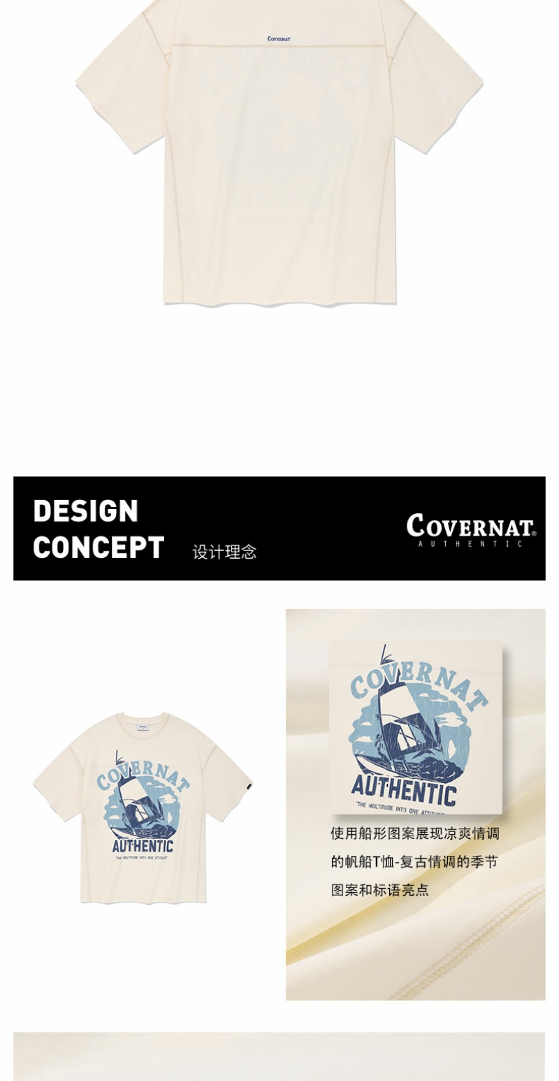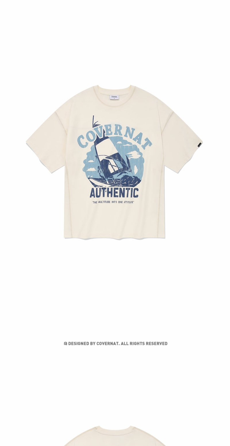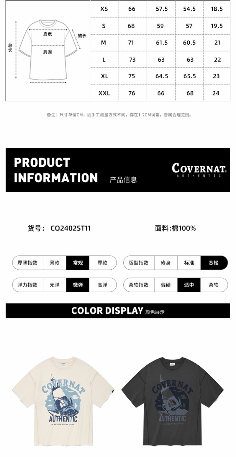covernat韩国潮牌圆领T恤布罗肯船短袖时尚舒适全棉2024春夏CO2402ST11