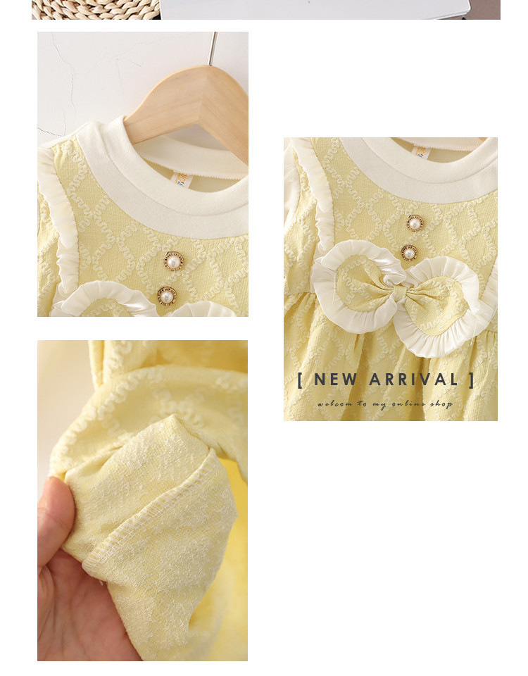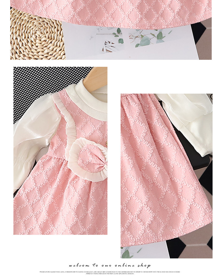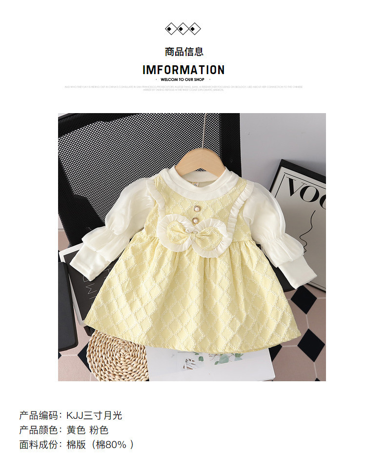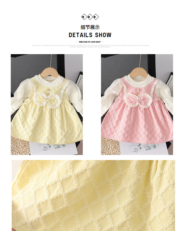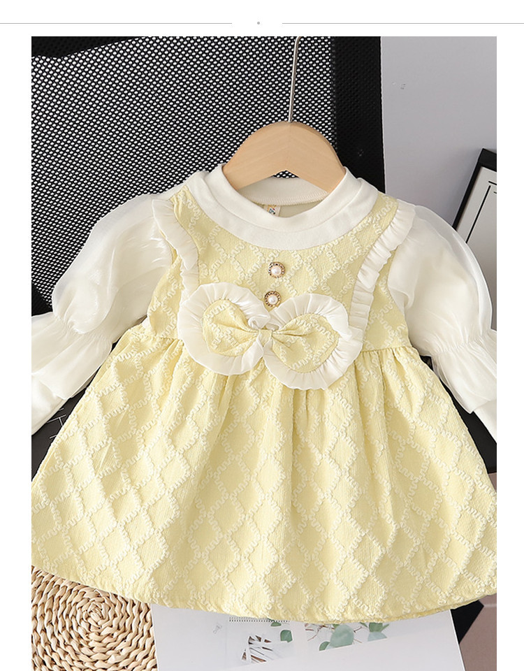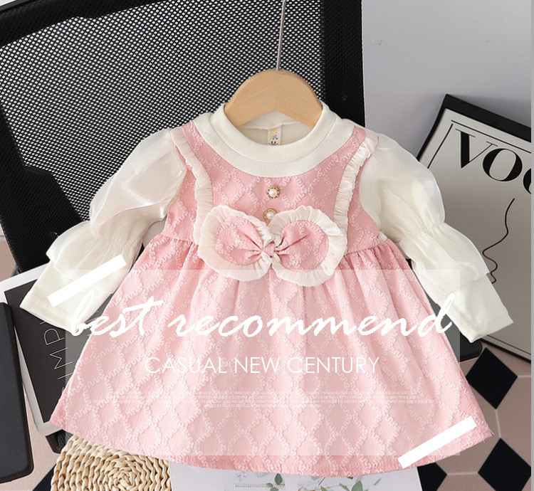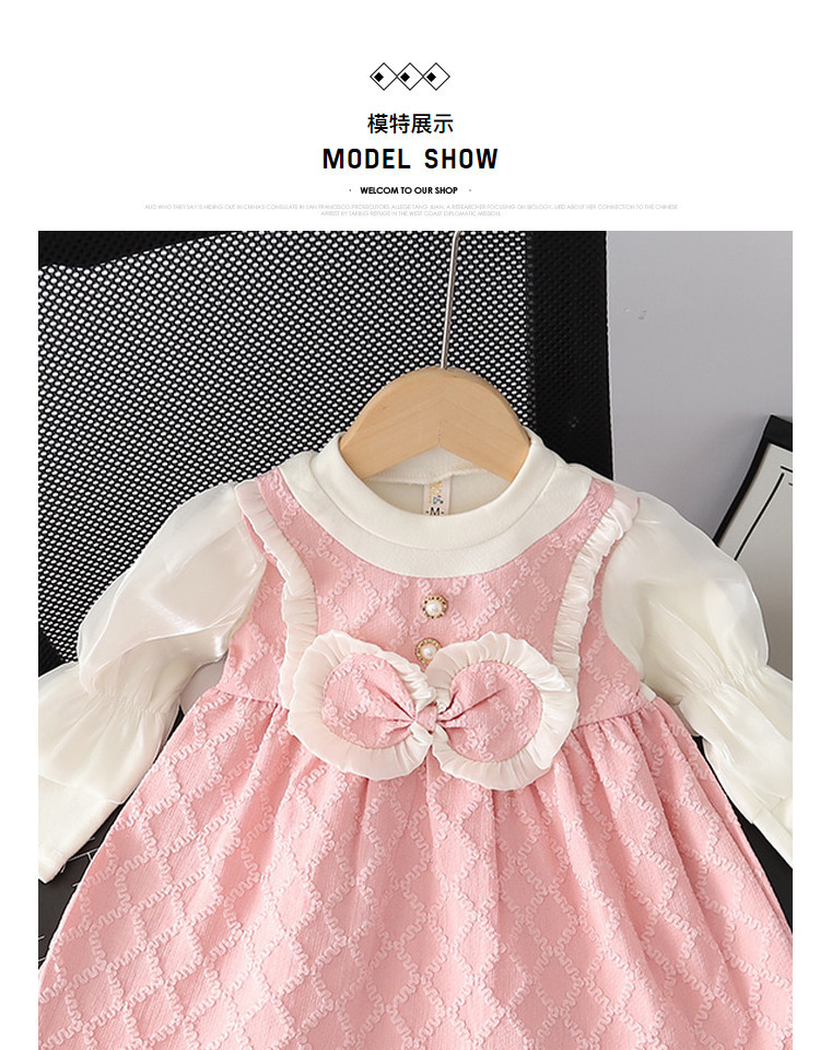 【时尚小香风!假两件连衣裙】女童小香风连衣裙,春秋款儿童裙子,泡泡袖蝴蝶结圆领背带裙假两件lish
