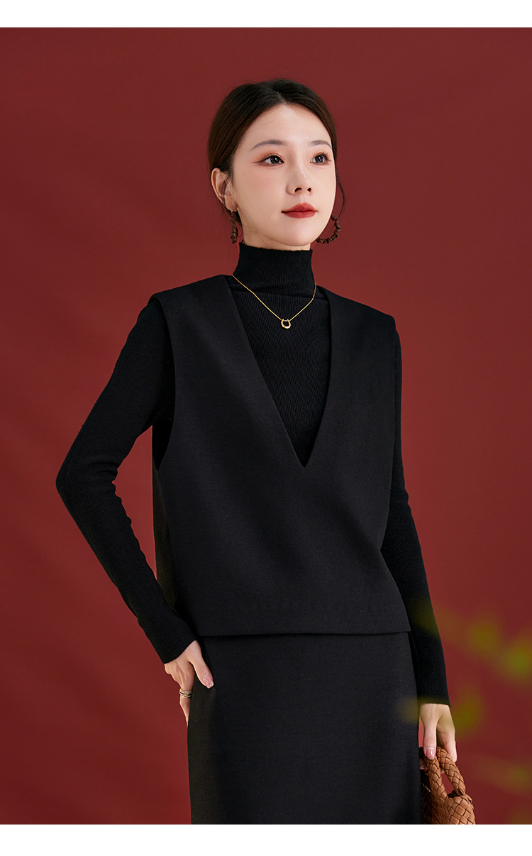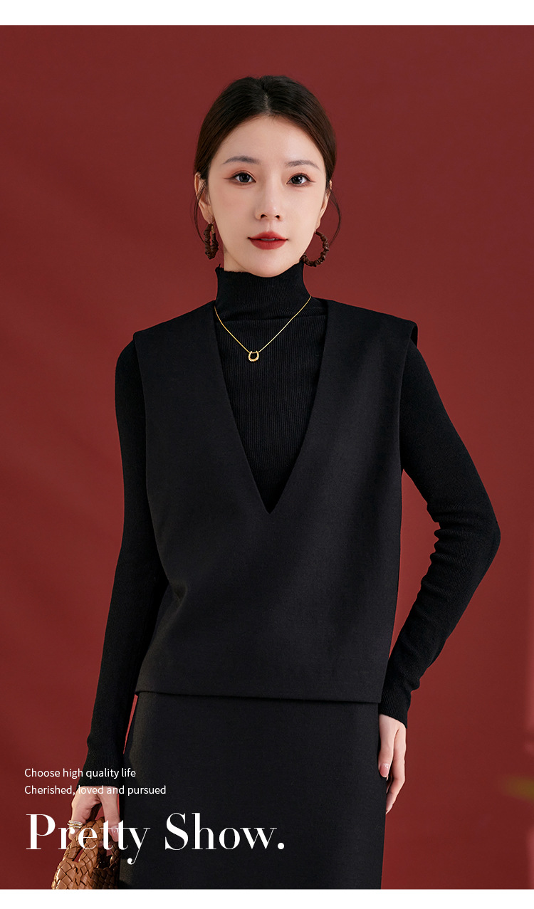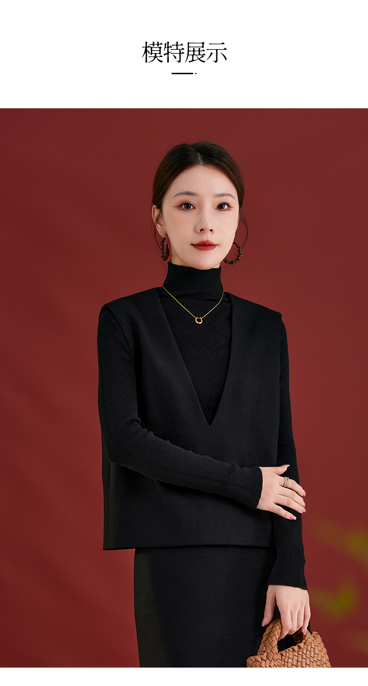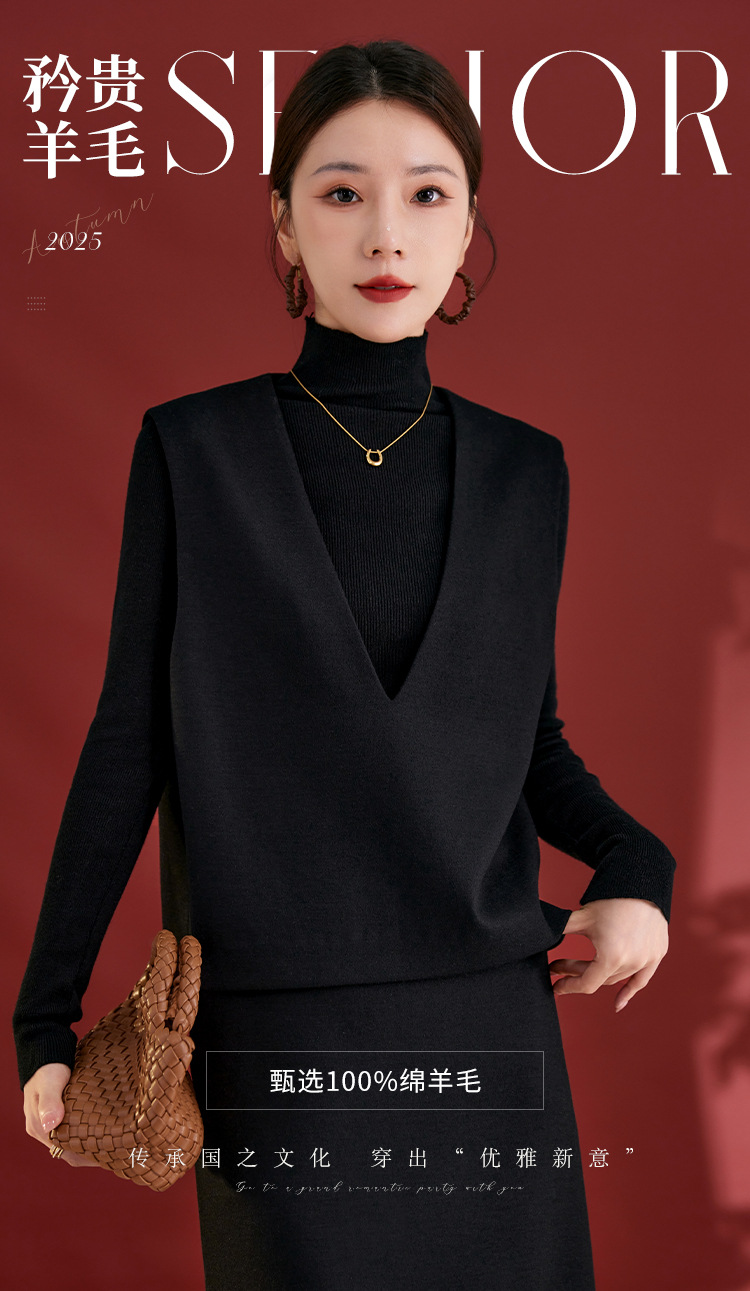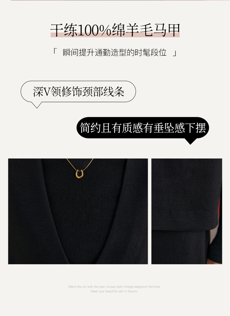QS经典百搭显瘦气质马甲秋季新款100绵羊毛纯色上衣女2735