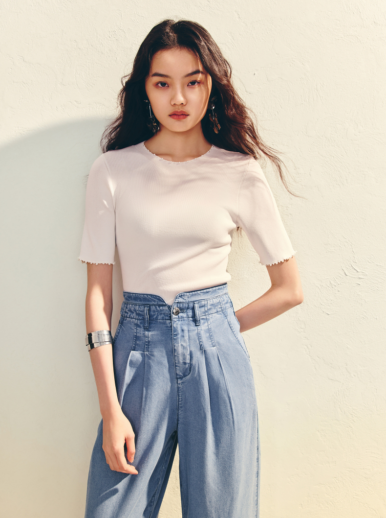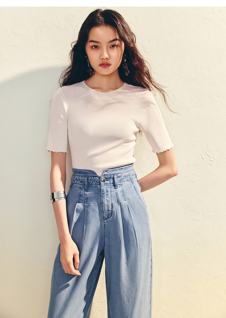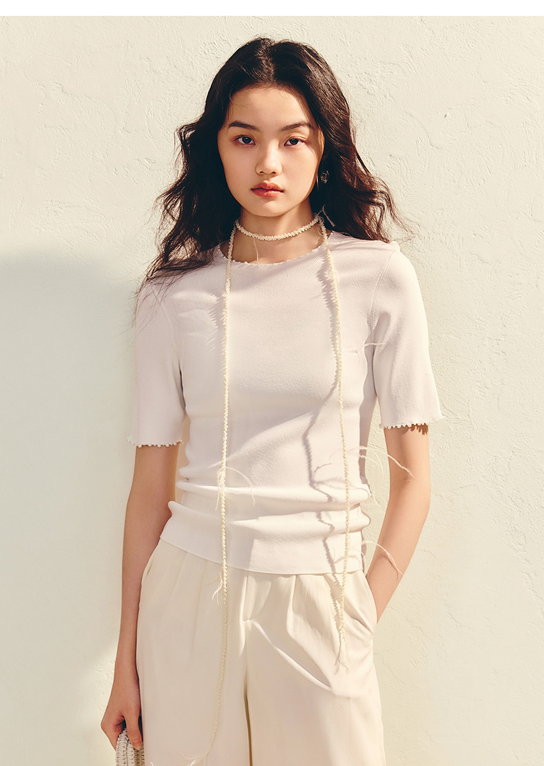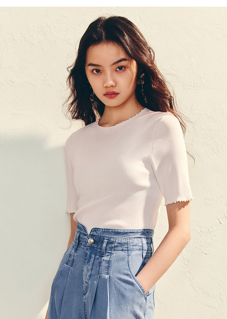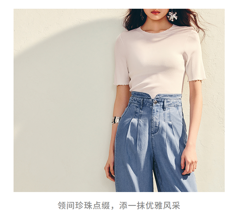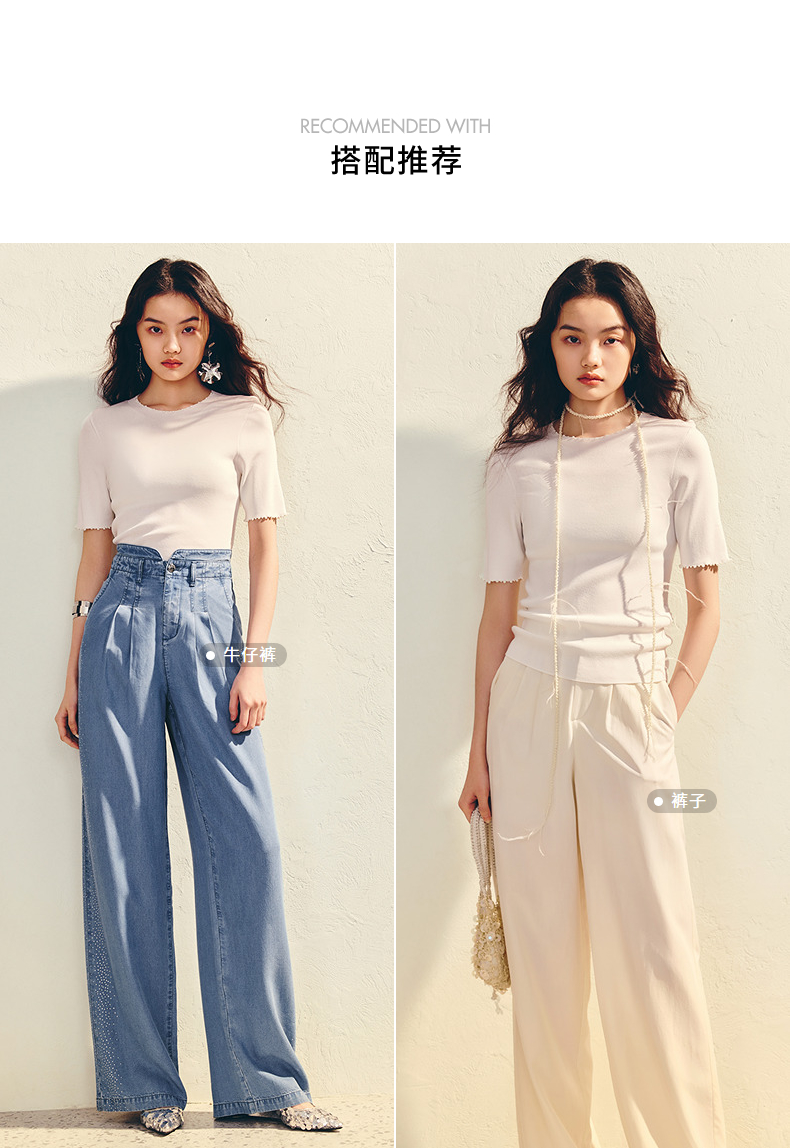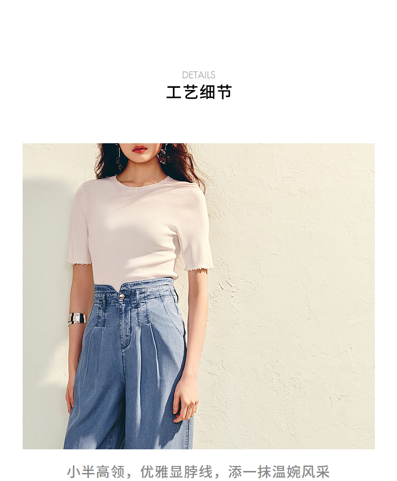 玛克门店发货:MAXRIENY【商场同款】极简风紧身半高领套头毛衫25夏修身显瘦上衣(货号:MU86SW006)