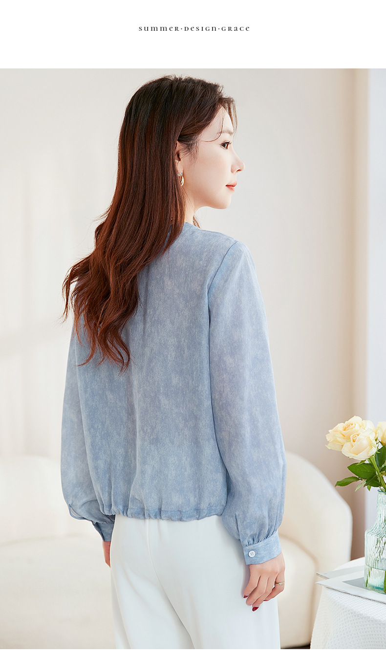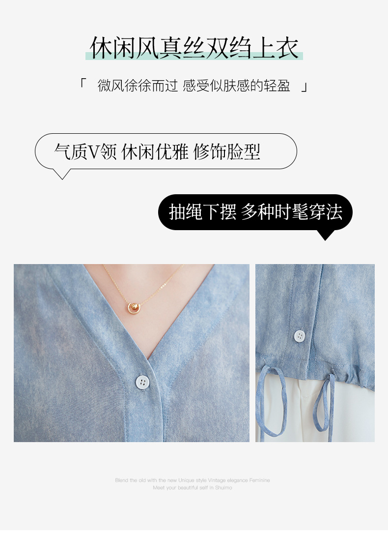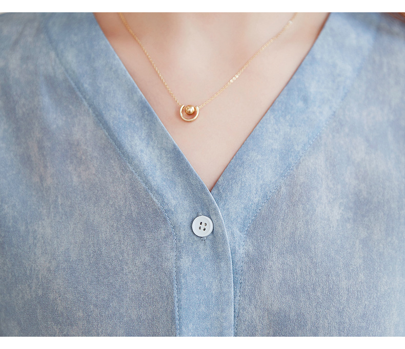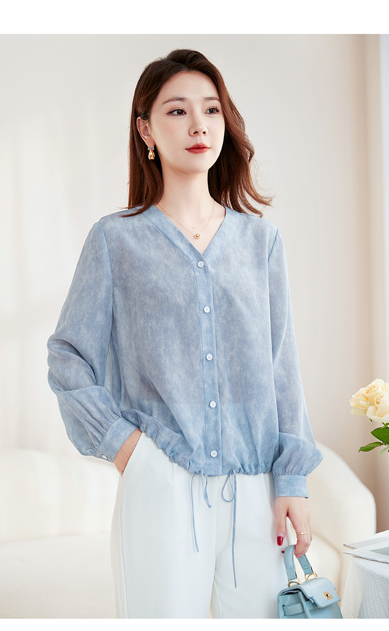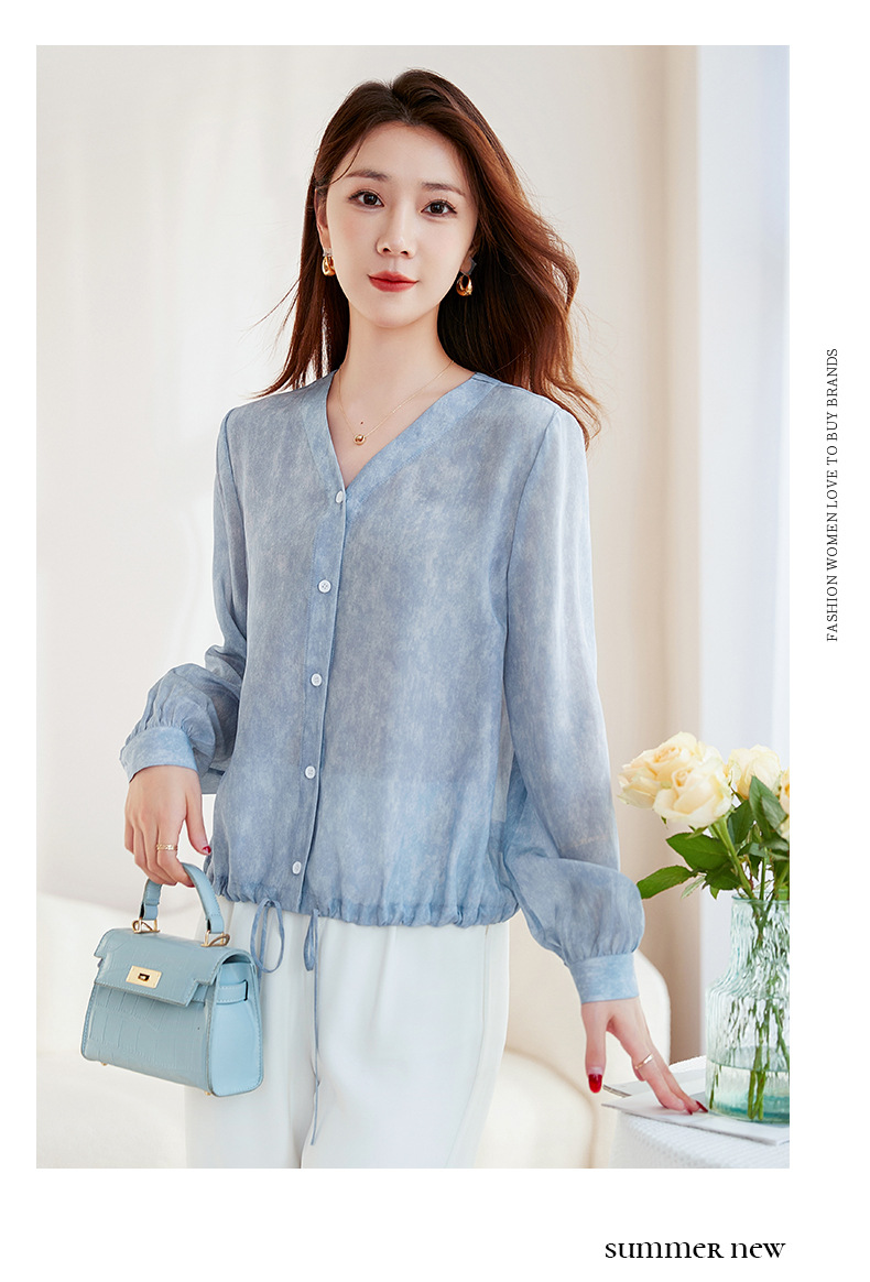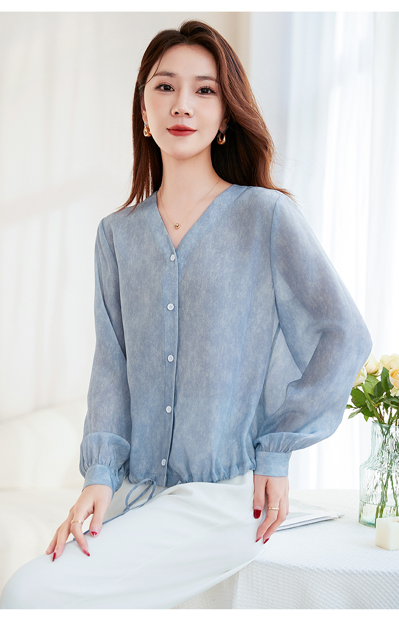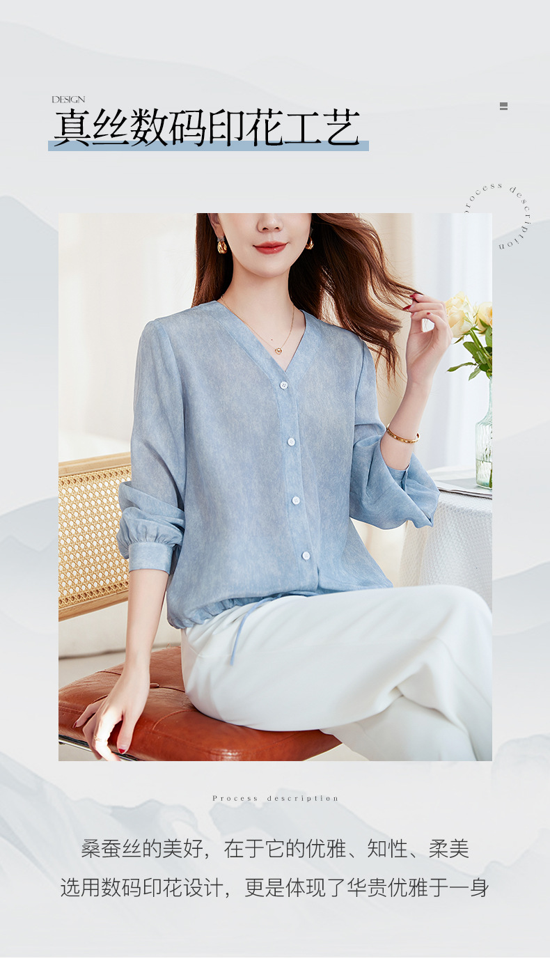 QS-22599658春夏新款真丝V领衬衫桑蚕丝双绉长袖通勤衬衣女22599658