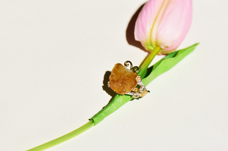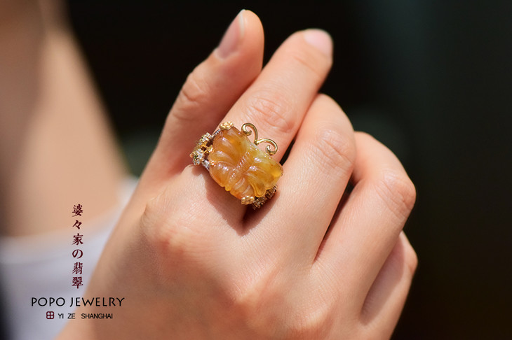 18K白金黄翡蝴蝶大戒