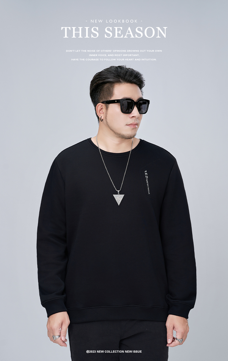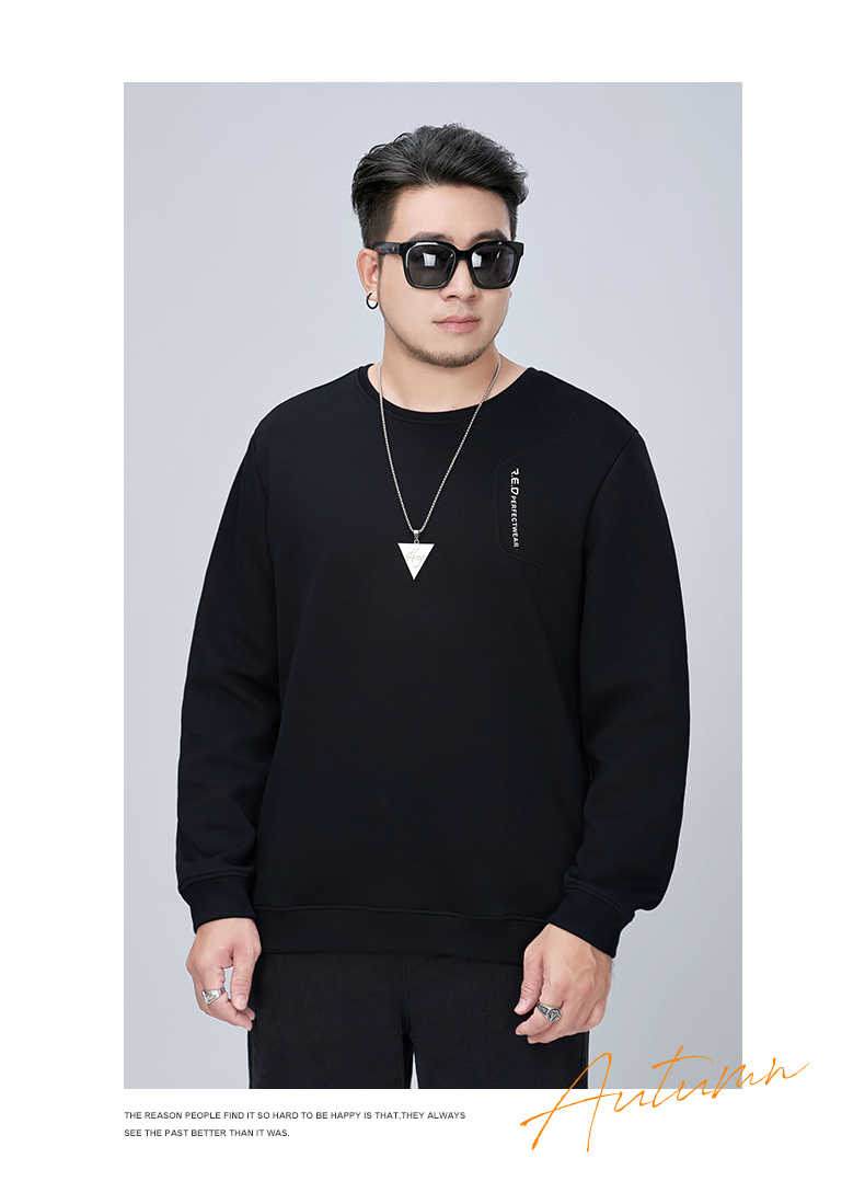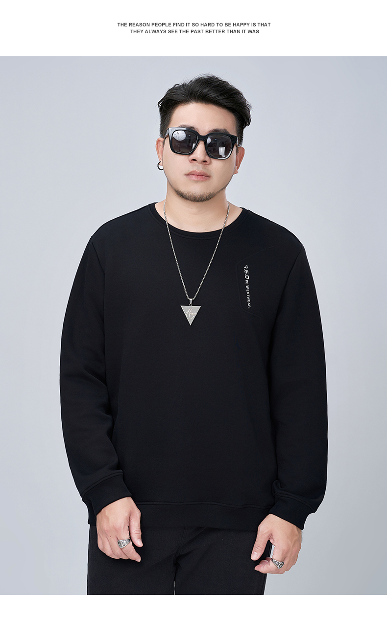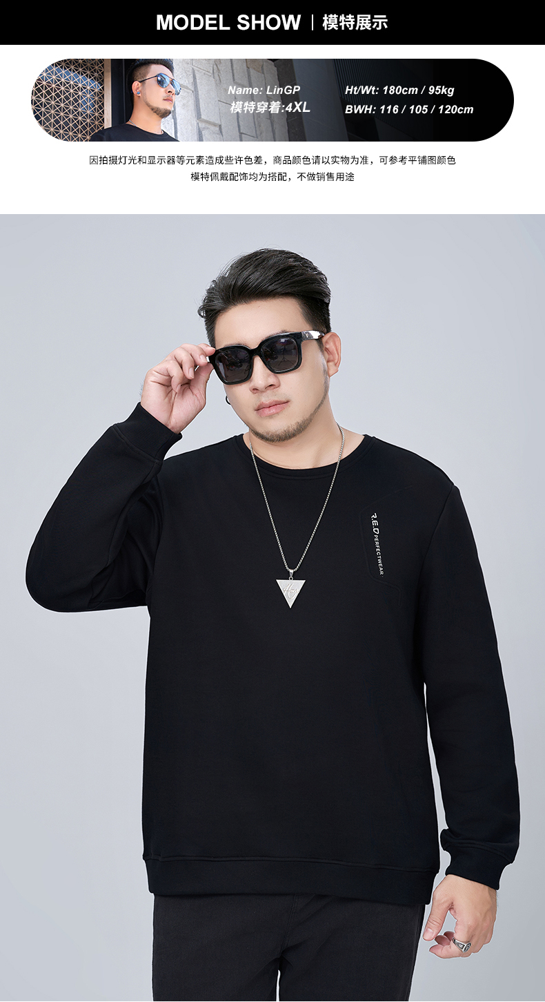 【新款DMH】大依优型大码男装圆领卫衣简约宽松上衣男士胖子打底衫300斤 商品图3